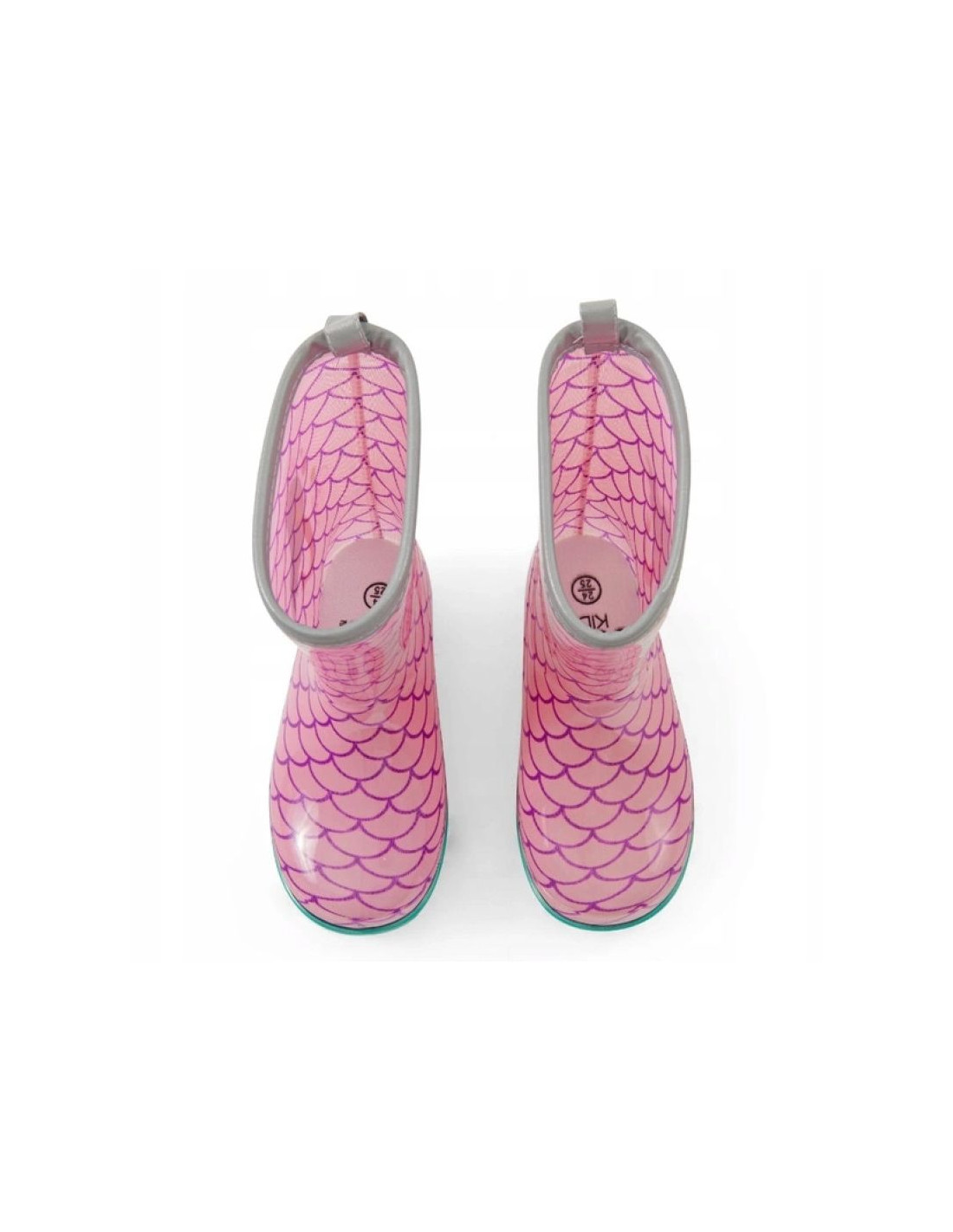 Urocze kalosze dziecięce z motywem syrenki.