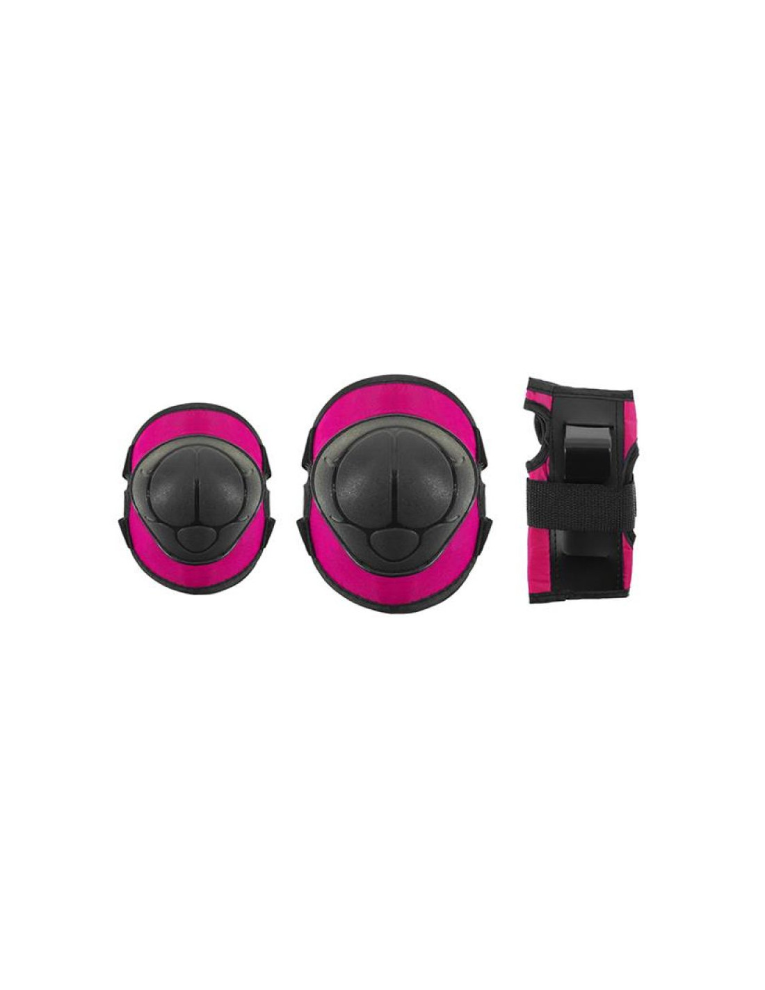 Zestaw ochraniaczy na nadgarstki, łokcie i kolana. Wykonany z wysokiej jakości materiałów. Skorupa zaprojektowana z mocnego i lekkiego tworzywa dobrze wyprofilowana. Wszystkie ochraniacze wyposażone są w zapięcie na rzepy, dzięki czemu utrzymują ochraniacze we właściwym miejscu. Zaprojektowane tak, aby użytkownik czuł się komfortowo i w maksymalnym stopniu zabezpieczał nadgarstki, łokcie i kolana przed urazami.