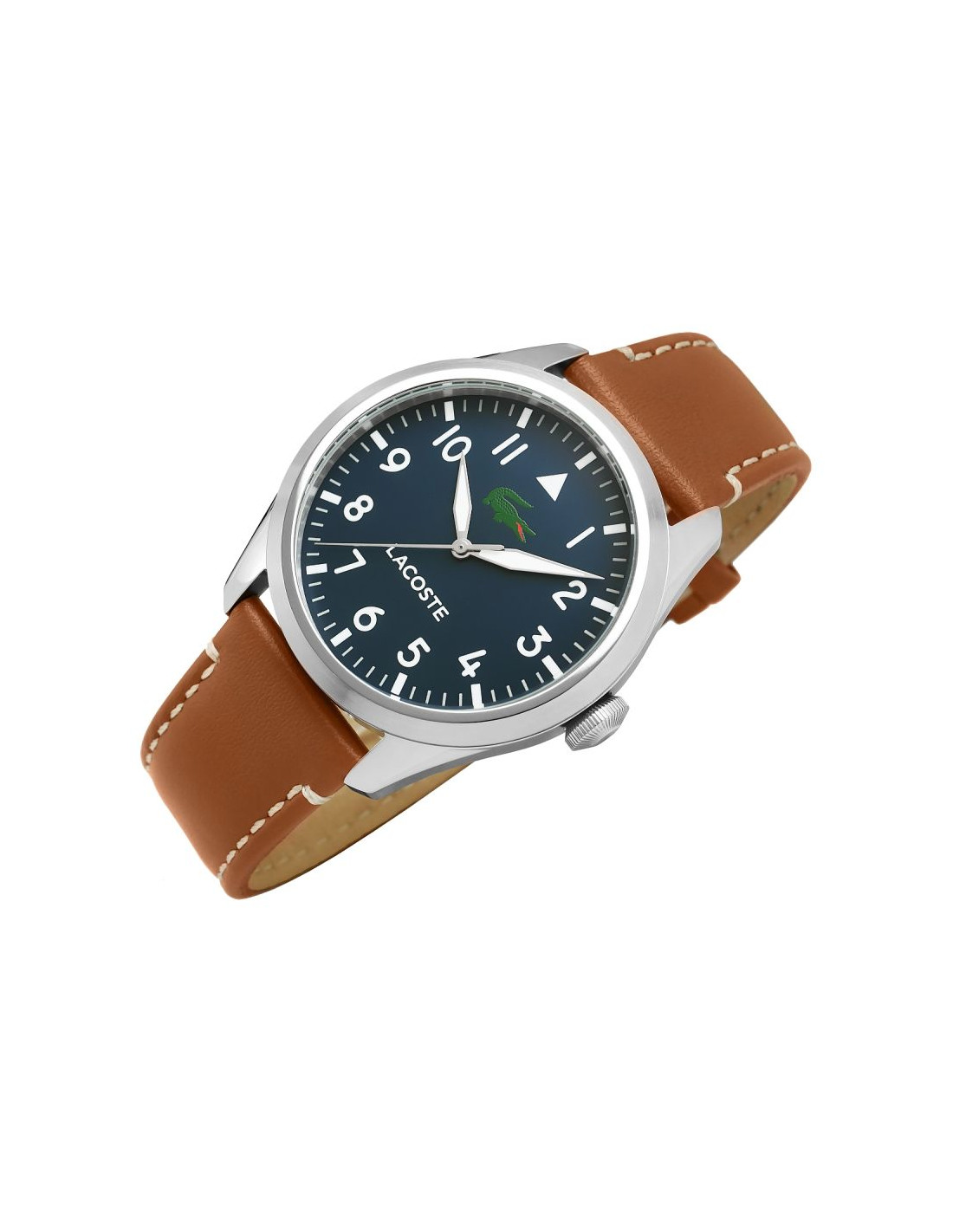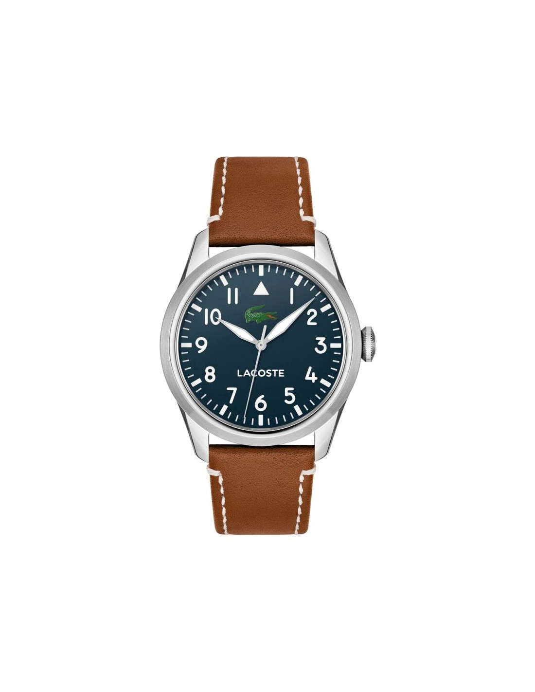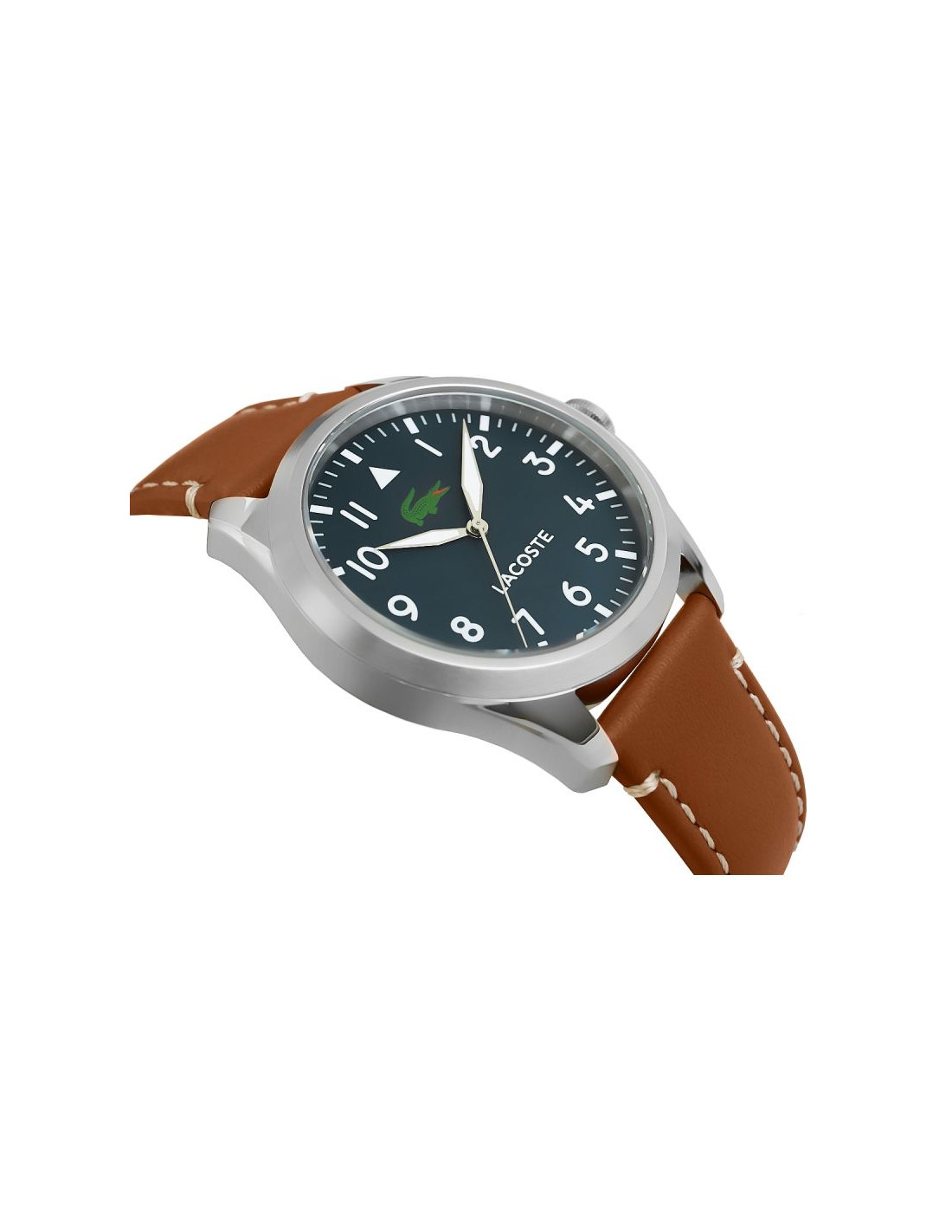 Ten zegarek to prawdziwy gracz z charakterem. Granatowa tarcza? Głęboka i pewna siebie, tworzy tło, które mówi: „sprawdzaj czas, ale rób to z klasą”. Białe cyfry arabskie są jak wojskowe oznaczenia – konkretne, mocne, nie do przeoczenia, idealne dla faceta, który nie marnuje ani sekundy. Biało-srebrne wskazówki odbijają światło jak ostrze, dając subtelny błysk przy każdym ruchu – bo zegarek ma żyć razem z Tobą.A krokodyl Lacoste w intensywnej zieleni? To nie tylko logo, to symbol, który przypomina, że pod tą elegancką powłoką czai się dzikość i nieokiełznana energia. Brązowy, skórzany pasek z białymi przeszyciami to coś jak klasyczna kurtka skórzana – ciepła, stylowa, ale z pazurem, gotowa na każde wyzwanie. To zegarek dla faceta, który łączy elegancję z luzem, zawsze gotowy na nowe wyzwania, ale nie tracący przy tym klasy.
