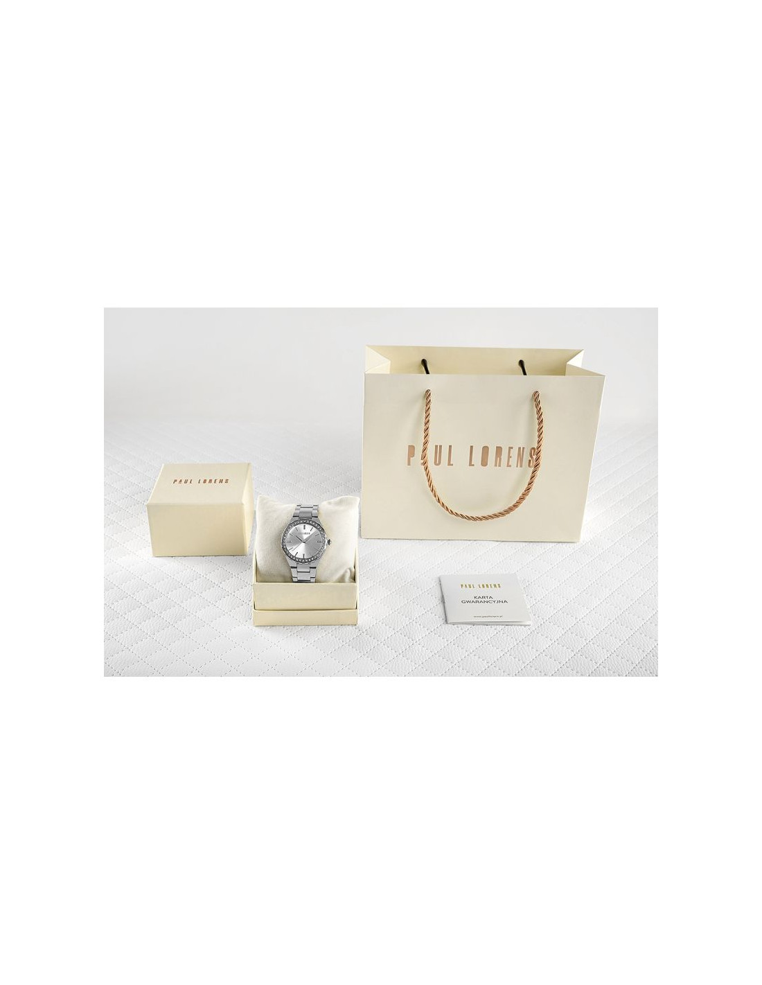 Każdy damski zegarek Paul Lorens jest starannie pakowany w estetyczne, kremowe pudełko, które podkreśla jego unikalność. To nie tylko doskonałe połączenie stylu i funkcjonalności, ale również wyjątkowy sposób na podarowanie bliskiej osobie czegoś naprawdę wyjątkowego. Dodatkowo, do każdego zegarka dołączona jest stylowa torebka prezentowa z logo, co sprawia, że wręczenie takiego prezentu staje się prawdziwą przyjemnością. To doskonały pomysł na upominek z okazji: Świąt, urodzin, rocznicy, czy innego ważnego wydarzenia.