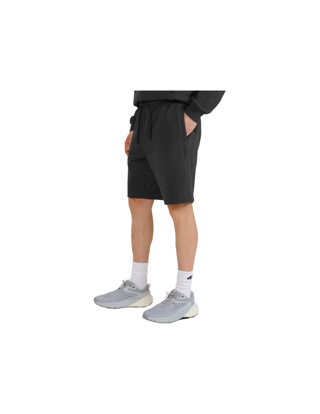 Spodenki męskie 4F M545 antracyt 4FWSS25TSHOM545 22S Męskie spodenki dresowe 4f, które sprawdzą się na siłowni i na co dzień. Regularny krój, długość nogawek do połowy uda. Elastyczny pas ze sznurkiem. Uszyte z dzianiny typu french terry o gramaturze 330 gsm. Brak podszewki. Dwie otwarte kieszenie. Materiał: 80% bawełna, 20% poliester