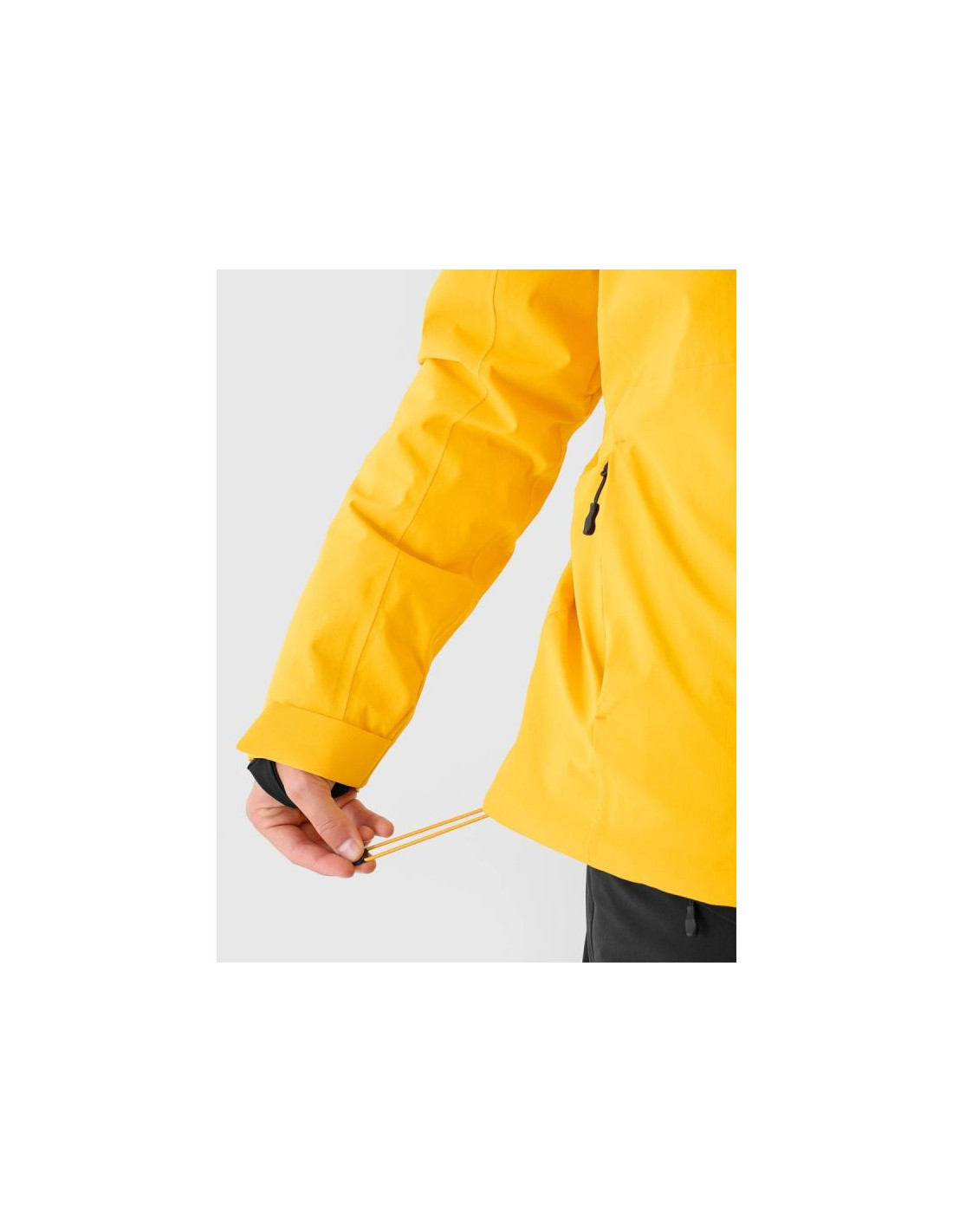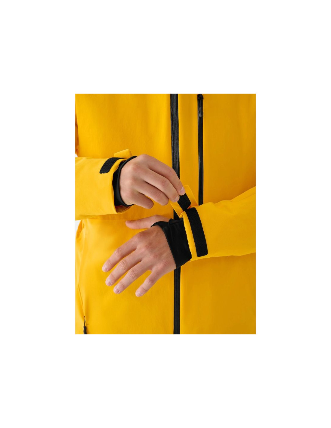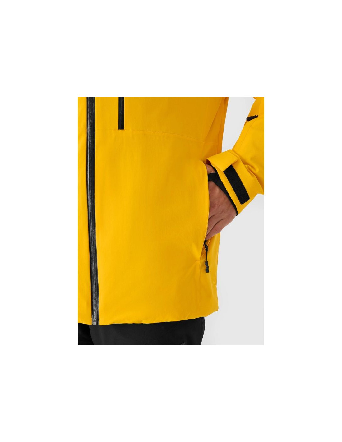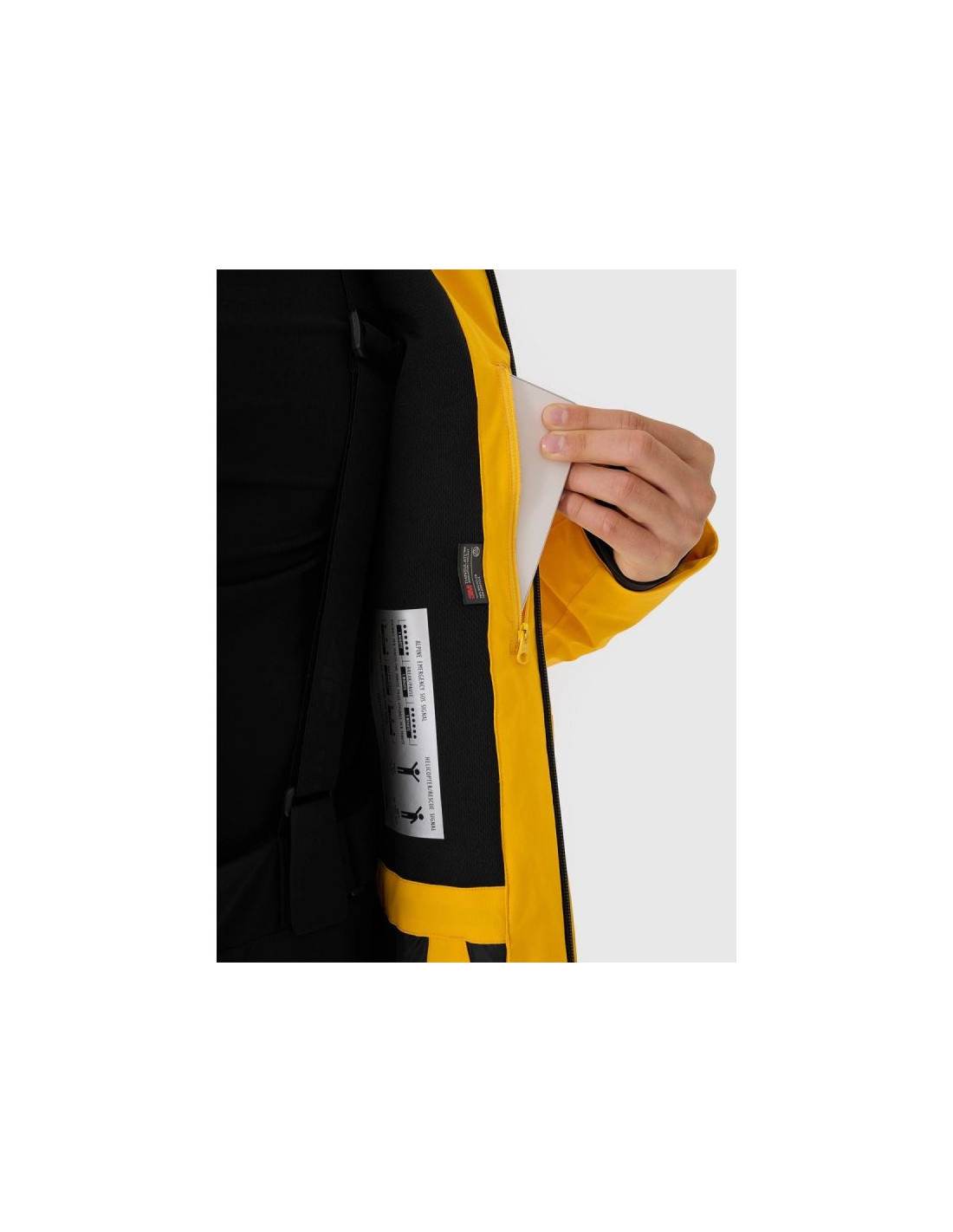 Praktyczny układ kieszeni obejmuje kieszenie boczne na zamek, kieszeń piersiową z laminowanym zamkiem, kieszeń ski pass na ramieniu oraz wewnętrzne kieszenie – w tym siatkową kieszeń na gogle. Zintegrowany pas śnieżny zapobiega przedostawaniu się śniegu do wnętrza kurtki, a wewnętrzny patch SOS zwiększa bezpieczeństwo w górach.