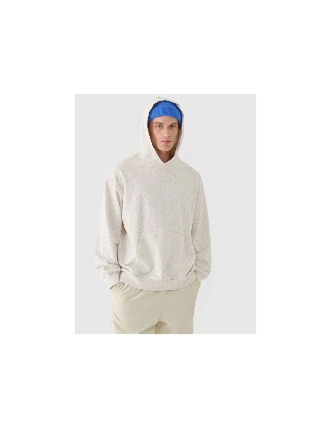 Bluza dresowa męska 4F nierozpinana z kapturem to uniwersalna propozycja do codziennych stylizacji casualowych oraz luźniejszych zestawów sportowych. Oversizowy krój z obniżoną linią ramion luźno układa się na sylwetce, zapewniając pełną swobodę ruchów i nowoczesny, miejski charakter. Wykonana z dzianiny dresowej french terry, która jest gładka na zewnątrz i ma charakterystyczny pętelkowy splot od wewnątrz, bluza łączy komfort noszenia z trwałością. Wysoka gramatura 350 gsm sprawia, że materiał jest grubszy w dotyku i wyjątkowo odporny na codzienne użytkowanie, dzięki czemu zachowuje formę przez wiele sezonów. Wysoka zawartość bawełny (95%) gwarantuje miękkość i przyjemne odczucia na skórze, a praktyczne detale, takie jak zintegrowany kaptur, kieszeń kangurka oraz elastyczne ściągacze, zwiększają funkcjonalność bluzy na co dzień.