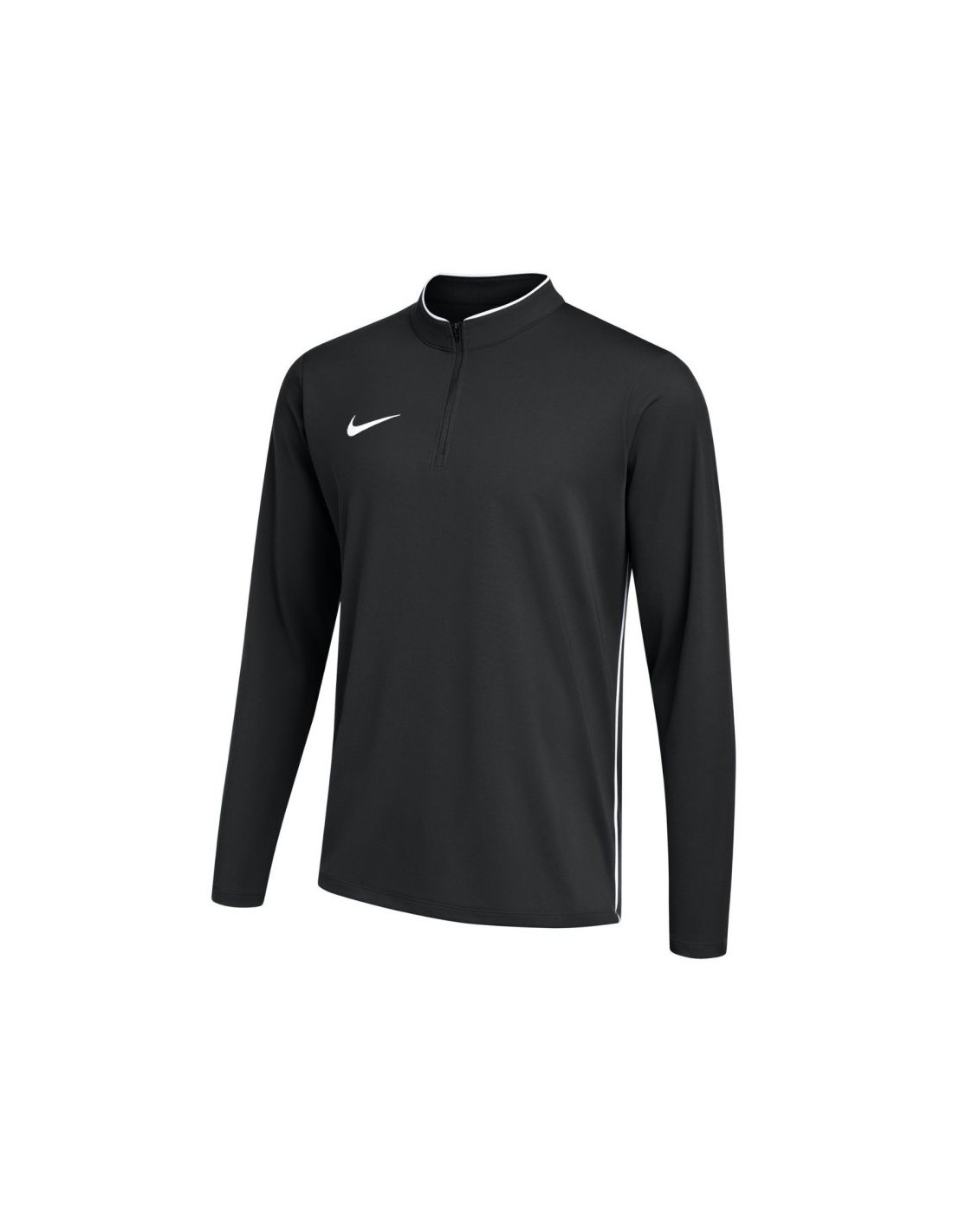 Bluza męska Nike Dri-Fit Park 26 Drill Top czarna IB7536 010 Bluza męska Nike sprawdzi się podczas treningów. Oddychający materiał z technologią Dri-FIT. Stójka. Dopasowany krój. Krótki zamek. Kontrastowe lamówki po bokach. Materiał: 100% poliester