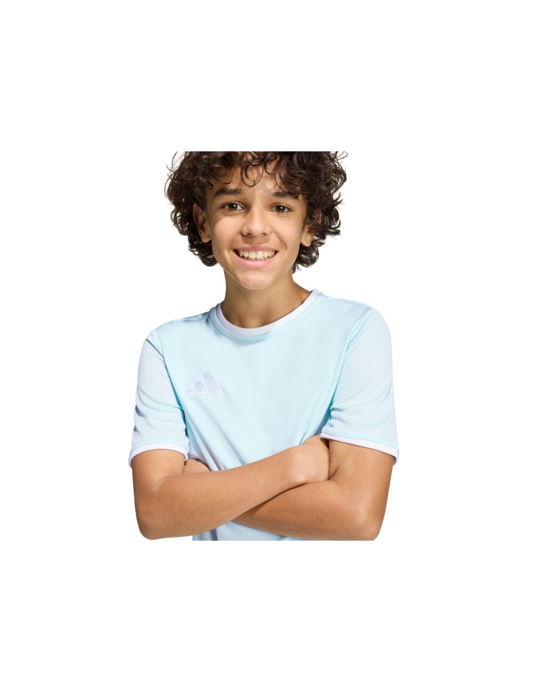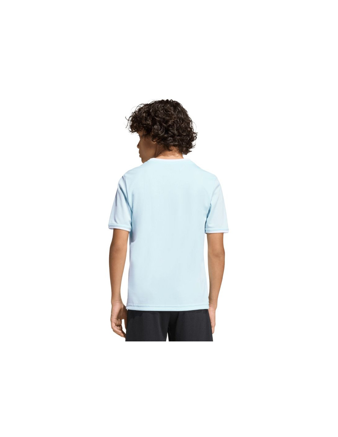 Koszulka dla dzieci adidas Entrada 26 Jersey błękitna KE9844 Koszulka dla dzieci adidas powinna znaleźć się w sportowej garderobie każdego młodego piłkarza, który chce w pełnym skupieniu doskonalić swoje umiejętności. Lekka konstrukcja z poliestru zyskała wsparcie w technologii Climacool, która pomaga odprowadzać pot z powierzchni skóry, oferując uczucie świeżości, suchości i ochłody. Klasyczny krój nie krepuje ruchów. Estetyczne wykończenie w postaci okrągłego dekoltu i wyszywanego logo. Materiał: 100% poliester pochodzący z recyklingu