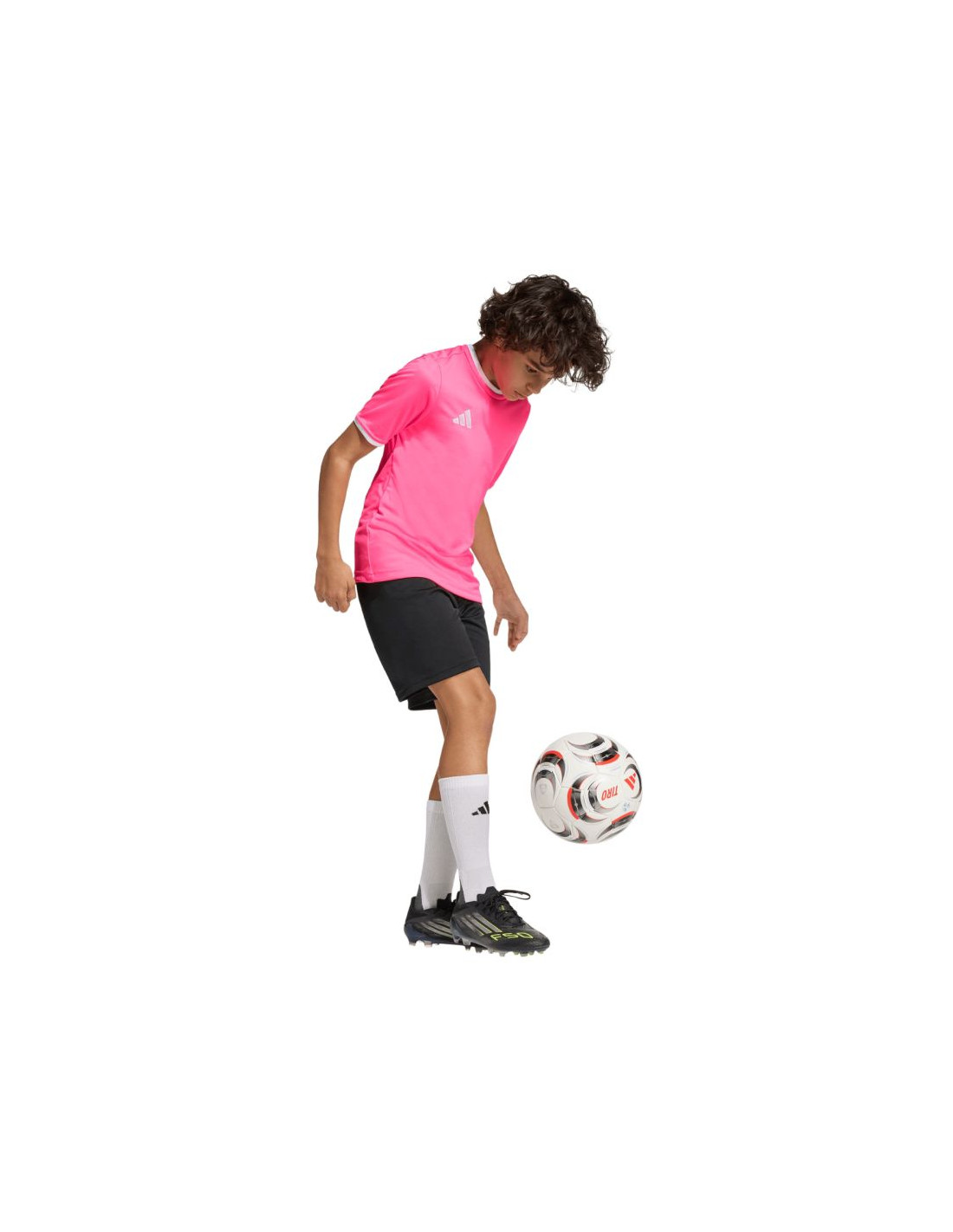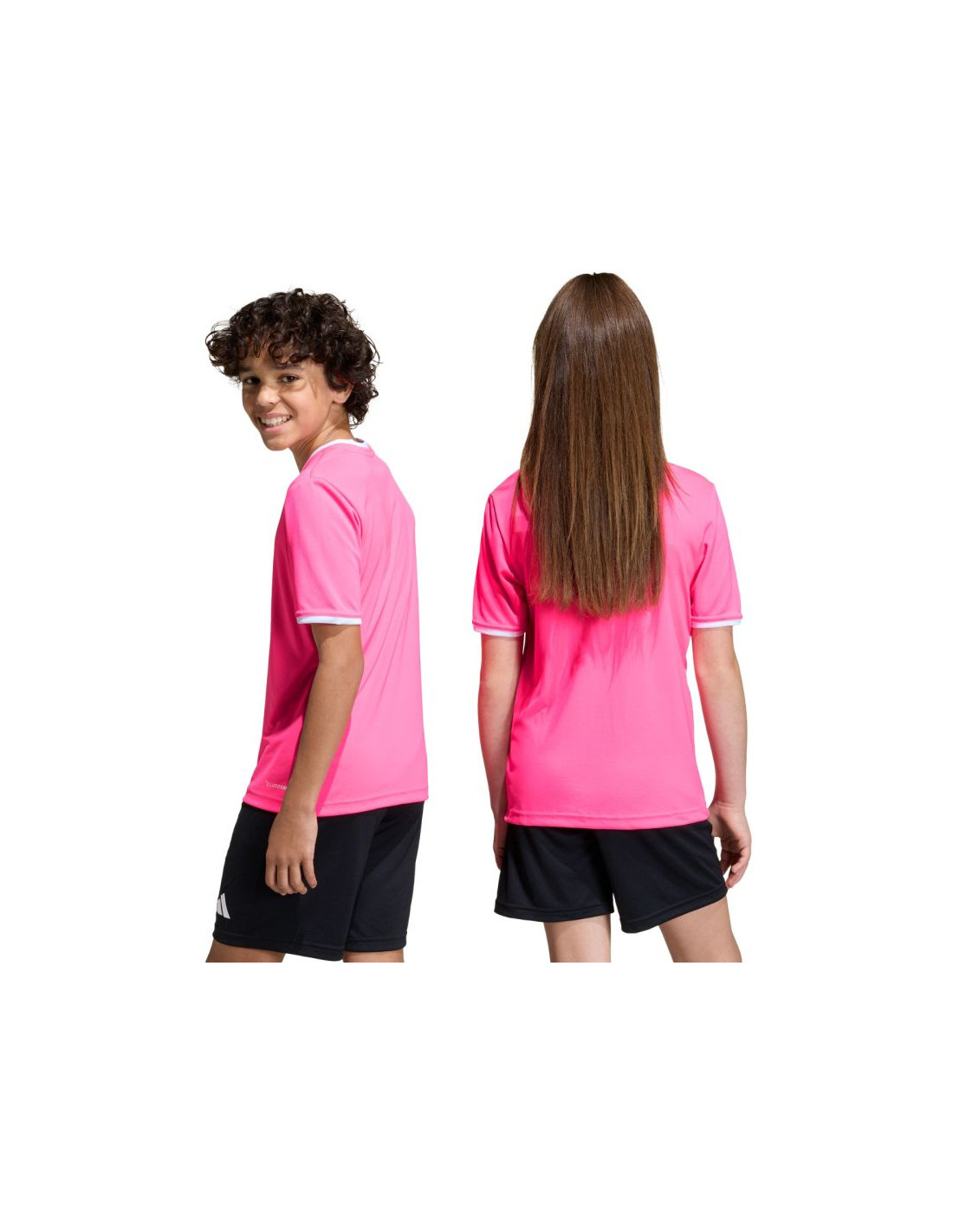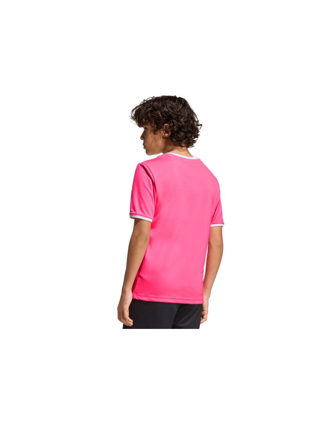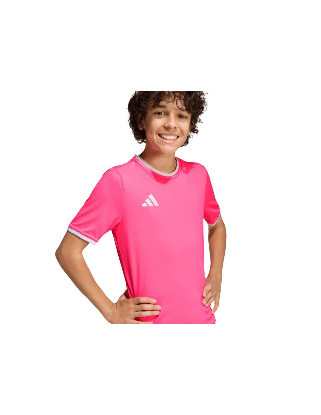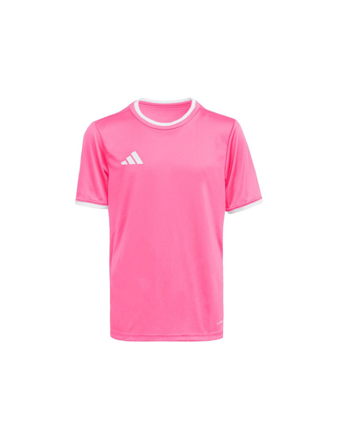 Koszulka dla dzieci adidas Entrada 26 Jersey różowa KE9846 Koszulka dla dzieci adidas powinna znaleźć się w sportowej garderobie każdego młodego piłkarza, który chce w pełnym skupieniu doskonalić swoje umiejętności. Lekka konstrukcja z poliestru zyskała wsparcie w technologii Climacool, która pomaga odprowadzać pot z powierzchni skóry, oferując uczucie świeżości, suchości i ochłody. Klasyczny krój nie krepuje ruchów. Estetyczne wykończenie w postaci okrągłego dekoltu i wyszywanego logo. Materiał: 100% poliester pochodzący z recyklingu