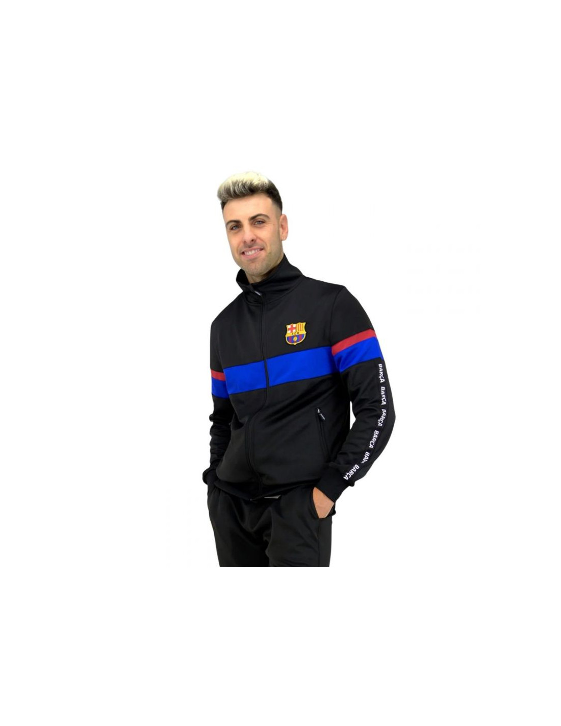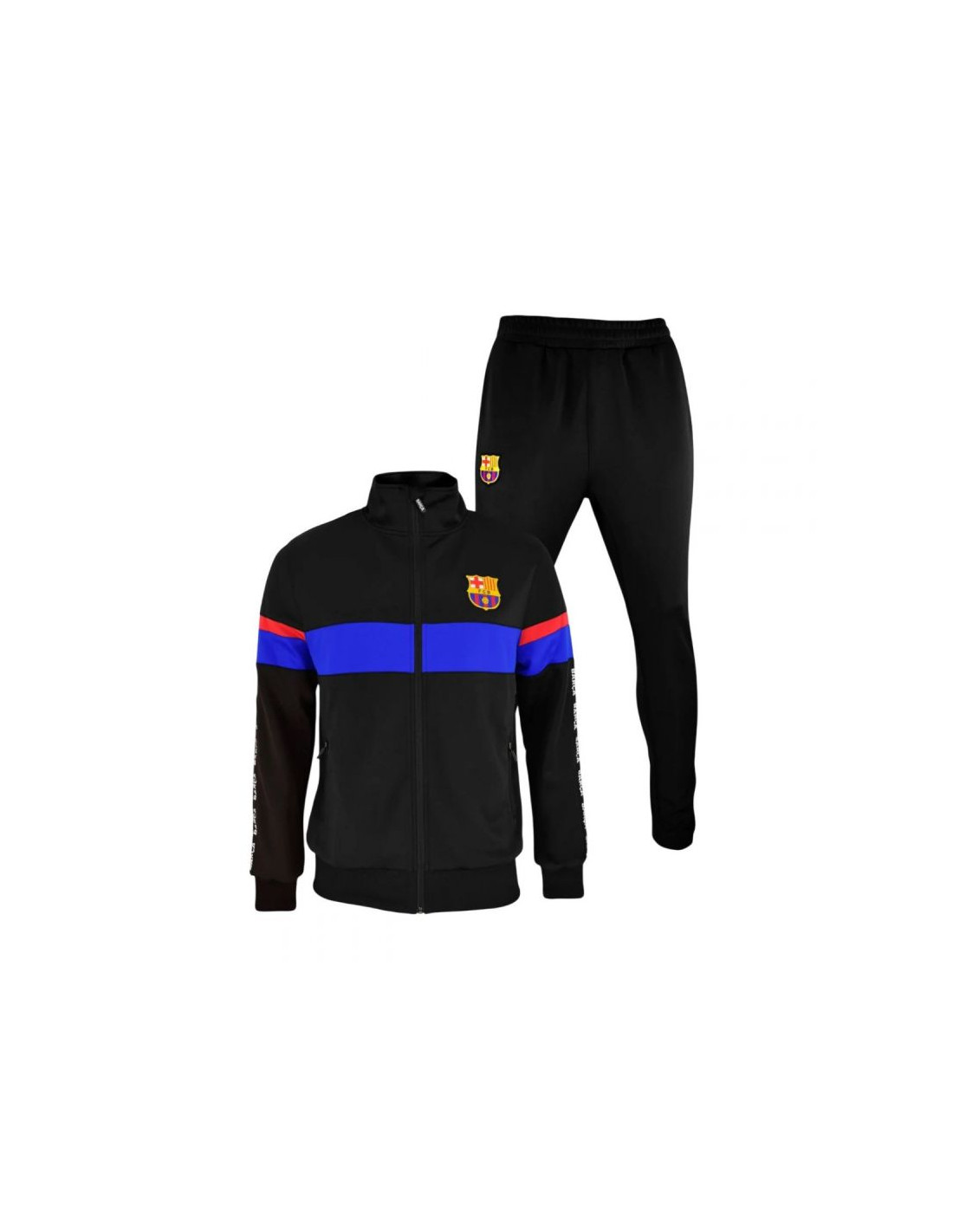 FC BARCELONA DRESModel: TRACKSUIT BARCA BLACKNumer katalogowy: 5002CHBLAOficjalny, licencjonowany produkt klubu piłkarskiego FC BARCELONA. Dres sportowy, dzięki któremu możemy wyrazić sympatię dla ulubionej drużyny. Doskonale dobrana kolorystyka podkreśla jego niepowtarzalny design. Oferowany przez nas dres wykonany jest bardzo starannie z dbałością o szczegóły. Prezentowany produkt posiada komplet metek producenta oraz oryginalne opakowanie.Materiał: 100% poliester