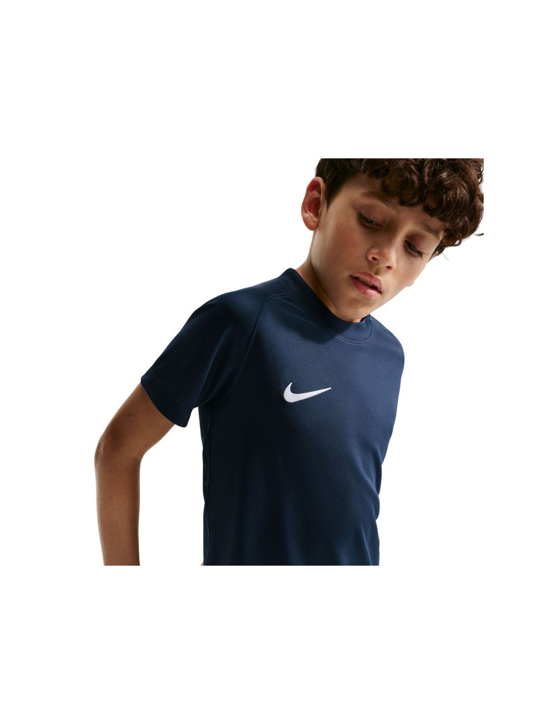 Koszulka dla dzieci Nike Dri-Fit Park VIII granatowa HV8182 410 Juniorska koszulka Nike jest gwarancją niezawodnego komfortu podczas aktywności. Ma standardowy krój z krótkimi rękawami i okrągłym dekoltem, co zapewnia wysoki poziom wygody i zachowanie naturalnej swobody ruchów. Technologia Dri-FIT, odprowadzająca wilgoć z powierzchni skóry. Siateczkowy tył. Materiał: 100% poliester z recyklingu