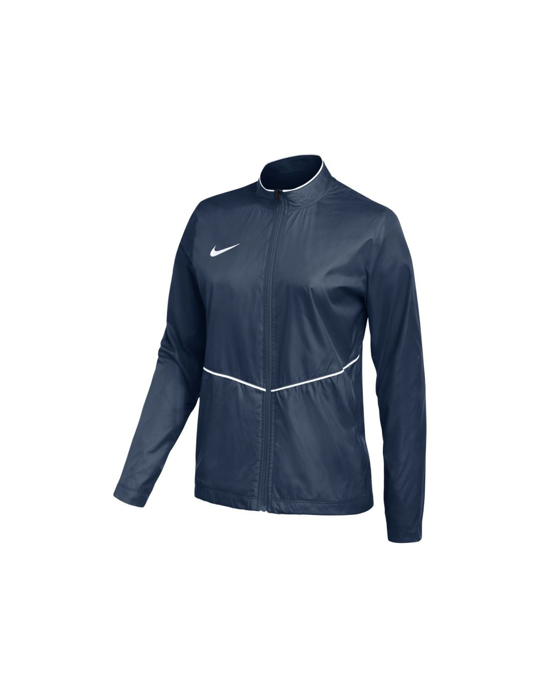 Kurtka damska Nike Park 26 Rain granatowa HM7267 410 Kurtka przeciwdeszczowa dla kobiet Nike sprawdzi się podczas treningów. Wodoodporny materiał zapewnia ochronę przed lekkim deszczem. Standardowy krój. Zamek na całej długości. Stójka. Zapinane kieszenie boczne. Lamówki. Niewielkie logo. Materiał: 100% poliester z recyklingu