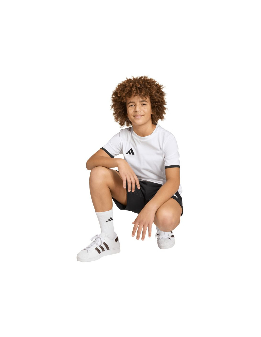Koszulka dla dzieci adidas Entrada 26 Tee biała JZ6670 Treningowa koszulka adidas dla dzieci. Uszyta w 100% z bawełny. Regularny krój i krótki rękaw. Okrągły dekolt. Wyszywane logo adidas. Materiał: 100% bawełna