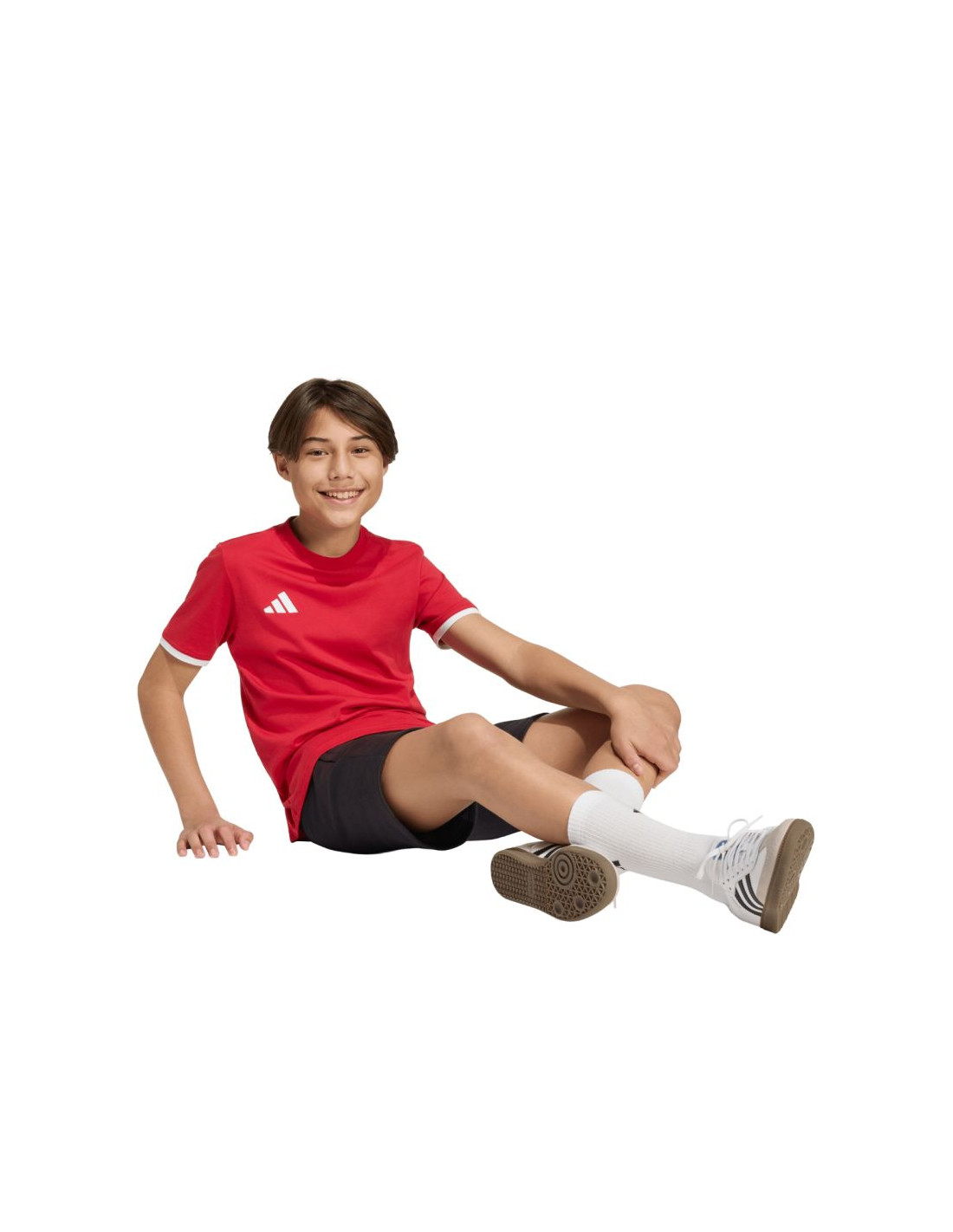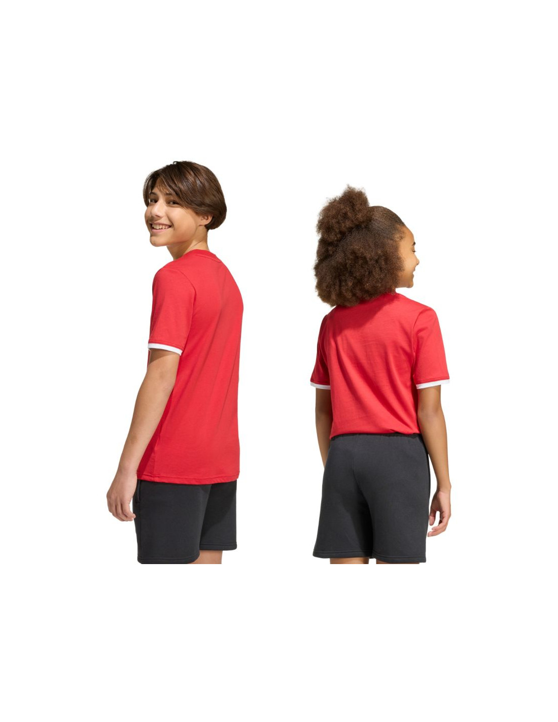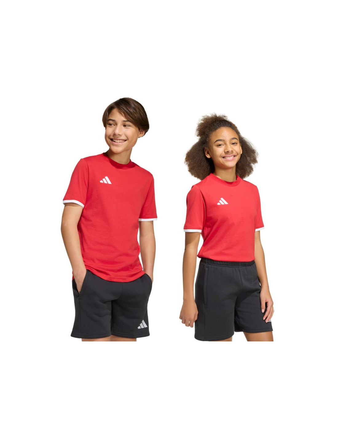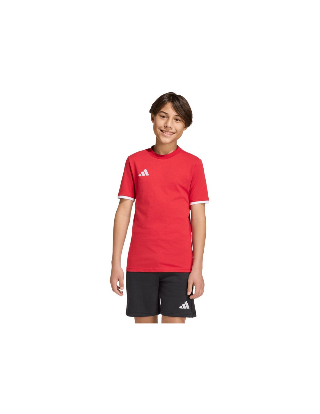 Koszulka dla dzieci adidas Entrada 26 Tee czerwona JZ6674 Treningowa koszulka adidas dla dzieci. Uszyta w 100% z bawełny. Regularny krój i krótki rękaw. Okrągły dekolt. Wyszywane logo adidas. Materiał: 100% bawełna