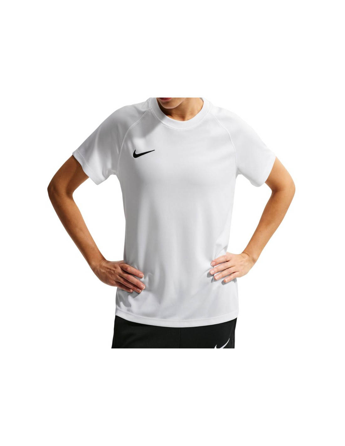 Koszulka damska Nike Dri-Fit Park VIII biała HV8178 100 Koszulka Nike przeznaczona dla kobiet sprawdzi się podczas meczów. Regularny krój. Niewielkie logo. Szybkoschnący materiał. Technologia Dri-FIT odprowadza wilgoć. Tkanina o siateczkowej strukturze na plecach. Materiał: 100% poliester