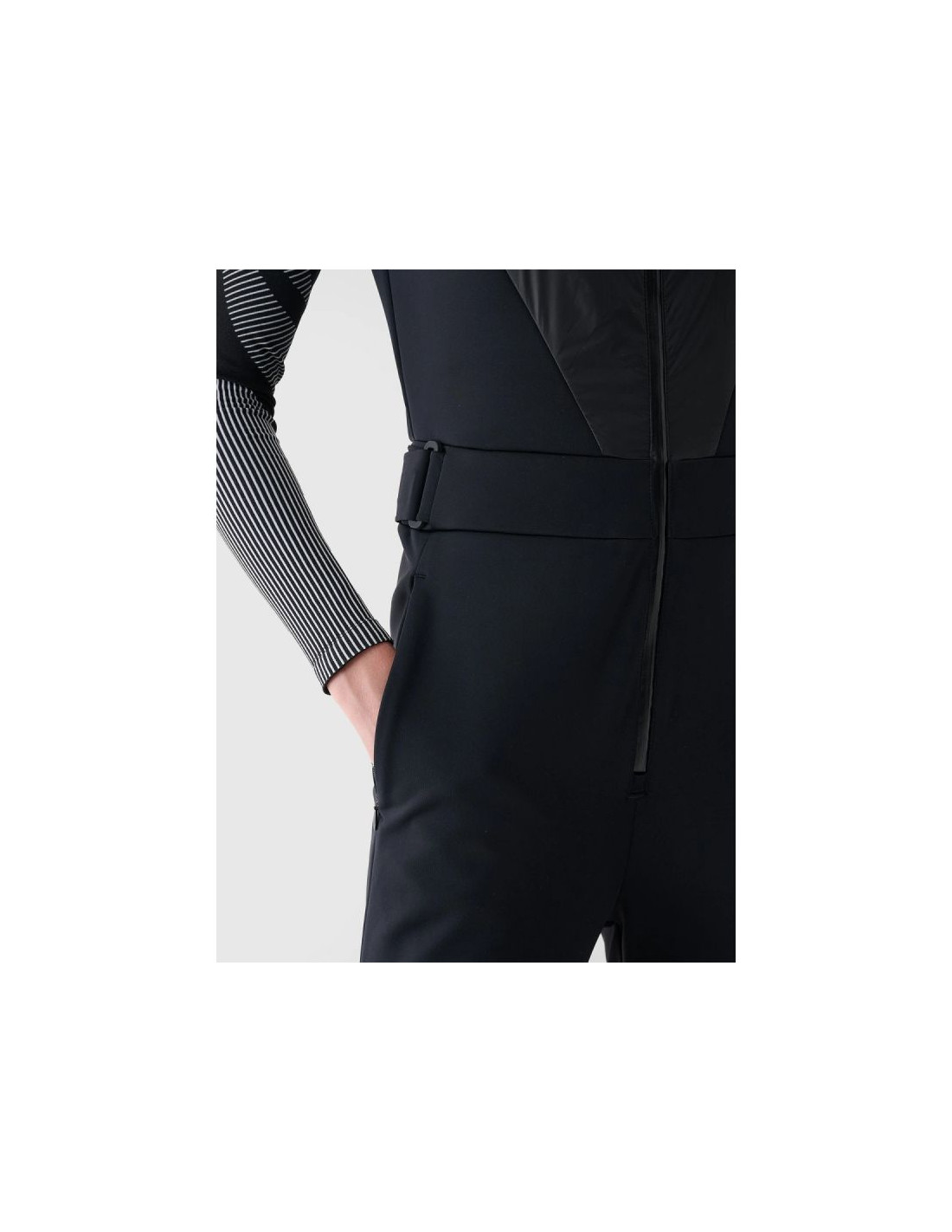 Kombinezon bez rękawów damski z softshellu został zaprojektowany z myślą o kobietach, które cenią nowoczesny design, wygodę i funkcjonalność podczas zimowych aktywności. Dopasowany, elegancki fason podkreśla sylwetkę, jednocześnie zapewniając swobodę ruchów na stoku i poza nim.