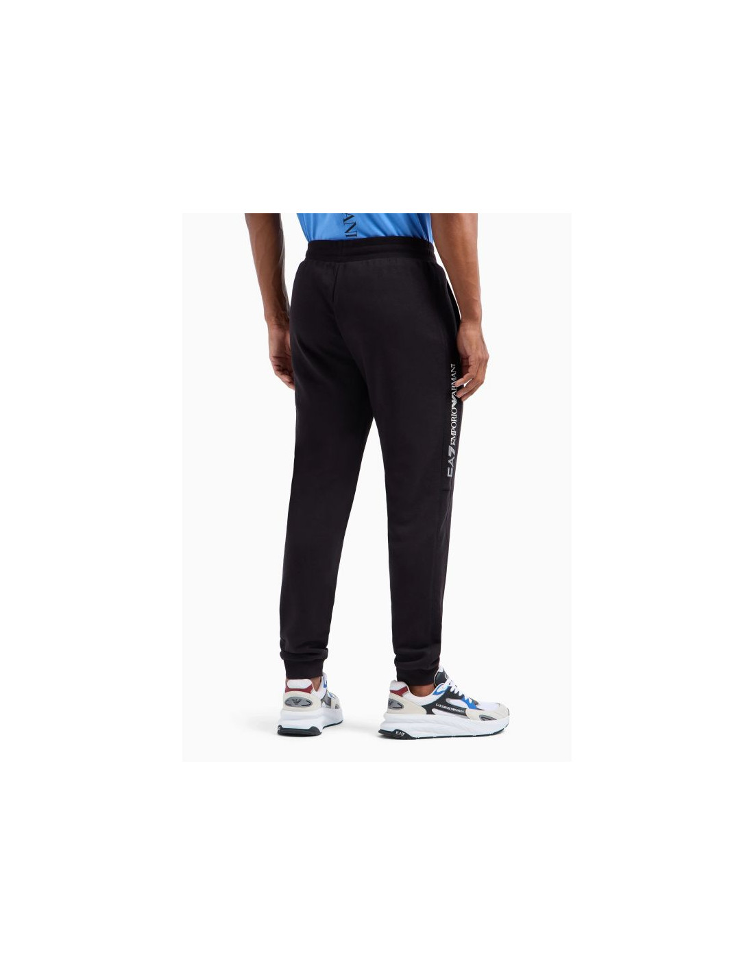 - Logo EA7 Emporio Armani umieszczone na nogawce dodaje odrobiny luksusu, podkreślając ich wyjątkowość i prestiż.