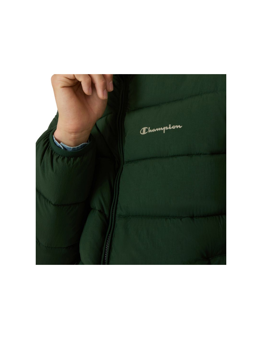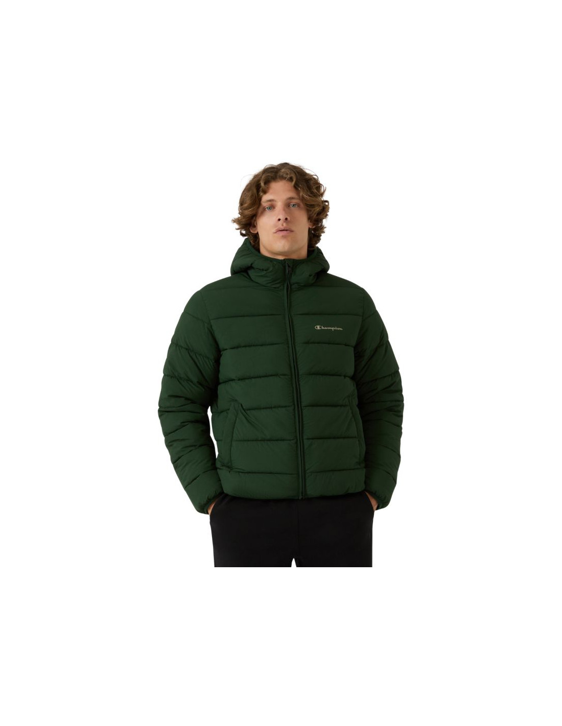 Kurtka męska Champion Hooded Jacket zielona 221548 GS586 Kurtka męska Champion sprawdzi się w okresie zimowym. Wypełnienie w postaci syntetycznego puchu. Ocieplenie Repreve™ jest przyjazne dla środowiska. Jednokierunkowy zamek główny. Hydrofobowe wykończenie materiału spowalnia wchłanianie wilgoci z zewnątrz. Poziome pikowania. Wysoka stójka. Nieodpinany kaptur bez regulacji. Boczne kieszenie. Luźny kój z obniżoną linią ramion. Wszyta, elastyczna gumka u dołu i przy mankietach oraz kapturze. Dane techniczne: · Materiał główny: 100% poliamid· Wypełnienie: 100% poliester (puch syntetyczny, Repreve™)