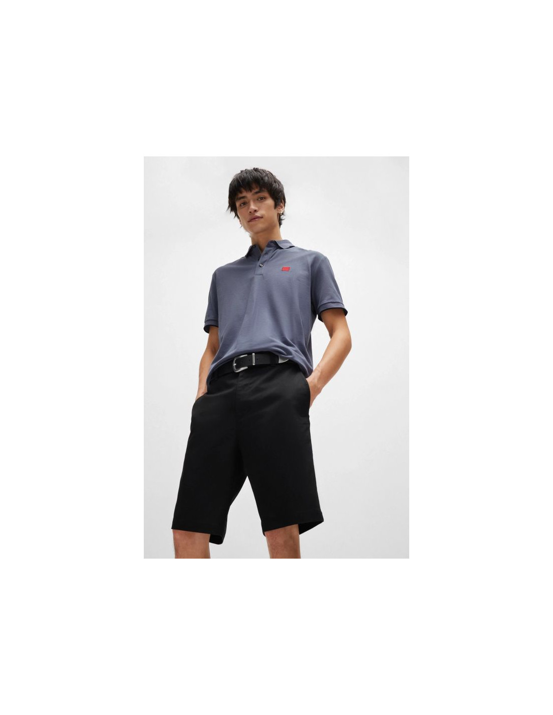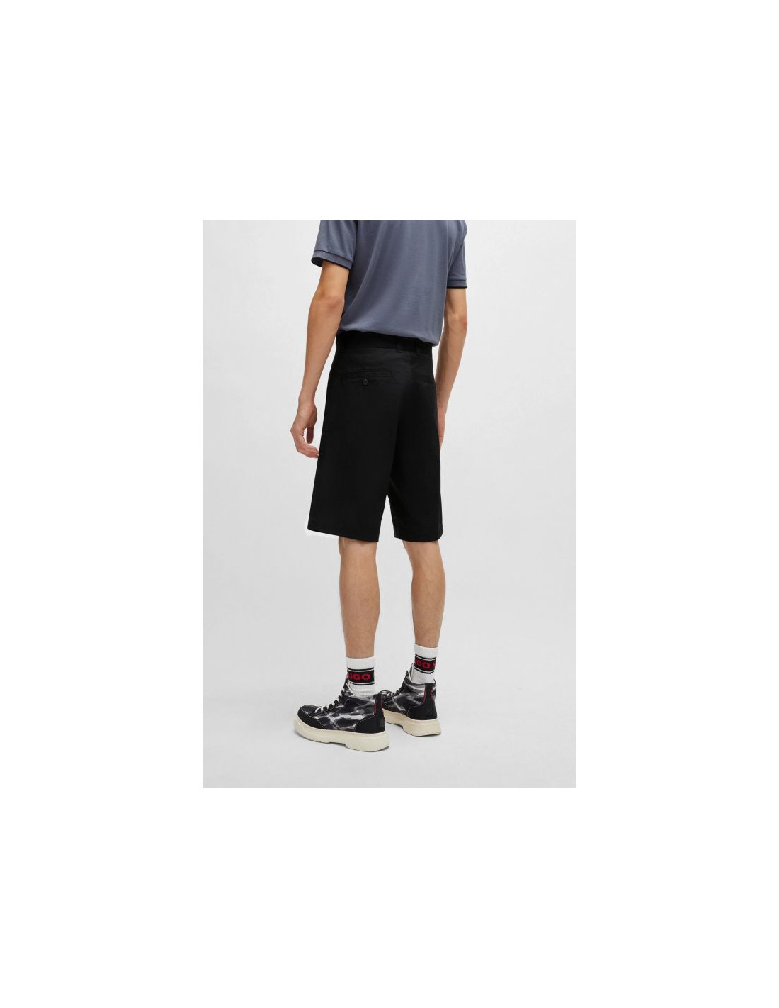 - Logo: kontrastowe logo HUGO na lewej nogawce