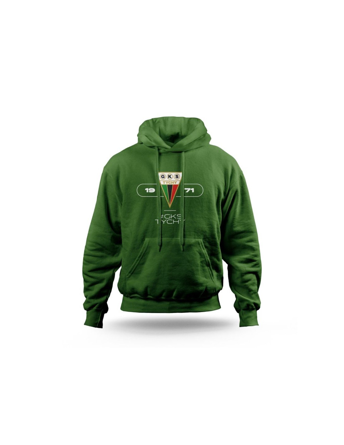 Bluza GKS Tychy #1971 Stylowa bluza dla prawdziwych fanów GKS Tychy. Bluza GKS Tychy #1971 to wyjątkowy element garderoby, który łączy klubową tradycję z nowoczesnym designem. Zielony kolor i duże logo GKS Tychy na froncie podkreślają przywiązanie do drużyny, a miękki materiał gwarantuje wygodę w każdej sytuacji. Główne cechy: Unikalny design: Charakterystyczny nadruk z herbem GKS Tychy oraz datą 1971 nawiązuje do historii klubu, napis # GKS Tychy uzupełnia całość. Wysokiej jakości materiał: 65% poliester, 35% bawełna – gwarantujący trwałość i wygodę użytkowania. Odpowiednia izolacja cieplna: Gramatura 290 g/m² gwarantuje ciepło podczas chłodniejszych dni, jednocześnie zachowując komfort noszenia. Praktyczne wykończenie: Kaptur z regulacją i duża kieszeń typu kangurka zwiększają funkcjonalność bluzy. Bluza GKS Tychy #1971 to doskonały wybór dla każdego kibica ceniącego wygodę i klubowy styl.