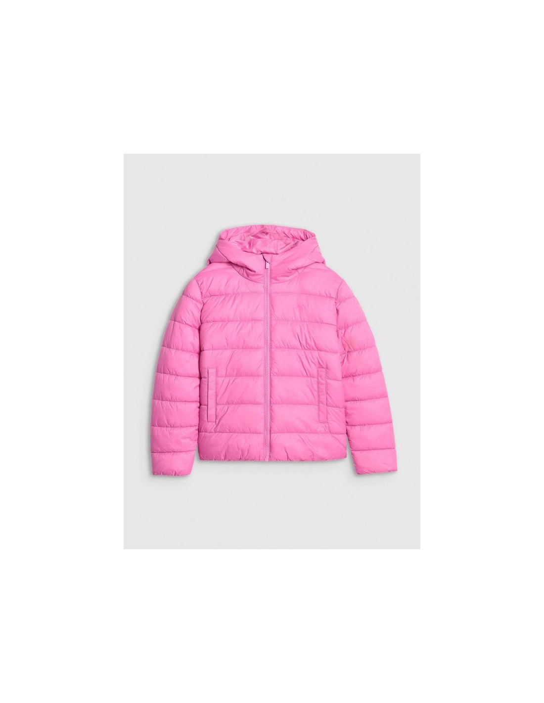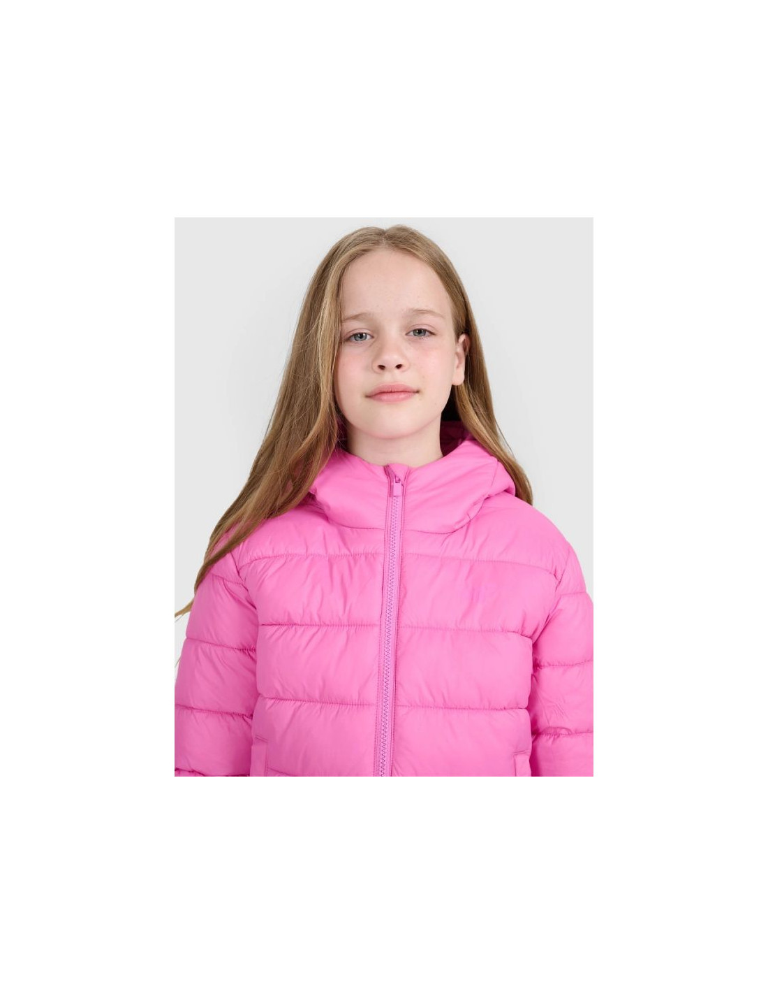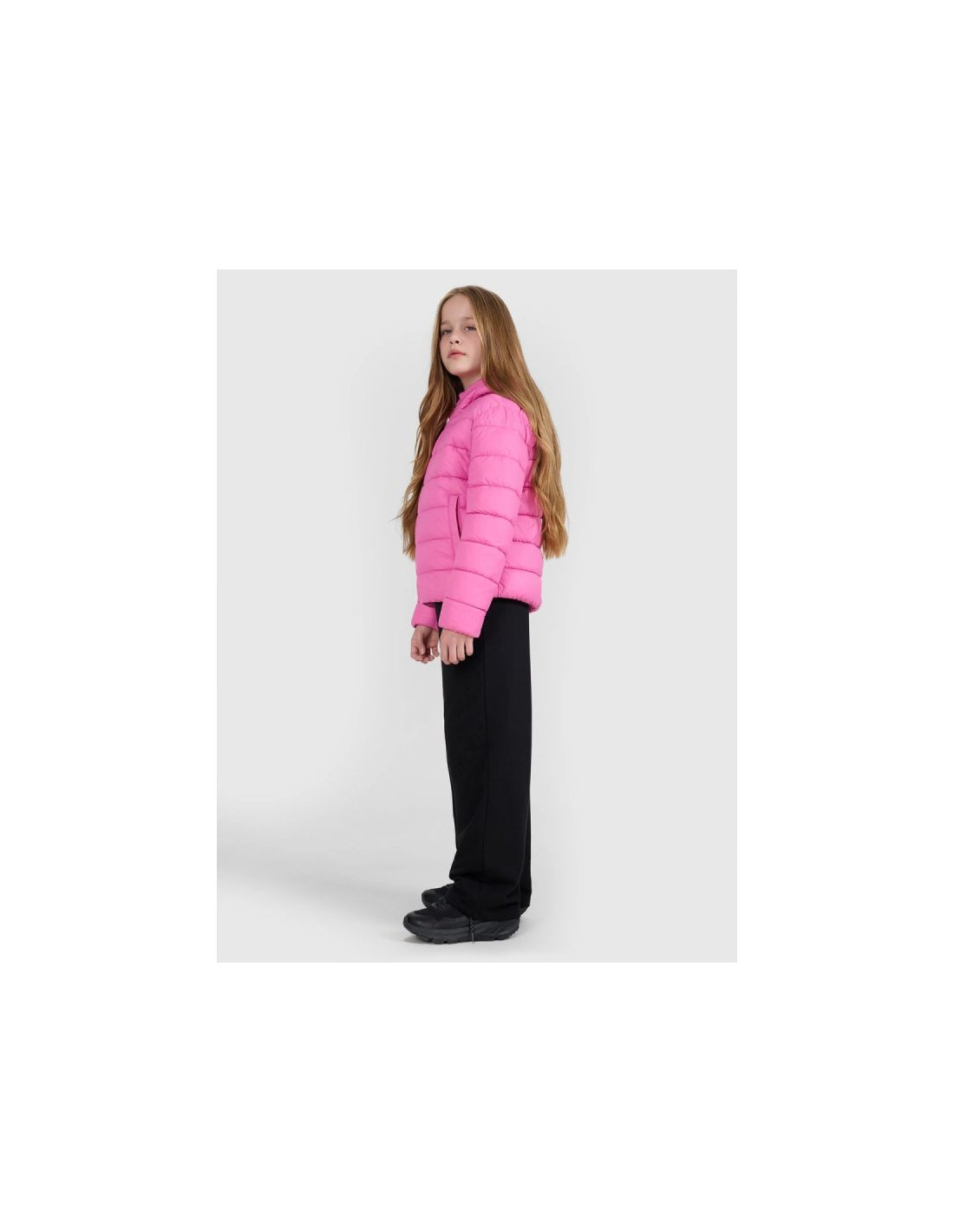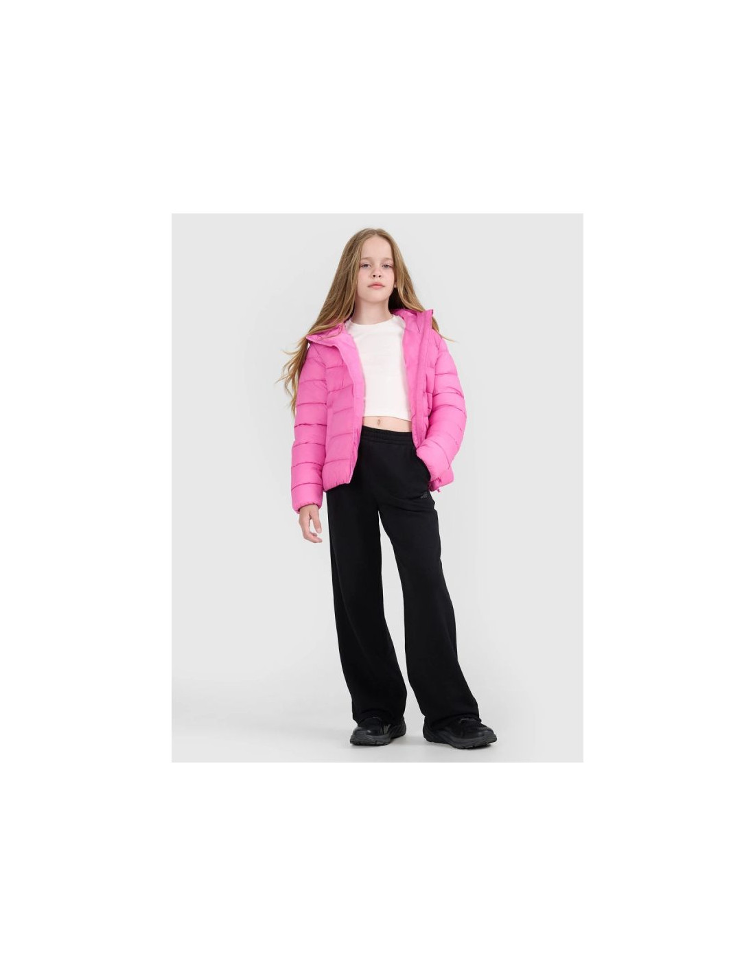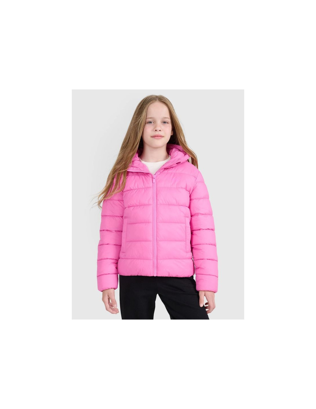 Ta dziewczęca kurtka puchowa o niskiej objętości została zaprojektowana z myślą o codziennym komforcie i aktywnościach w chłodniejsze, pochmurne dni. Syntetyczne wypełnienie rozmieszczone w klasycznych poziomych pikowaniach zapewnia ciepło bez obciążenia i zachowuje swoje właściwości nawet po kontakcie z wilgocią. Hydrofobowa powłoka ogranicza wchłanianie wody, a technologia 4FWarm wspiera komfort cieplny w zmiennych warunkach pogodowych. Krój regular, standardowa długość oraz elastyczne wykończenia mankietów i dołu gwarantują wygodne dopasowanie, a zintegrowany kaptur i stójka chronią przed wiatrem. Lekka konstrukcja sprawia, że kurtkę można łatwo złożyć i schować — idealnie sprawdza się jako element ubioru warstwowego i codziennego.