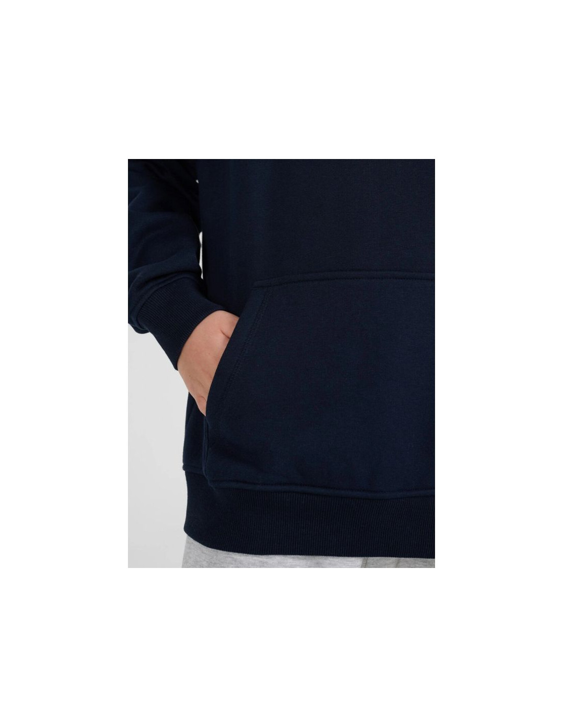 Zintegrowany kaptur chroni przed chłodem, a mankiety i dół wykończone ściągaczem poprawiają dopasowanie. Z przodu znajduje się praktyczna kieszeń typu kangurka, idealna na drobiazgi lub ogrzanie dłoni. Bluza jest wkładana przez głowę, co umożliwia szybkie i wygodne zakładanie.