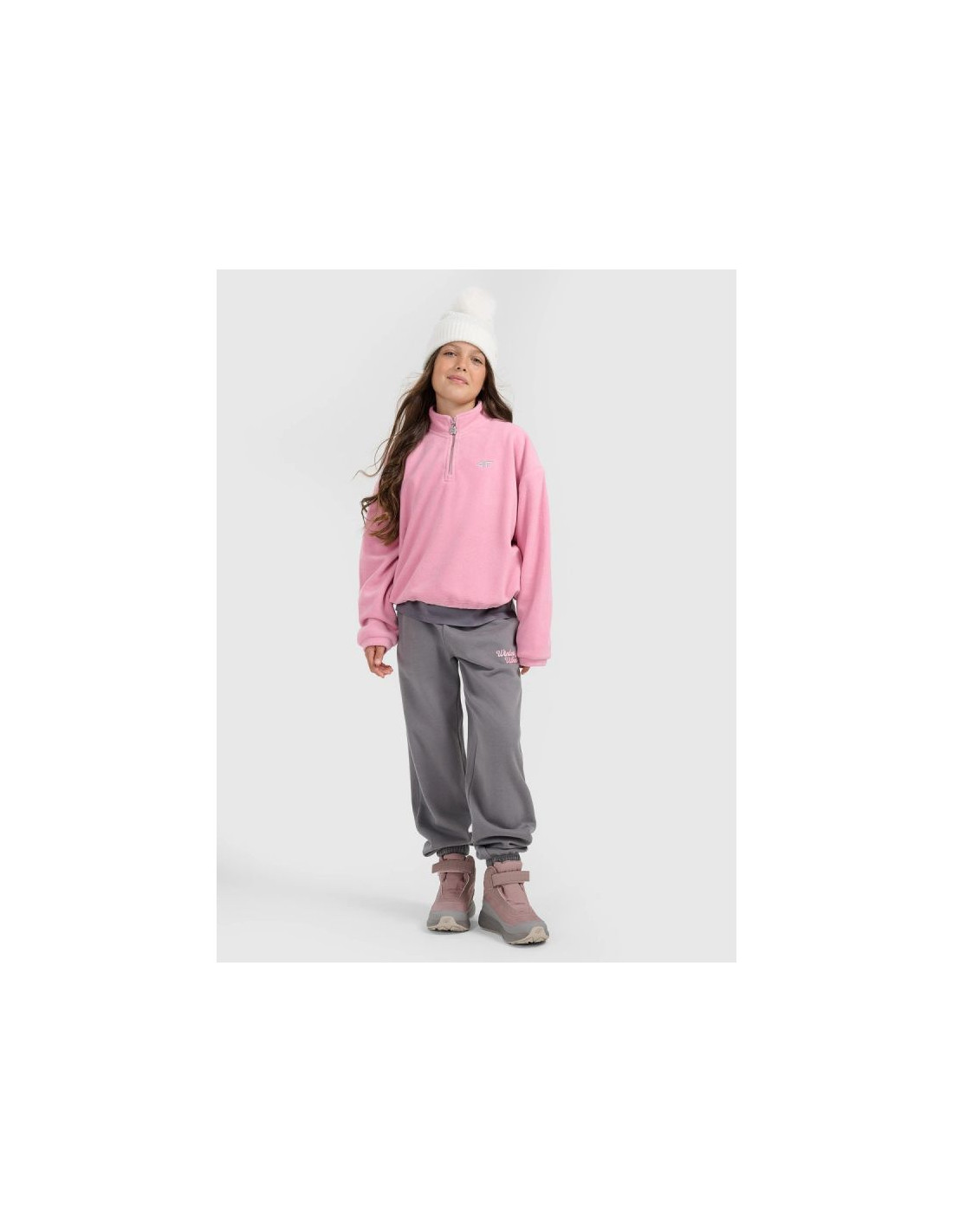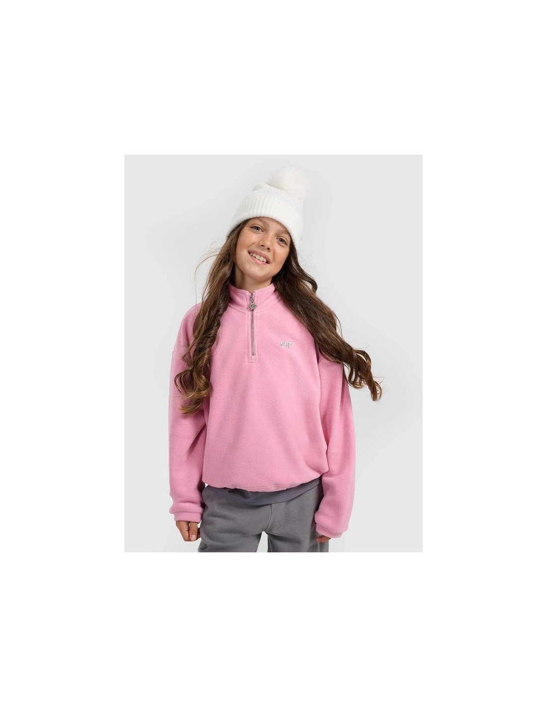 Dziewczęcy polar 4F 4FWarm to przytulna i stylowa warstwa na chłodniejsze dni, która łączy ciepło, wygodę i modny wygląd. Technologia 4FWarm wspiera utrzymanie komfortu cieplnego, a grubszy, miękki materiał skutecznie otula ciało, zapewniając ochronę przed chłodem. Luźny krój typu loose oraz skrócony fason cropped nadają polarowi nowoczesny charakter, idealny do codziennych stylizacji – do szkoły, na spacer czy do relaksu w domu.