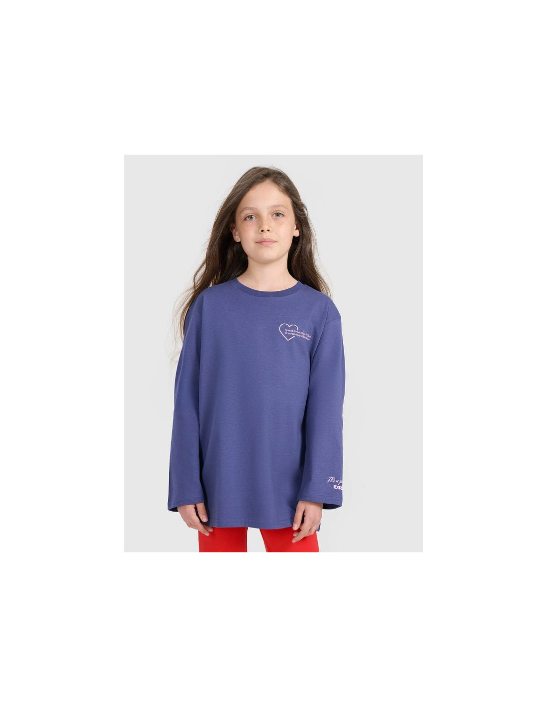 Dziewczęcy longsleeve z bawełny to wygodna i stylowa propozycja na co dzień, która sprawdzi się zarówno w casualowych, jak i sportowych stylizacjach. Wykonany w 100% z bawełny o gramaturze 200 gsm, zapewnia trwałość, komfort noszenia oraz odpowiednią grubość materiału na cały rok. Luźny krój oversize gwarantuje swobodę ruchów i nowoczesny wygląd, a nadruki z przodu i na plecach dodają charakteru.
