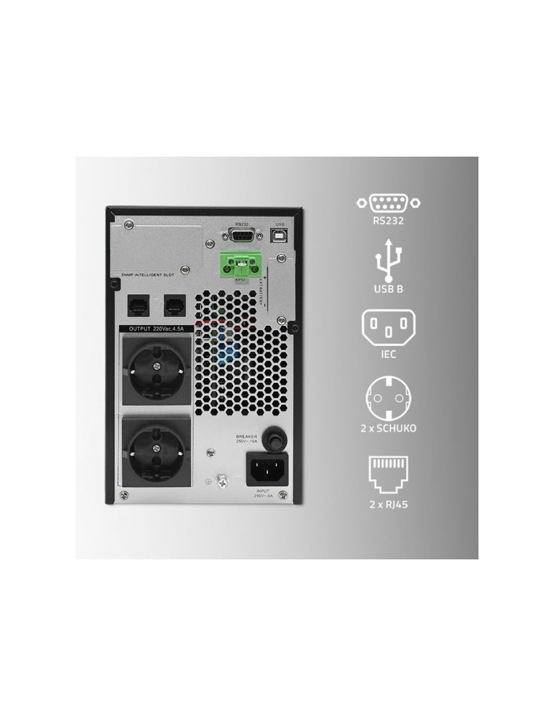 - Typy wyjść AC: Schuko