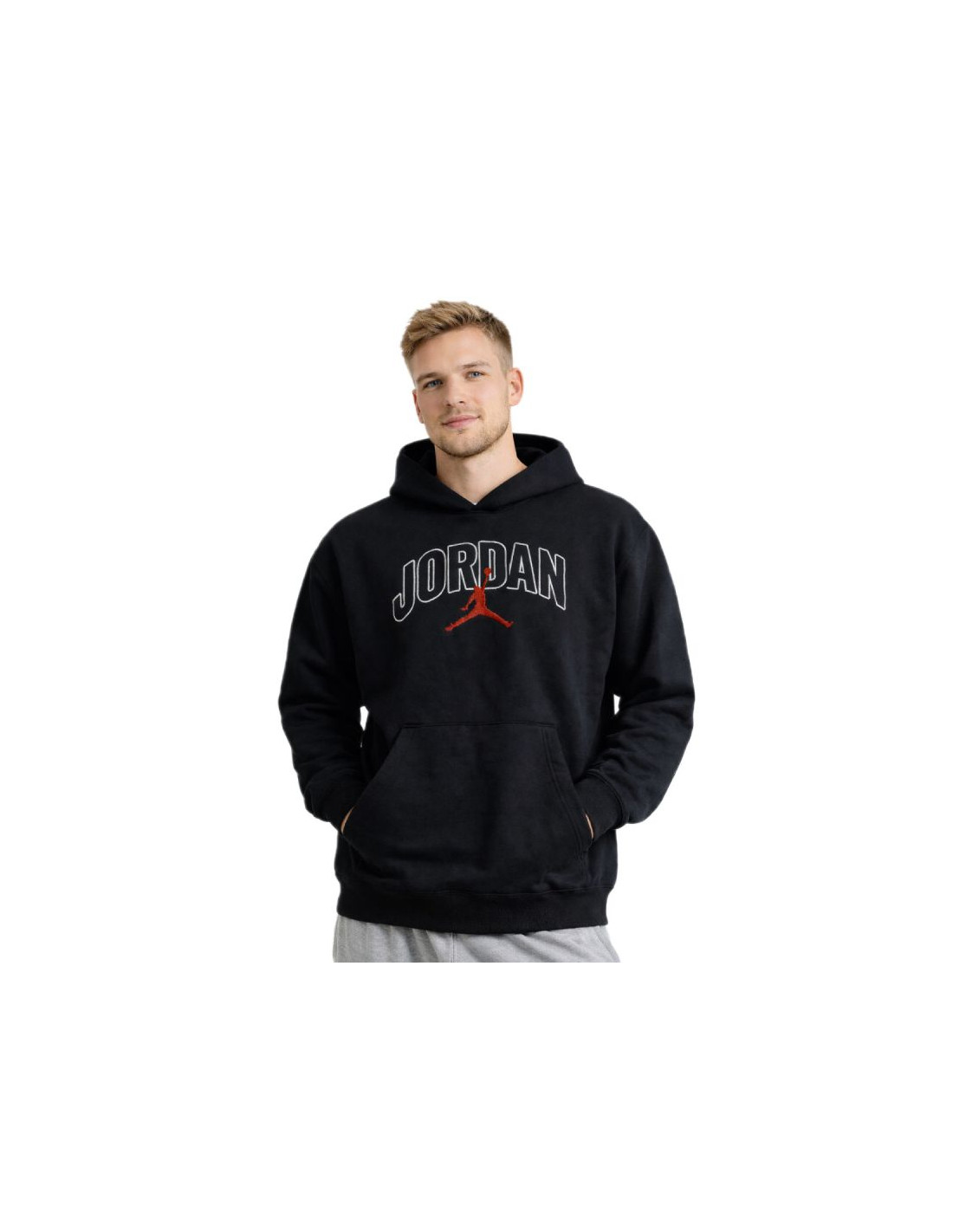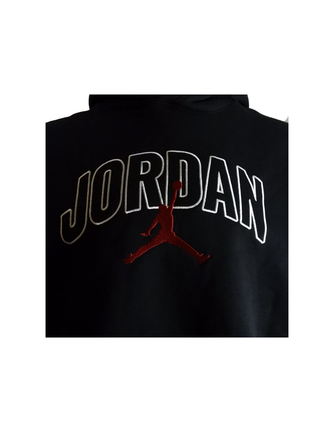 Na piersi umieszczono haftowany napis „Jordan” oraz czarny logotyp Jumpmana, które podkreślają autentyczność i prestiż marki.