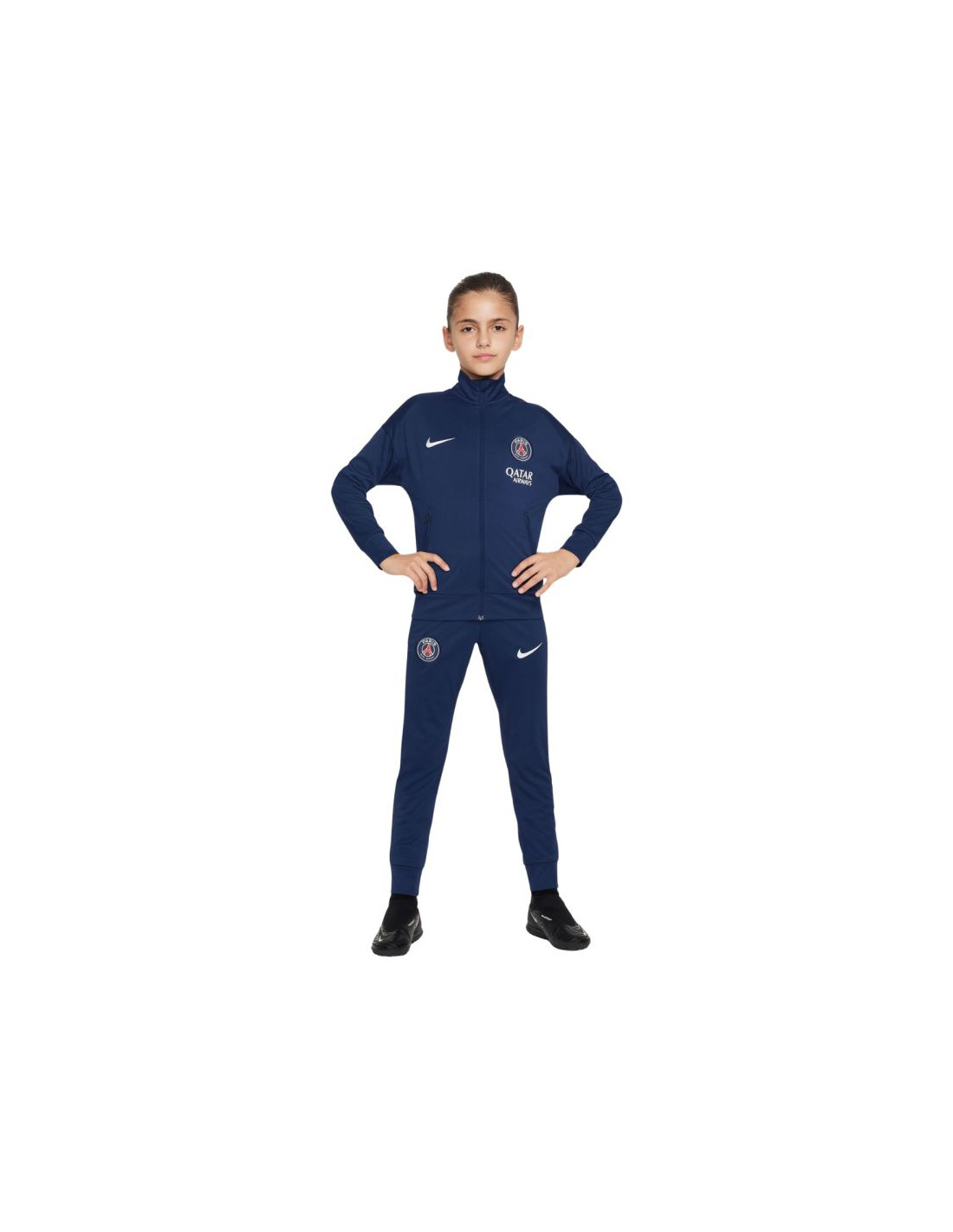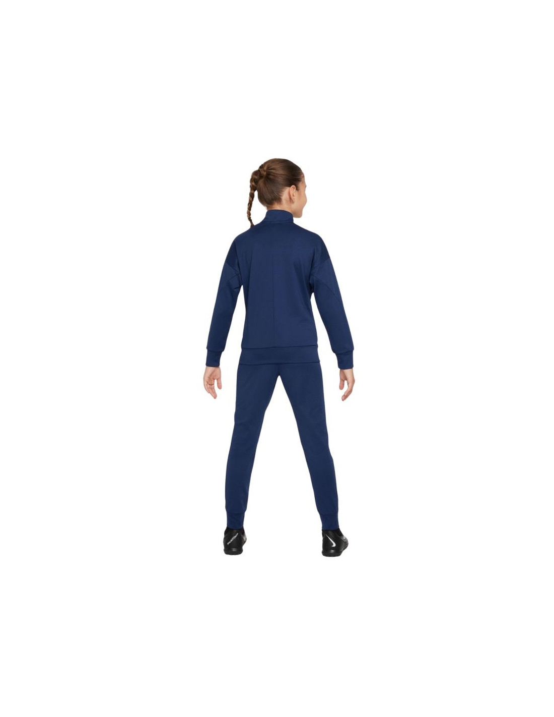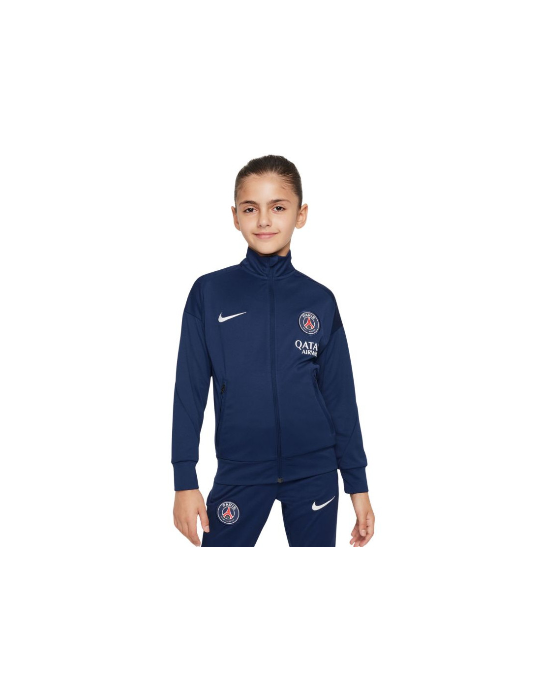 Dres dla dzieci Nike PSG Dri-Fit Academy Pro granatowy FQ0063 411 Dres to funkcjonalny dodatek w sportowej garderobie młodych kibiców. Logo Paris Saint-Germain. Technologia Dri-FIT ma zadanie odprowadzenie wilgoci. Bluza posiada zamek na całej długości i zapinane kieszenie. Spodnie dresowe zakończono ściągaczami. Elastyczna talia regulowana sznurkiem. Materiał: 100% poliester