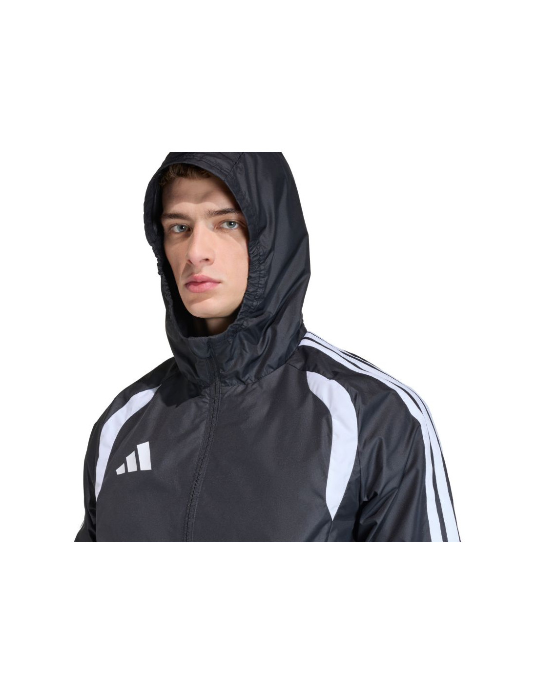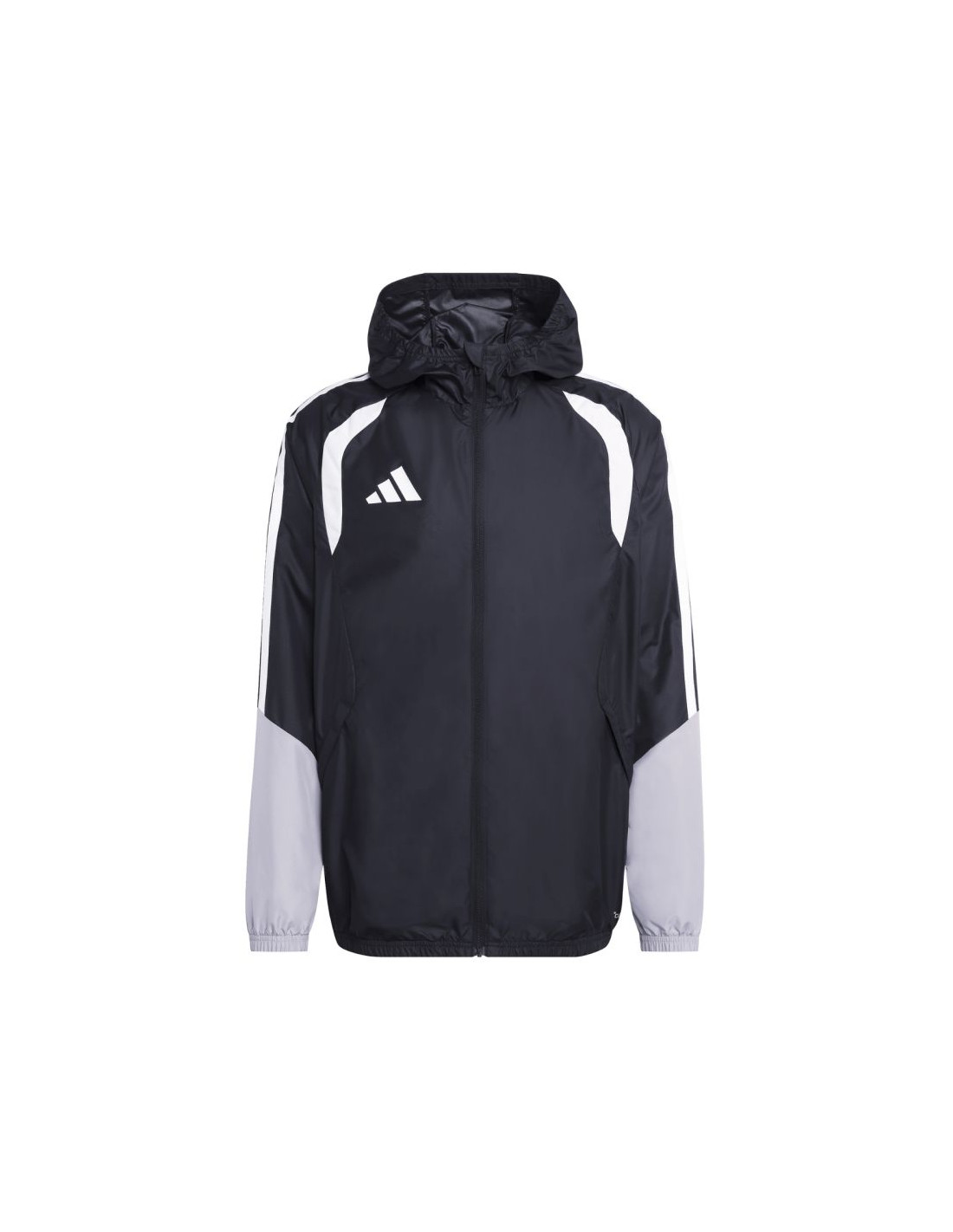 Kurtka męska adidas Tiro 26 Competition All Weather czarna JX4247 Męska kurtka adidas Tiro sprawdzi się podczas treningów. Zamek na całej długości pozwala na szybkie ubieranie. Patka chroniąca podbródek. Kaptur z elastycznym wykończeniem. Technologia Clima365. Kurtka została uszyta z materiału o przeciwdeszczowych właściwościach. Wiatroodporność. Dane techniczne:· Materiał: 100% poliester (pochodzący z recyklingu)· Standardowy krój· Suwak na całej długości· Technologia CLIMA365 · Przednie kieszenie na suwaki· Chowany kaptur· Elastyczne mankiety i dół