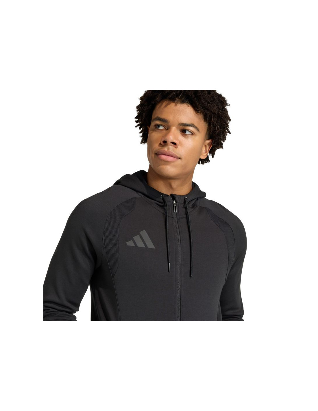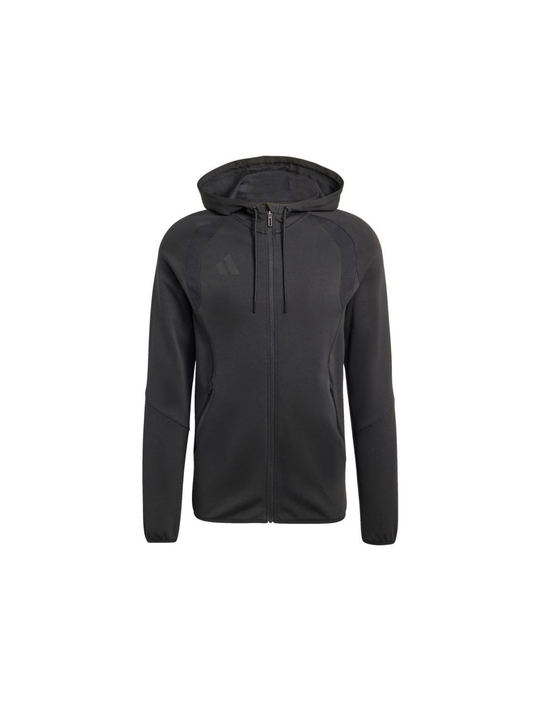 Bluza męska adidas Tiro 26 Travel Sweat Hoodie czarna KF6075 Bluza męska adidas zadba o komfort poza boiskiem. Model pochodzi z piłkarskiej linii Tiro. Materiał łączy bawełnę oraz poliestrowe włókna. Długi, jednokierunkowy zamek zakończony patką ochronną. Dopasowany krój wykończony elastyczną lamówką. Obszerny kaptur z regulacją. Przednie, zapinane kieszenie. Materiał: 75% bawełna, 25% poliester z recyklingu