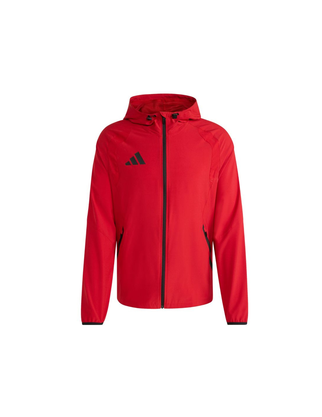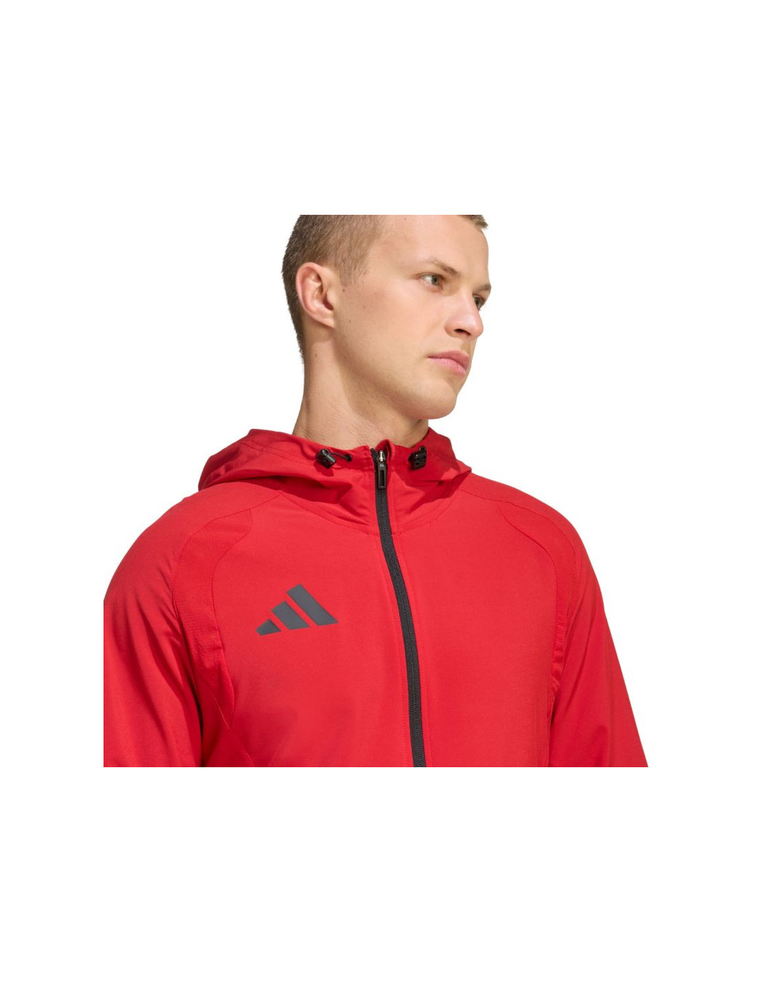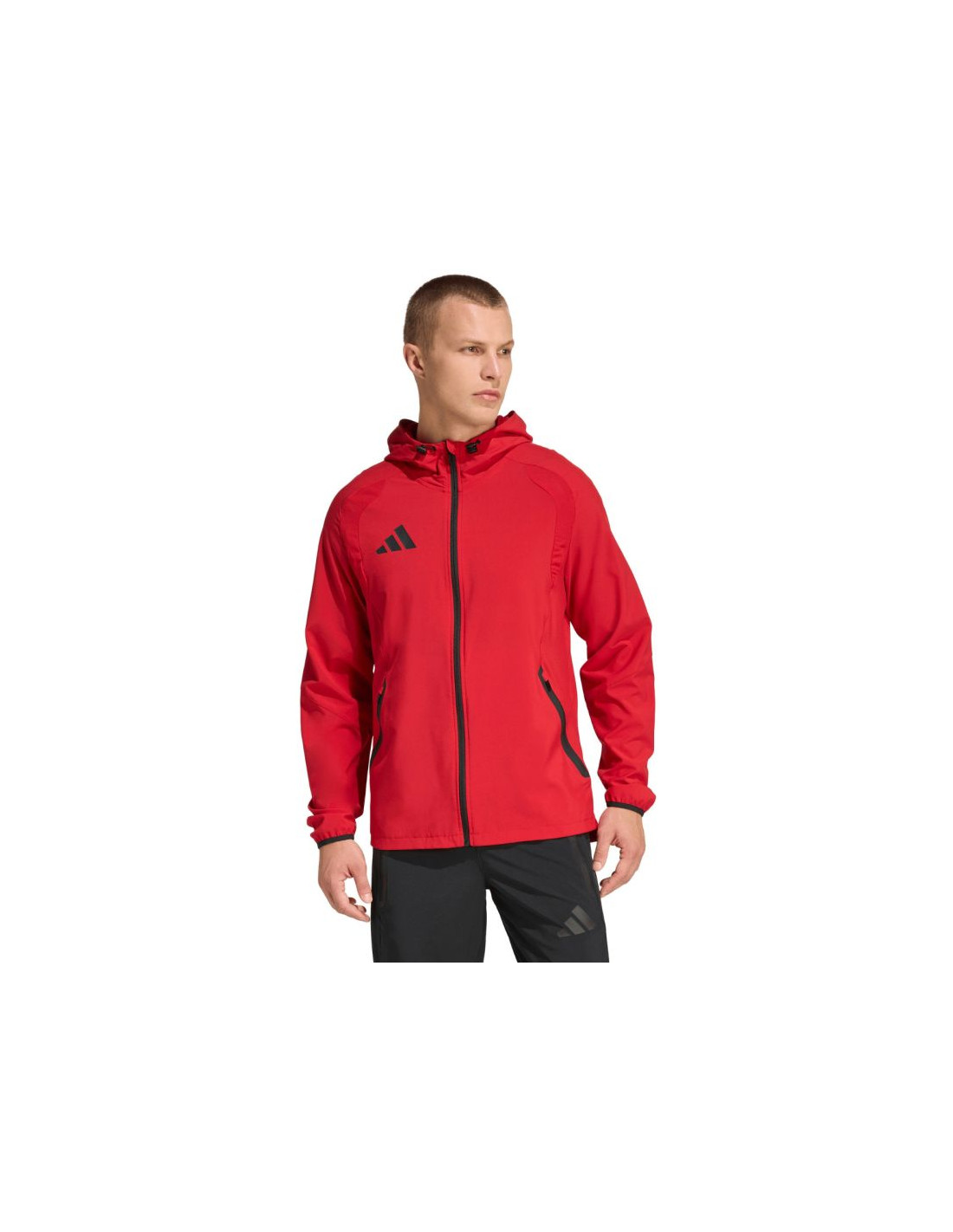 Kurtka męska adidas Tiro 26 Travel Windbreaker czerwona KD3337 Męska wiatrówka inspirowana piłkarskim dziedzictwem marki adidas, łączy funkcjonalność z nowoczesnym stylem. Prosta, dopracowana sylwetka o dopasowanym kroju oraz ergonomiczne przeszycia sprawiają, że kurtka naturalnie układa się na sylwetce i swobodnie porusza razem z Tobą. Zamek na całej długości oraz regulowany kaptur. Lekka konstrukcja z gładkiego materiału. Subtelne detale z logo adidas. Kurtka sprawdzi się zarówno w drodze na trening, jak i w codziennych stylizacjach. Dane techniczne:· Materiał: 87% poliester pochodzący z recyklingu, 13% elastan· Dopasowany krój· Suwak· Elastyczne mankiety· Kaptur z regulacją za pomocą stoperów· Zapinane kieszenie boczne· Dół obszyty elastyczną taśmą