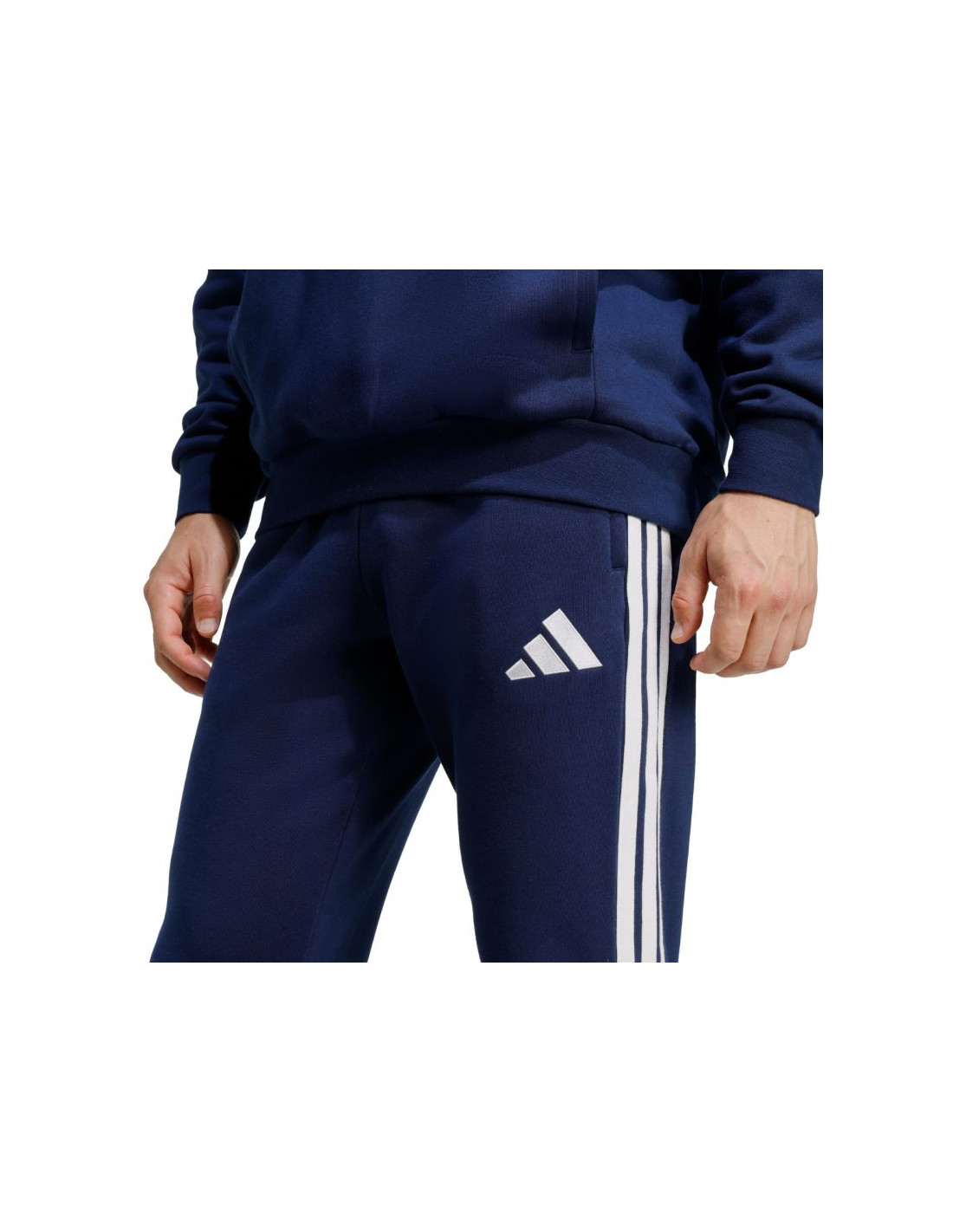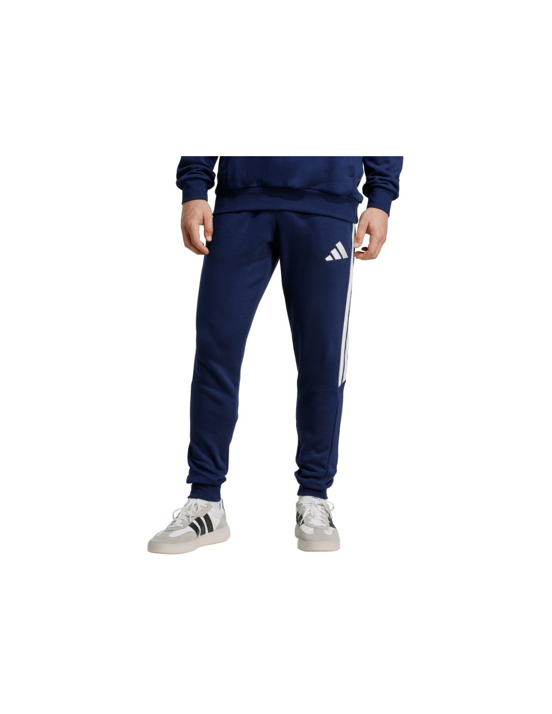 Spodnie męskie adidas Tiro 26 League Sweat granatowe JY7153 Spodnie męskie adidas będące częścią linii Tiro sprawdzą się podczas odpoczynku pomiędzy sesjami treningowymi. Połączenie oddychającej bawełny z trwałymi, poliestrowymi włóknami. Regularny krój ze ściągaczowymi wstawkami w dolnej części nogawek. Elastyczna talia z wewnętrznym sznurkiem do regulacji. Zapinane kieszenie boczne. Materiał: 70% bawełna, 30% poliester