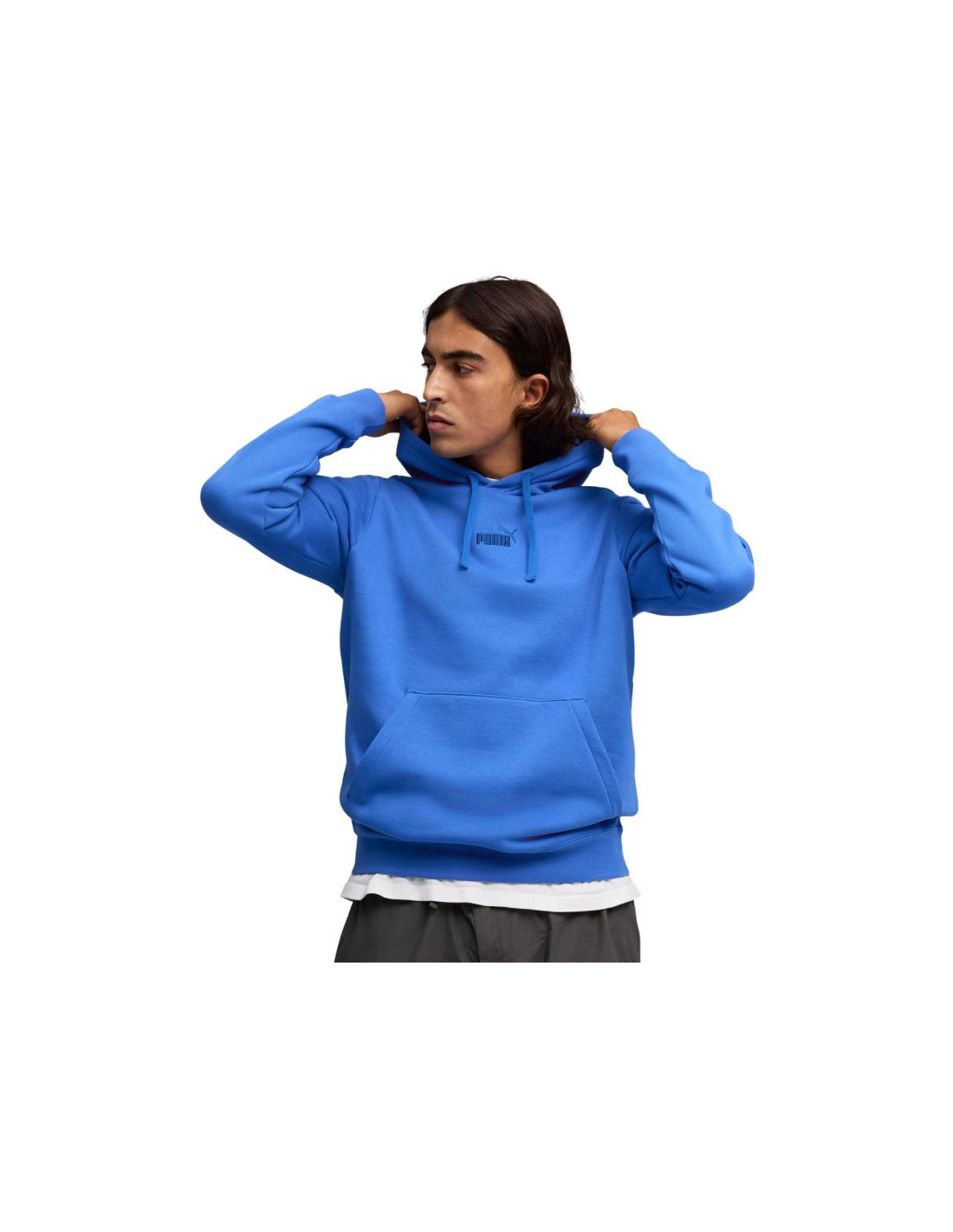 Bluza męska Puma ESS No.1 Logo Centered Hoodie niebieska 692914 13 Męska bluza Puma to niezbędnik każdego mężczyzny niezależnie od pory roku. Miękka konstrukcja z bawełny i poliestru dba o poczucie wygody, wentylację ciała oraz dodatkowo jest niezwykle trwała. Klasyczny krój nie krepuje ruchów, co pozwala na zachowanie mobilności w każdej sytuacji. Zintegrowany kaptur z podszewką regulowany sznurkiem osłoni głowę przed niekorzystnymi warunkami atmosferycznymi. Frontowa kieszeń na drobiazgi. Elastyczne ściągacze na mankietach i u dołu bluzy. Niewielkie logo z przodu. Dane techniczne:· Materiał główny: 66% bawełna, 34% poliester· Ściągacze: 97% bawełna, 3% elastan· Podszewka kaptura: 100% bawełna