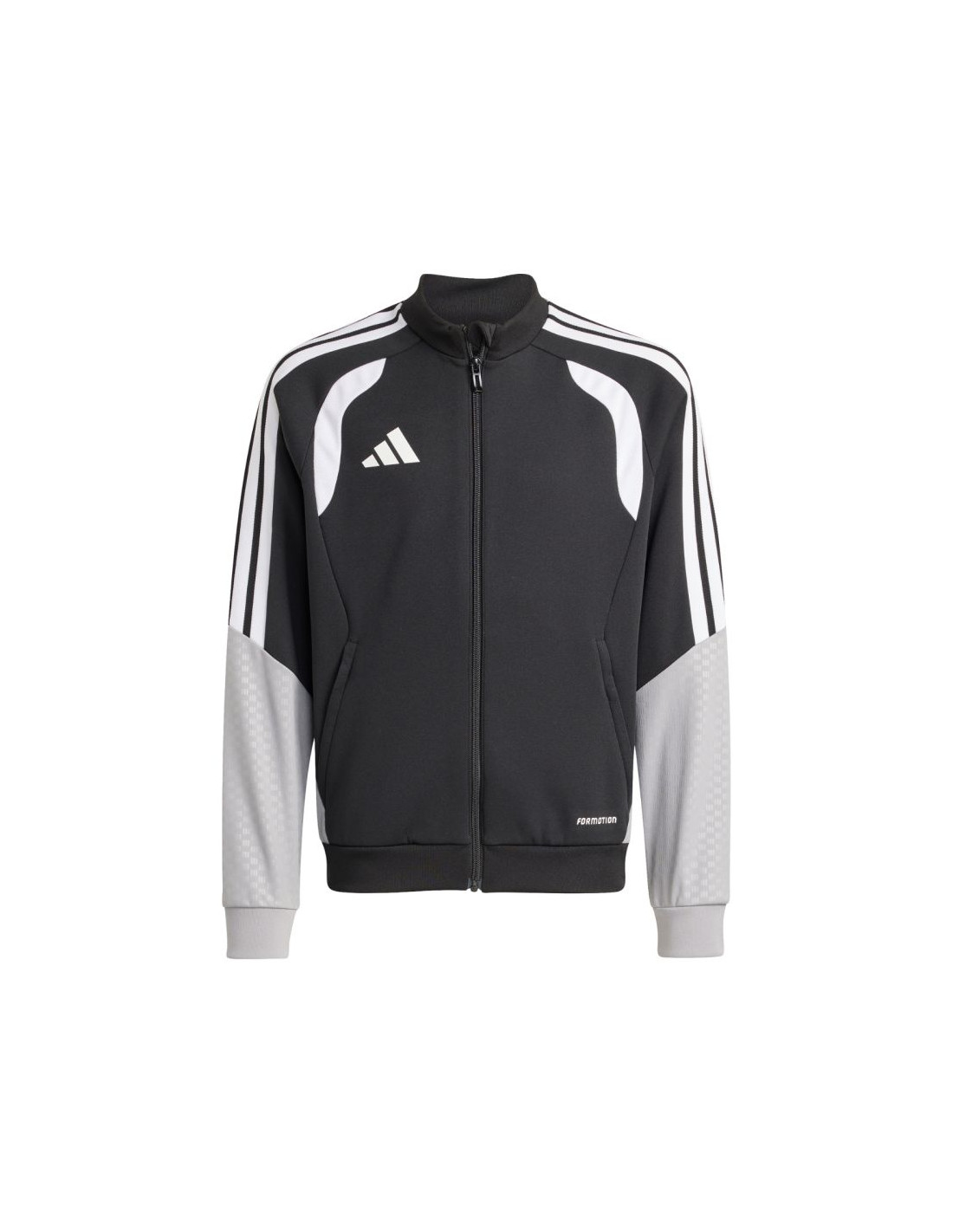 Bluza dla dzieci adidas Tiro 26 Competition Training czarna KA7711 Bluza piłkarska adidas przeznaczona dla dzieci sprawdzi się podczas treningów. Stójka. Długi zamek wykończono patką chroniącą podbródek. Dopasowany krój. Technologia Formotion zadba o jeszcze lepszą mobilność. Siateczkowe panele umieszczone na klatce piersiowej. Paski w górnej części rękawów. Mankiety wykończone elastycznymi ściągaczami. Wytłoczone elementy na ramionach i bokach. Materiał: 100% poliester z recyklingu