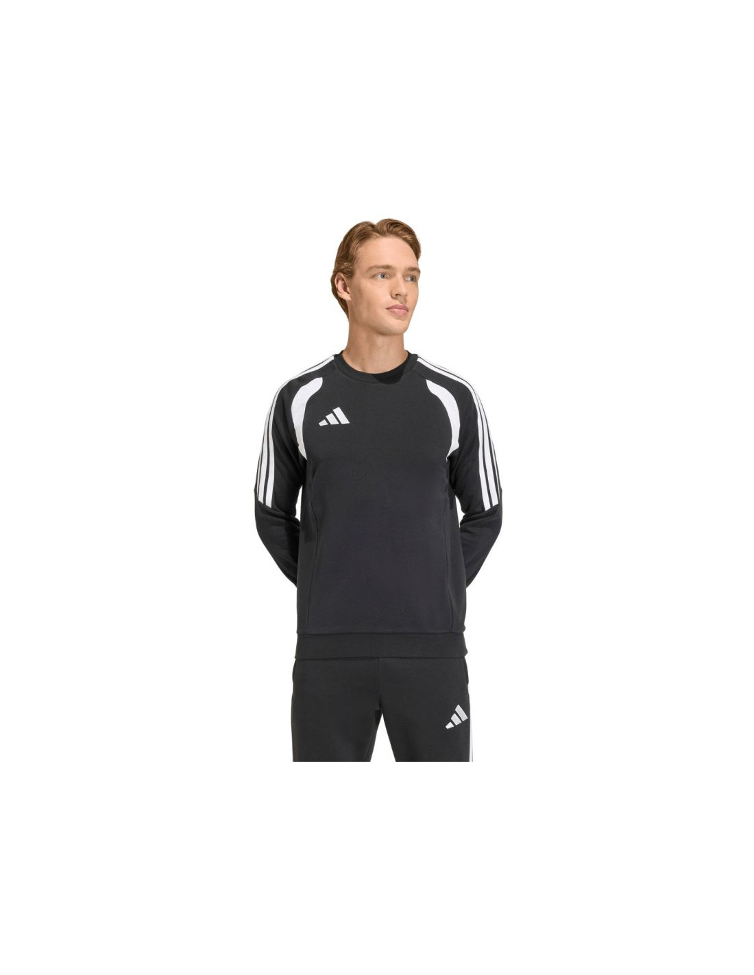 Bluza męska adidas Tiro 26 League Sweat Crew czarno-biała KF3413 Bluza męska adidas świetnie sprawdzi się nie tylko podczas aktywności, ale również w codziennych stylizacjach. Została zaprojektowana z myślą o życiu poza boiskiem. Dominująca bawełna w składzie materiałowym. Dodatek poliestrowych włókien. Miękkie, lekkie ocieplenie. Standardowy krój wykończony elastycznymi ściągaczami przy mankietach i na dole. Materiał: 70% bawełna, 30% poliester z recyklingu