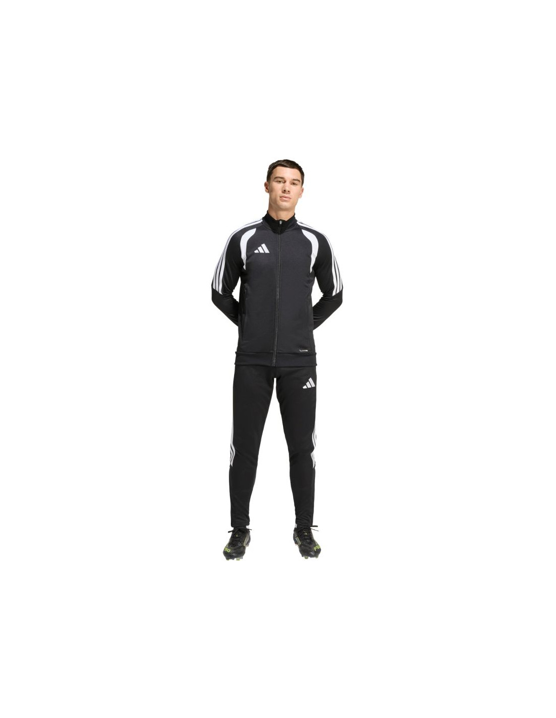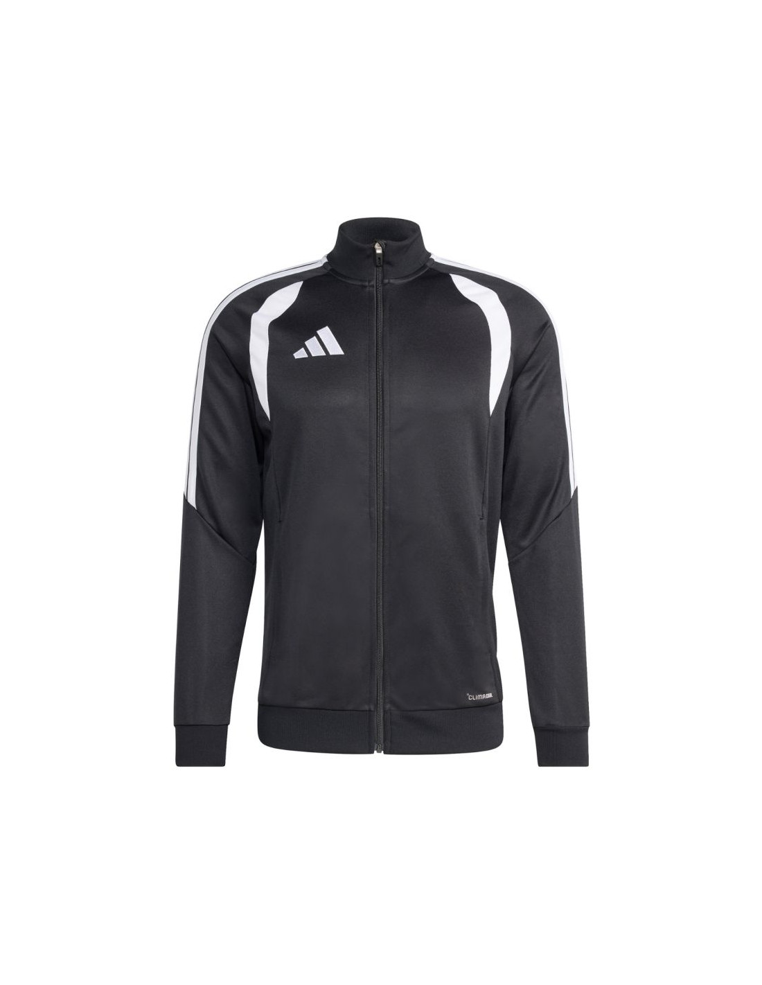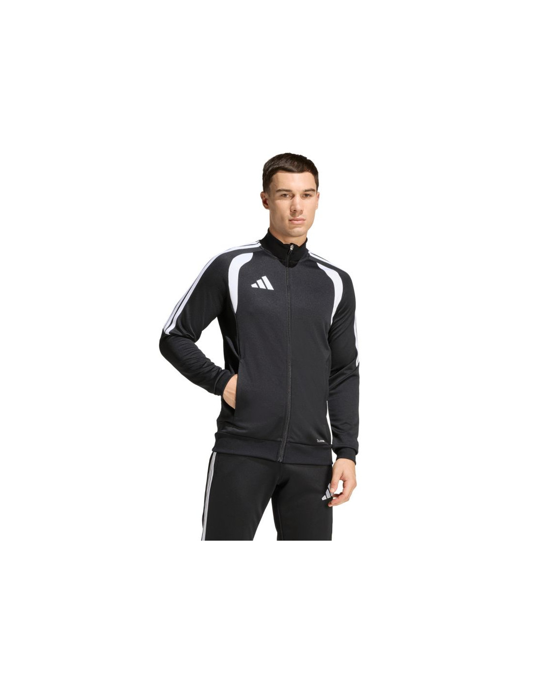 Bluza męska adidas Tiro 26 League Training czarna JY7207 Bluza piłkarska adidas przeznaczona dla mężczyzn sprawdzi się podczas treningów. Stójka. Zamek na całej długości. Dopasowany krój. Technologia Climacoool pochłania i odprowadza wilgoć. Siateczkowe wstawki na klatce piersiowej. Zapinane kieszenie boczne. Patka chroniąca podbródek. Paski na rękawach. Subtelne logo. Włókna z recyklingu. Materiał: 100% poliester z recyklingu