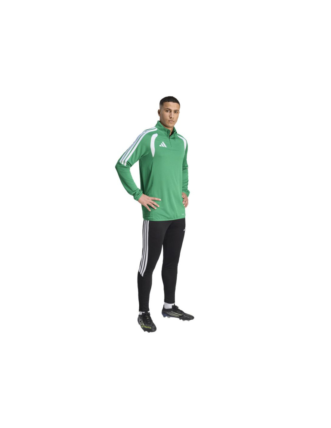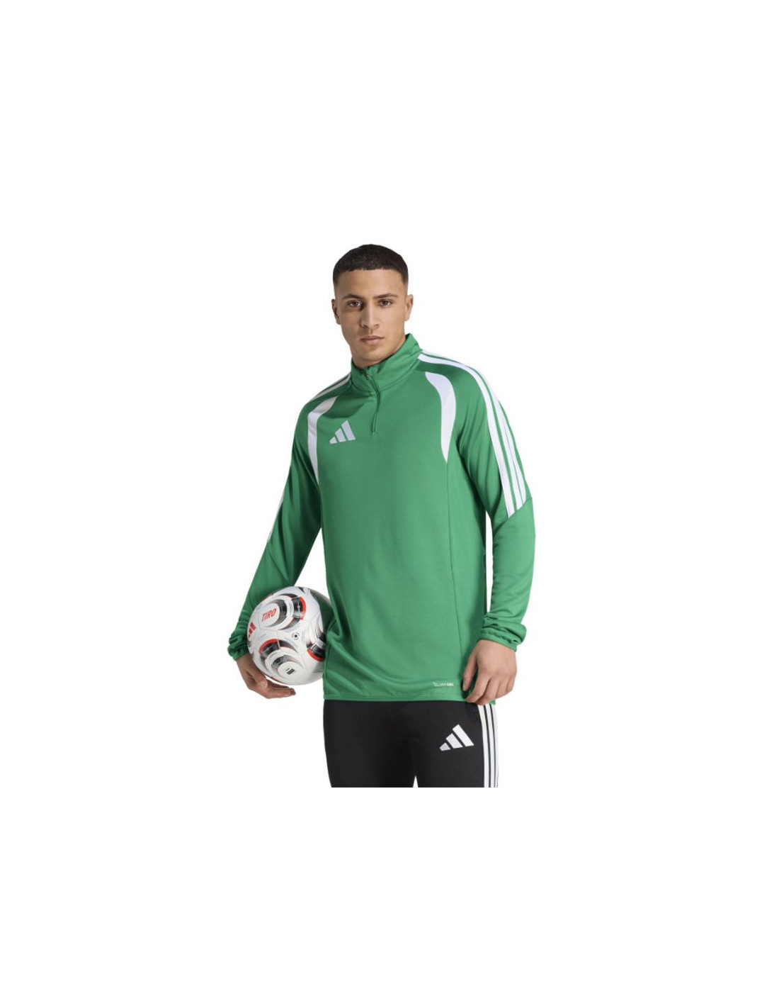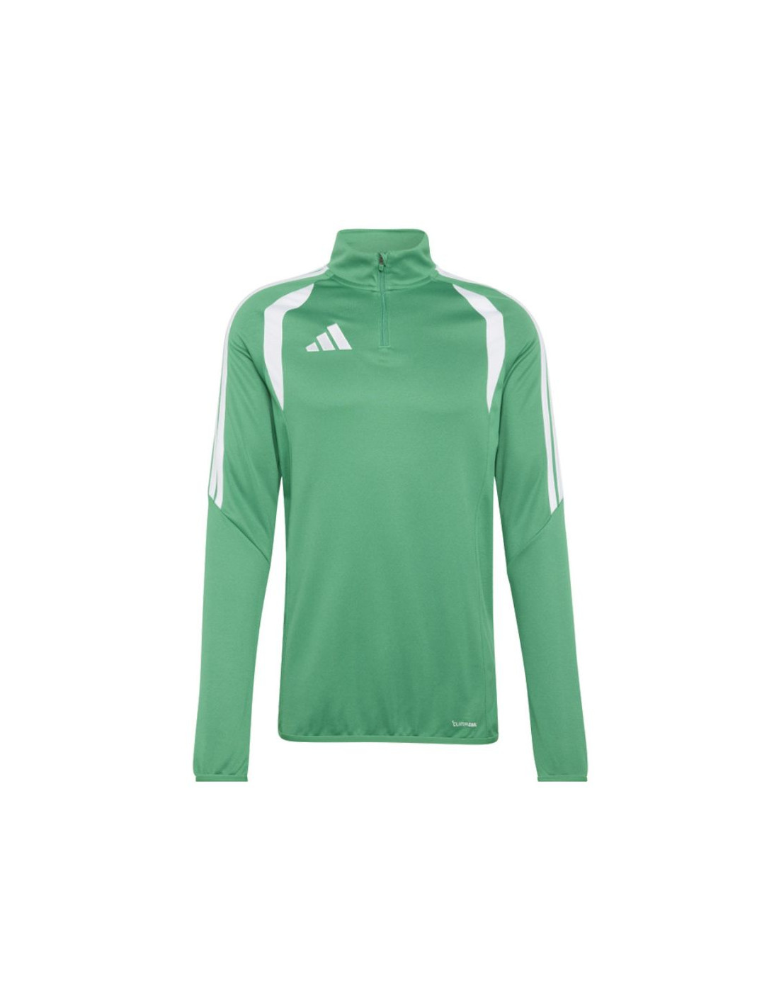 Bluza męska adidas Tiro 26 League Training Top zielona JY9691 Bluza piłkarska adidas przeznaczona dla mężczyzn sprawdzi się podczas treningów. Wykończony patką chroniącą podbródek, krótki zamek. Dopasowany krój. Technologia Climacool jest funkcjonalnym rozwiązaniem, które zapewnia uczucie chłodu i suchości oraz skupienie na grze. Dół oraz mankiety wykończono elastyczną lamówką. Kontrastowe, siateczkowe wstawki. Paski na rękawach. Subtelne logo na piersi. Materiał: 100% poliester z recyklingu