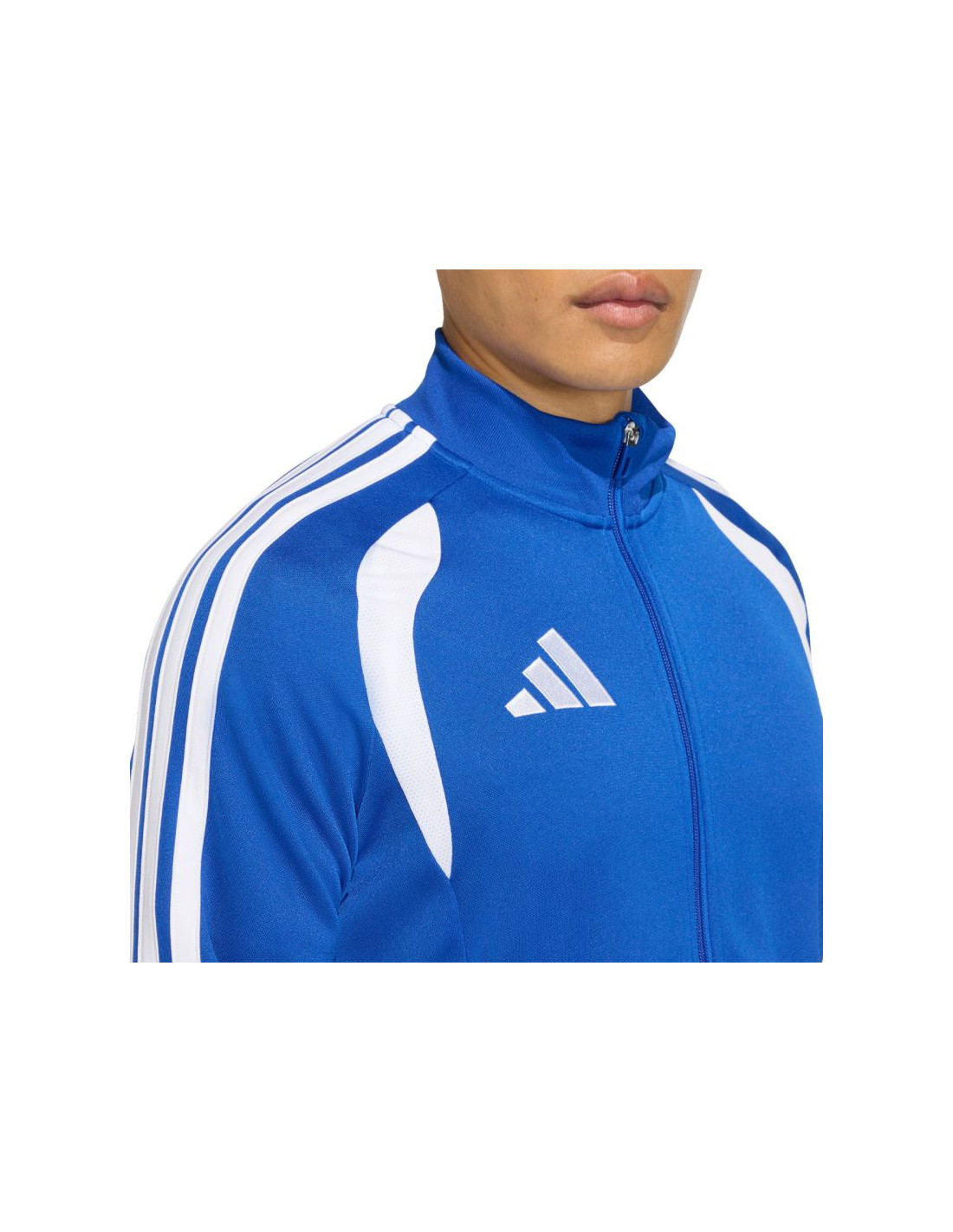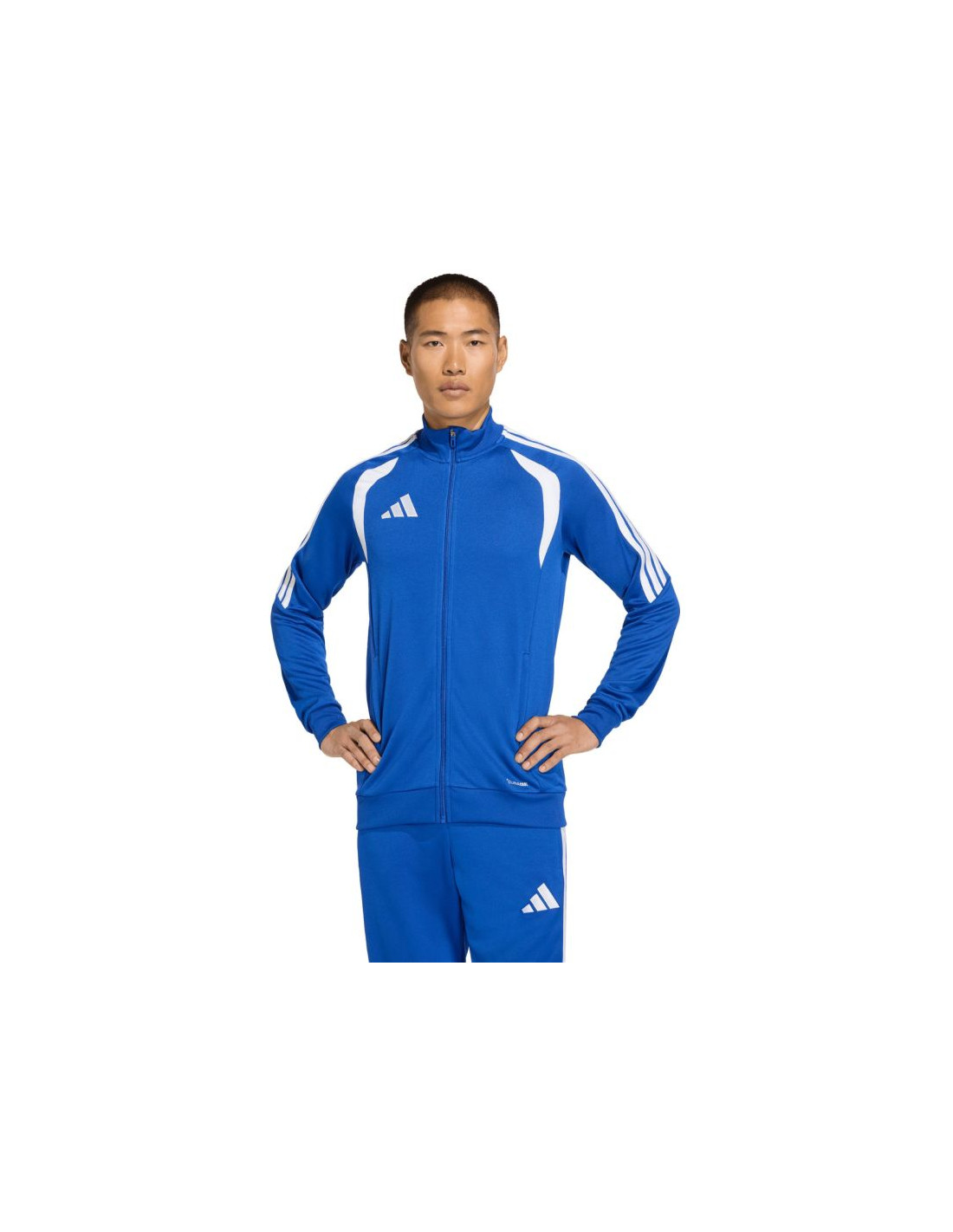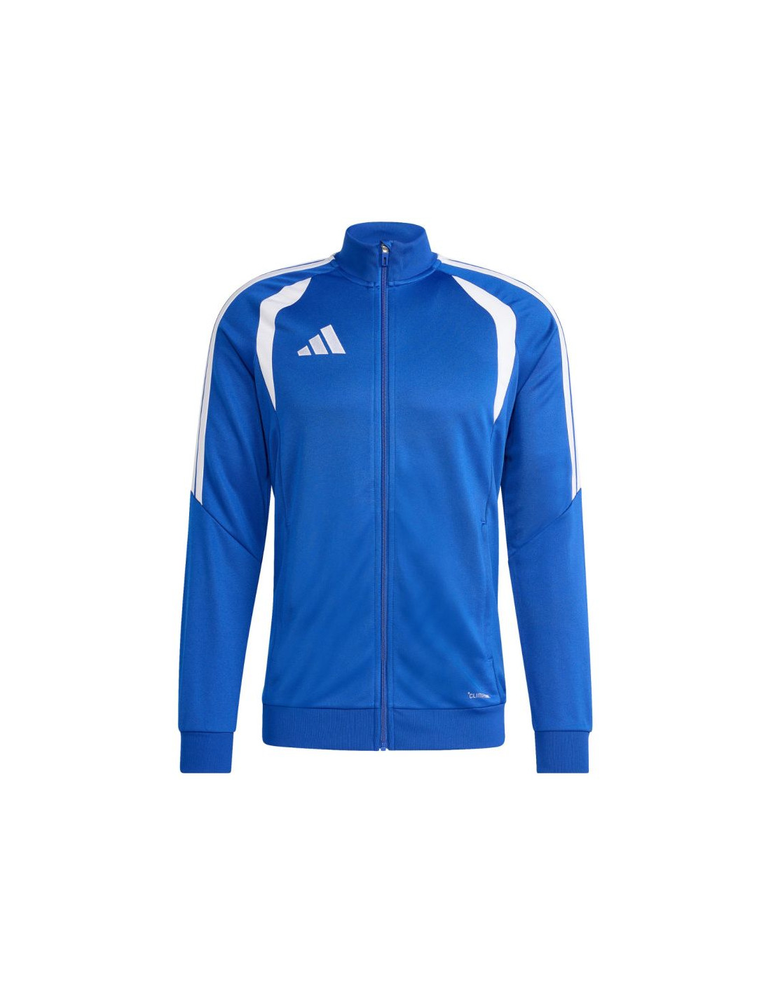 Bluza męska adidas Tiro 26 League Training niebieska JY7210 Bluza piłkarska adidas przeznaczona dla mężczyzn sprawdzi się podczas treningów. Stójka. Zamek na całej długości. Dopasowany krój. Technologia Climacoool pochłania i odprowadza wilgoć. Siateczkowe wstawki na klatce piersiowej. Zapinane kieszenie boczne. Patka chroniąca podbródek. Paski na rękawach. Subtelne logo. Włókna z recyklingu. Materiał: 100% poliester z recyklingu