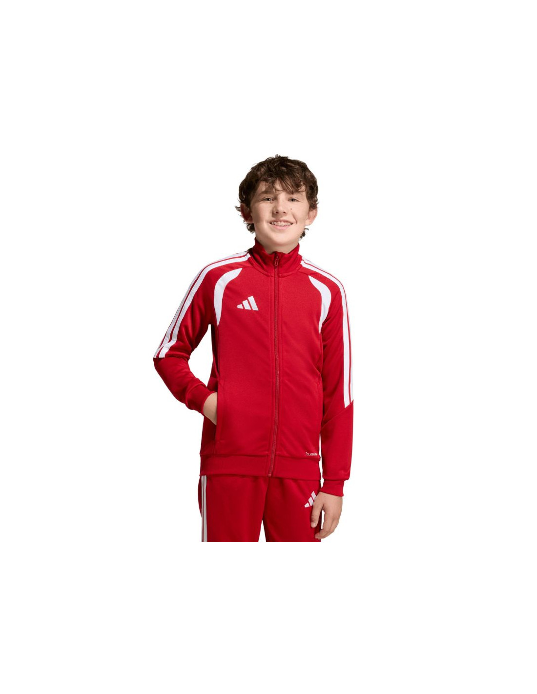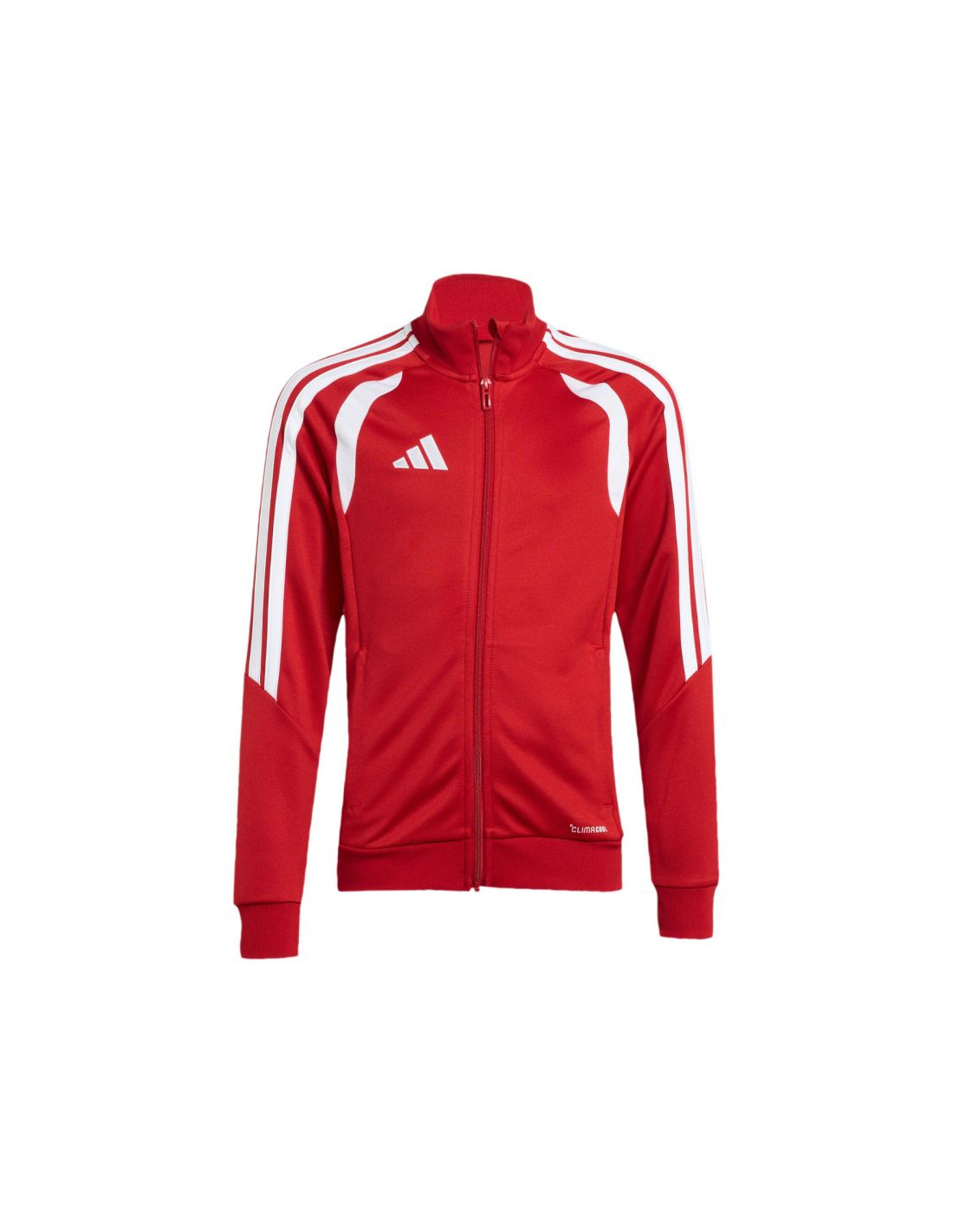 Bluza dla dzieci adidas Tiro 26 League Training czerwona JY7200 Bluza piłkarska adidas przeznaczona dla dzieci sprawdzi się podczas treningów. Stójka. Zamek na całej długości. Dopasowany krój. Technologia Climacool odprowadza i rozprasza pot. Paski na rękawach. Subtelne logo. Szybkoschnące włókna. Materiał: 100% poliester z recyklingu