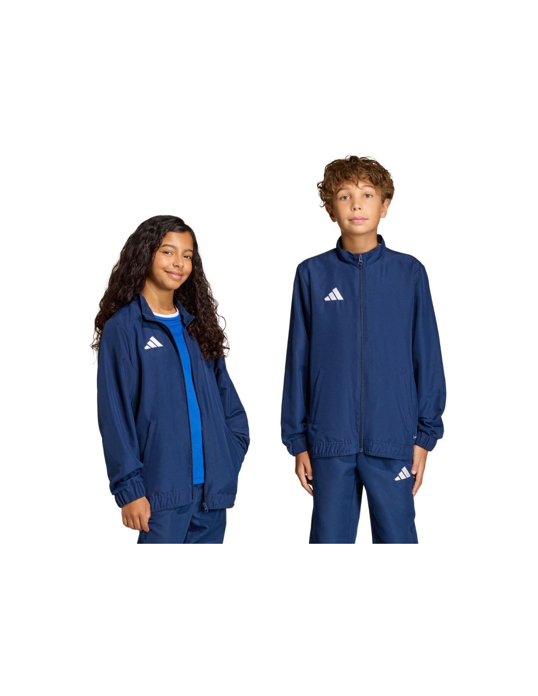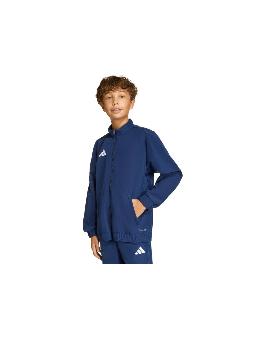 Bluza dla dzieci adidas Entrada 26 Presentation granatowa JZ6615 Bluza dla dzieci adidas będzie sprawdzonym modelem podczas rozgrzewki, regeneracji po treningu czy chwili na ławce rezerwowych. Standardowy krój. Zamek na całej długości. Stójka. Sportowy fason z elastycznymi mankietami i dołem. Technologia Climacool odprowadza i rozprasza pot, zapewniając chłód, suchość. Zapinane kieszenie boczne. Materiał: 100% poliester z recyklingu