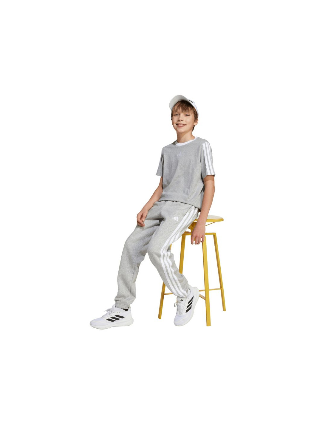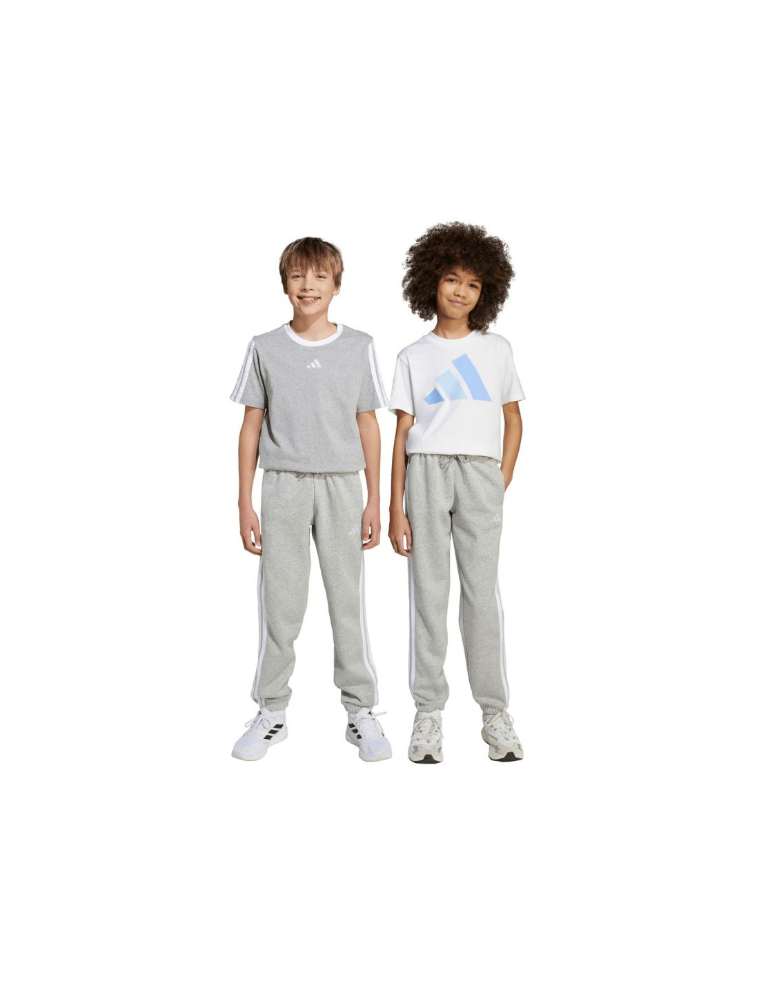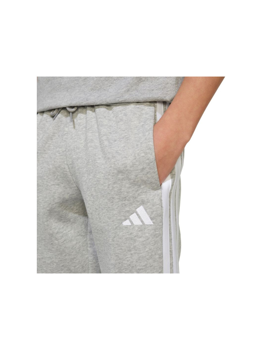 Spodnie dla dzieci adidas Essentials jasnoszare JY4995 Spodnie dla dzieci adidas sprawdzą się na co dzień. Miękka konstrukcja z wysoką zawartością bawełny. Dodatek poliestrowych włókien i wiskozy. Elastyczna talia. Dwie boczne kieszenie. Estetyczne ściągacze u dołu nogawek. Dyskretne logo. Materiał: 55% bawełna, 36% poliester z recyklingu, 9% wiskoza