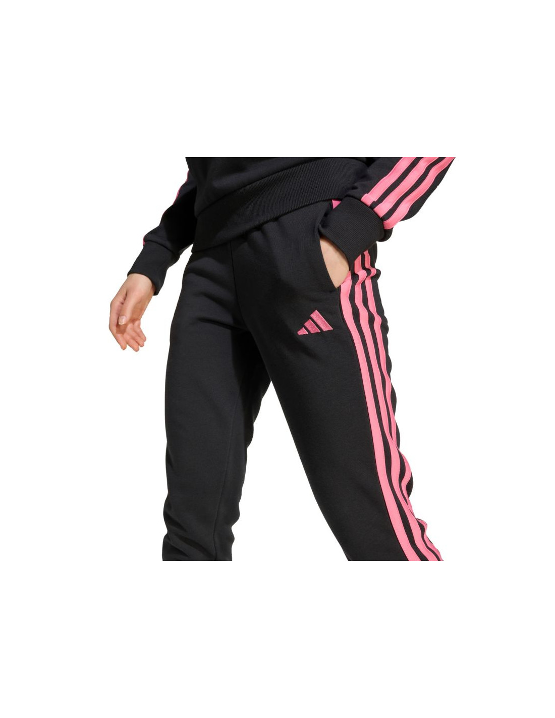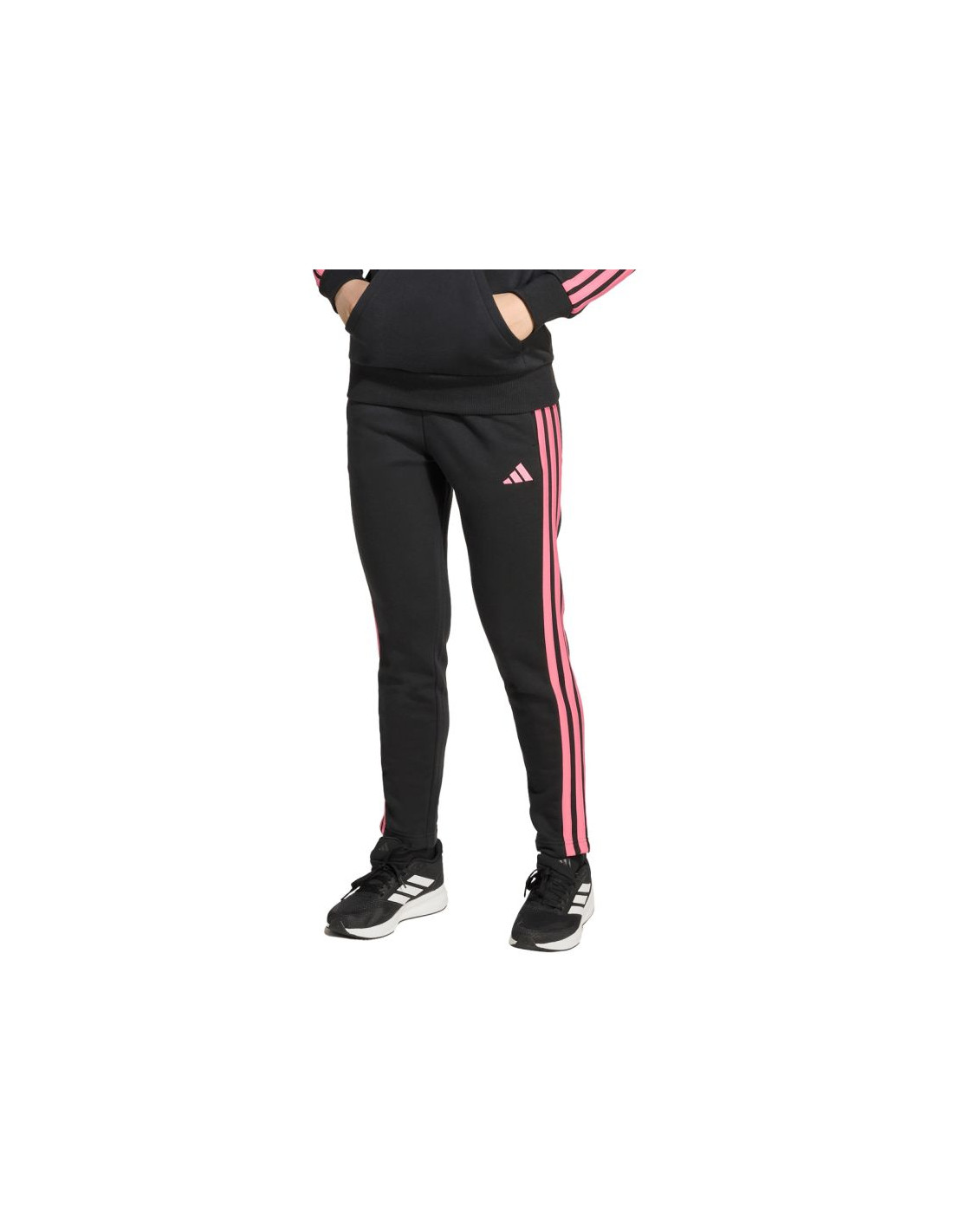 Spodnie dla dzieci adidas Essentials czarne JY5002 Spodnie dla dzieci adidas sprawdzą się na co dzień. Miękka konstrukcja z wysoką zawartością bawełny. Dodatek poliestrowych włókien i wiskozy. Standardowy krój. Elastyczna talia. Dwie boczne kieszenie. Dyskretne logo. Paski po bokach. Materiał: 55% bawełna, 36% poliester z recyklingu, 9% wiskoza