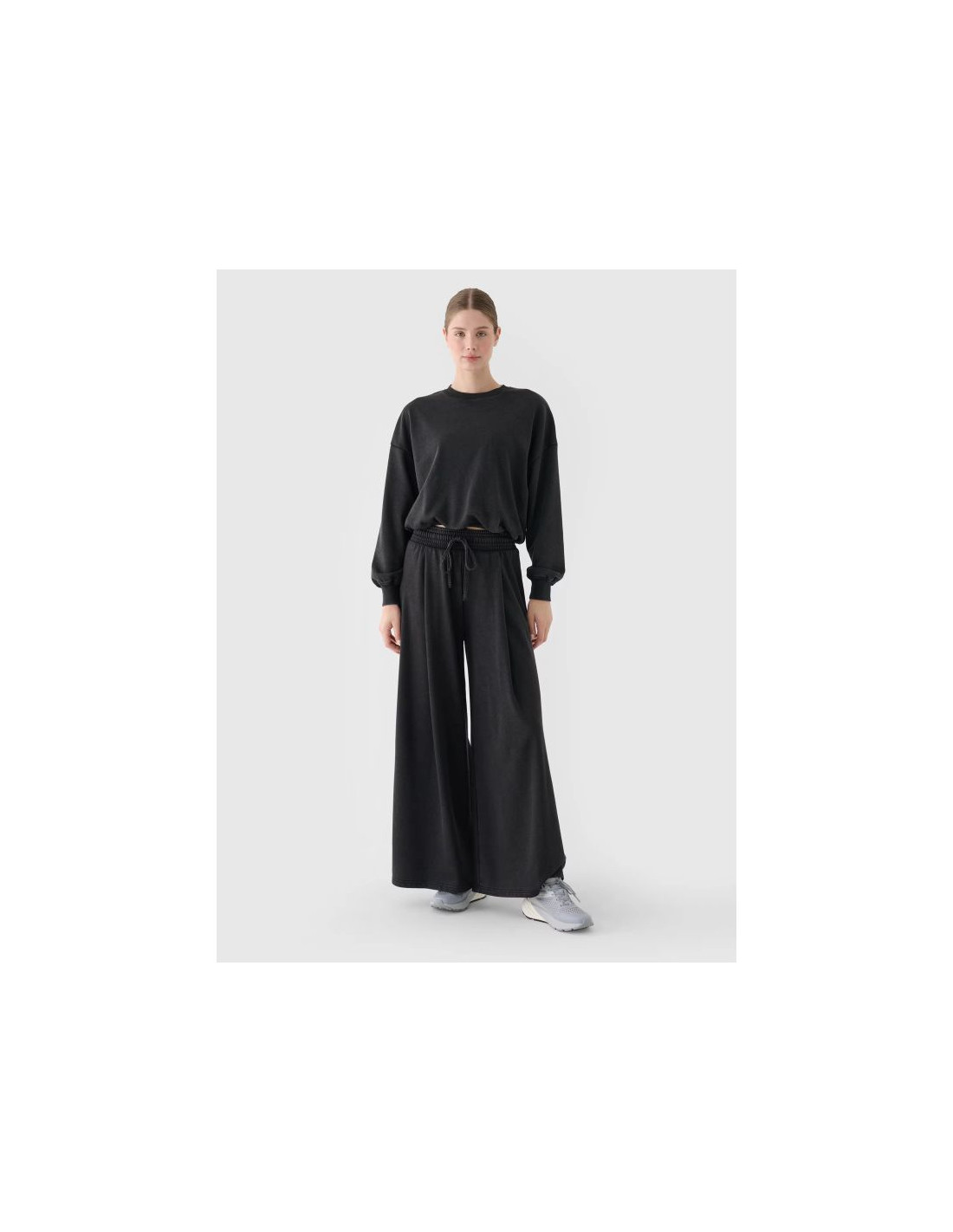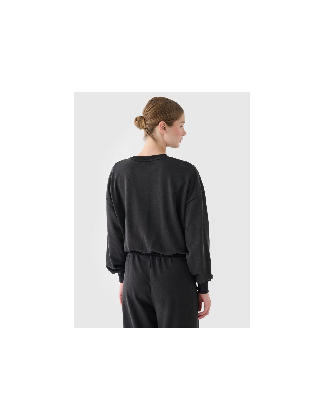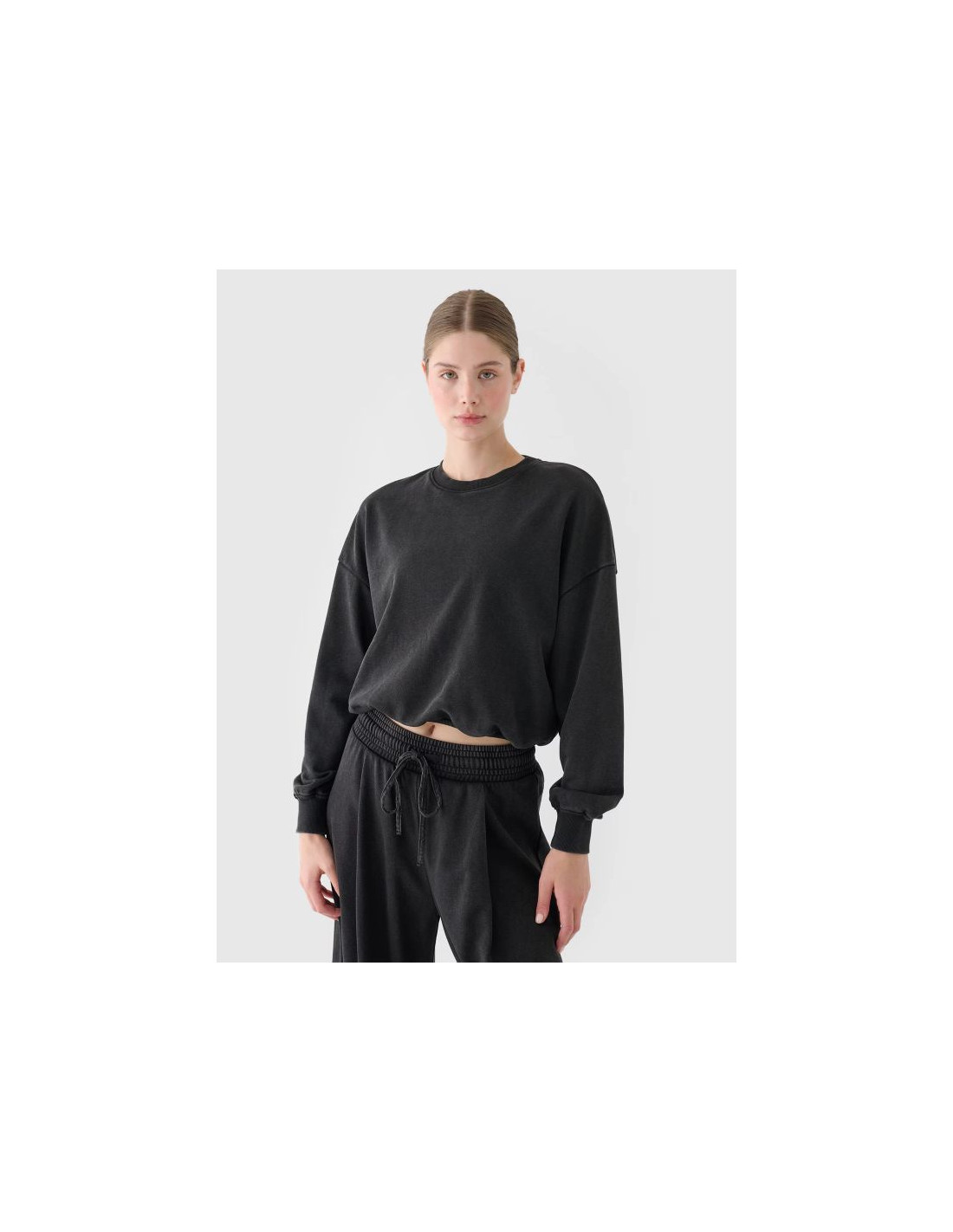 Bluza dresowa nierozpinana dla kobiety jest wykonana w 75% z bawełny, dzięki czemu jest miękka, trwała i przyjemna w dotyku. Dzięki dodatkowi poliestru (25%) materiał utrzymuje fason i jest odporny na zużycie nawet przez wiele sezonów. Okrągły dekolt jest zakończony lekkim ribowaniem. Elastyczne mankiety ze ściągaczem. Klasyczny fason bez kieszeni. Wkładana przez głowę. Obniżone opadające rękawy dodają swobody. Zmarszczony dół z elastyczną gumką.