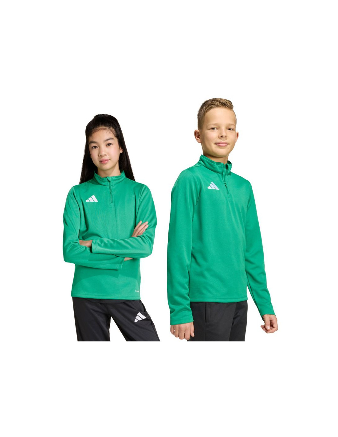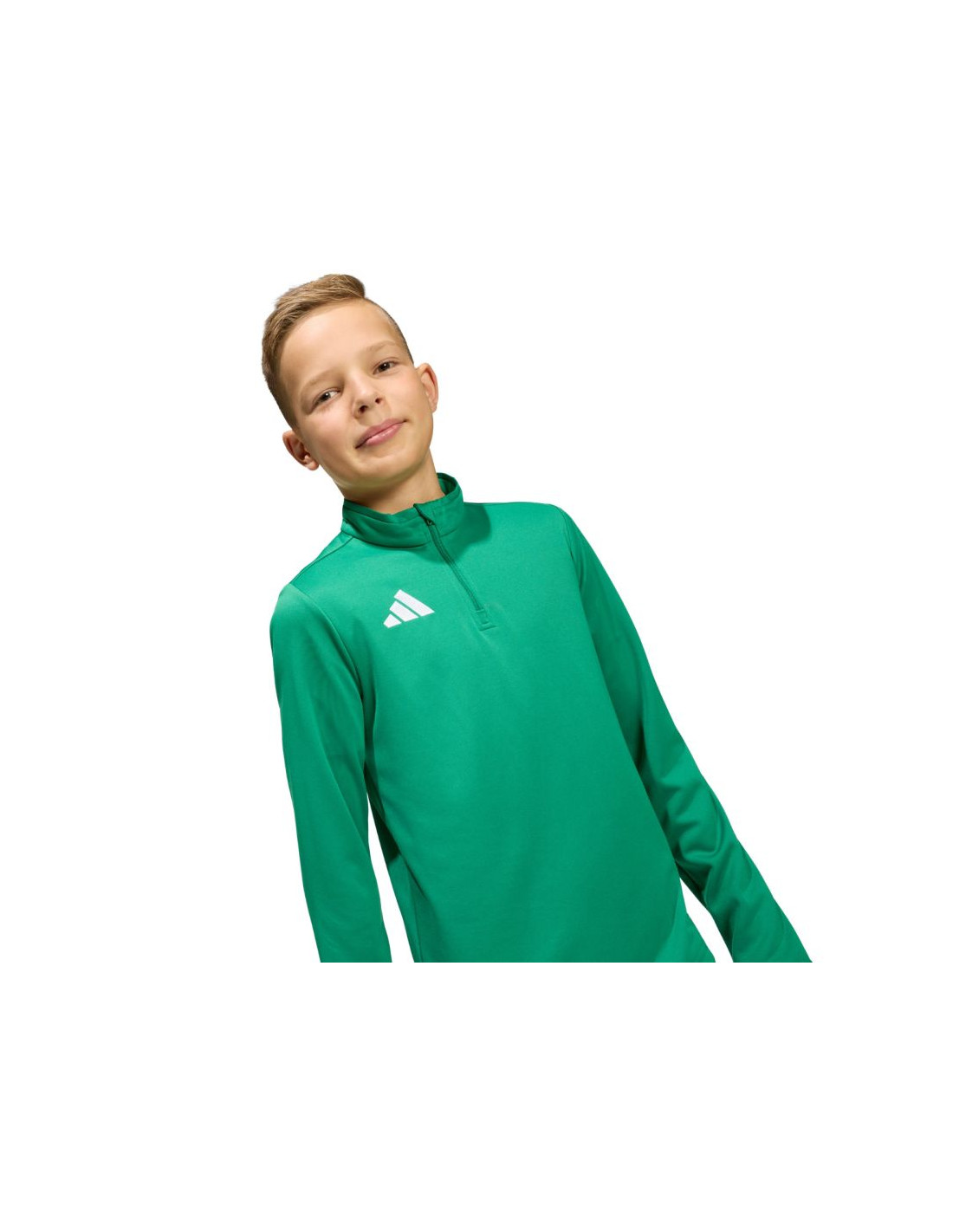 Bluza dla dzieci adidas Entrada 26 Training Top zielona JZ6632 Bluza dla dzieci adidas sprawdzi się podczas treningów. Dopasowany krój. Elastyczne mankiety. Niewielkie, wyszywane logo adidas. Zamek o długości 1/4. Technologia Climacool zapewnia chłód i suchość, skutecznie odprowadzając pot. Fason pochodzi z kolekcji Entrada. Materiał: 100% poliester pochodzący z recyklingu