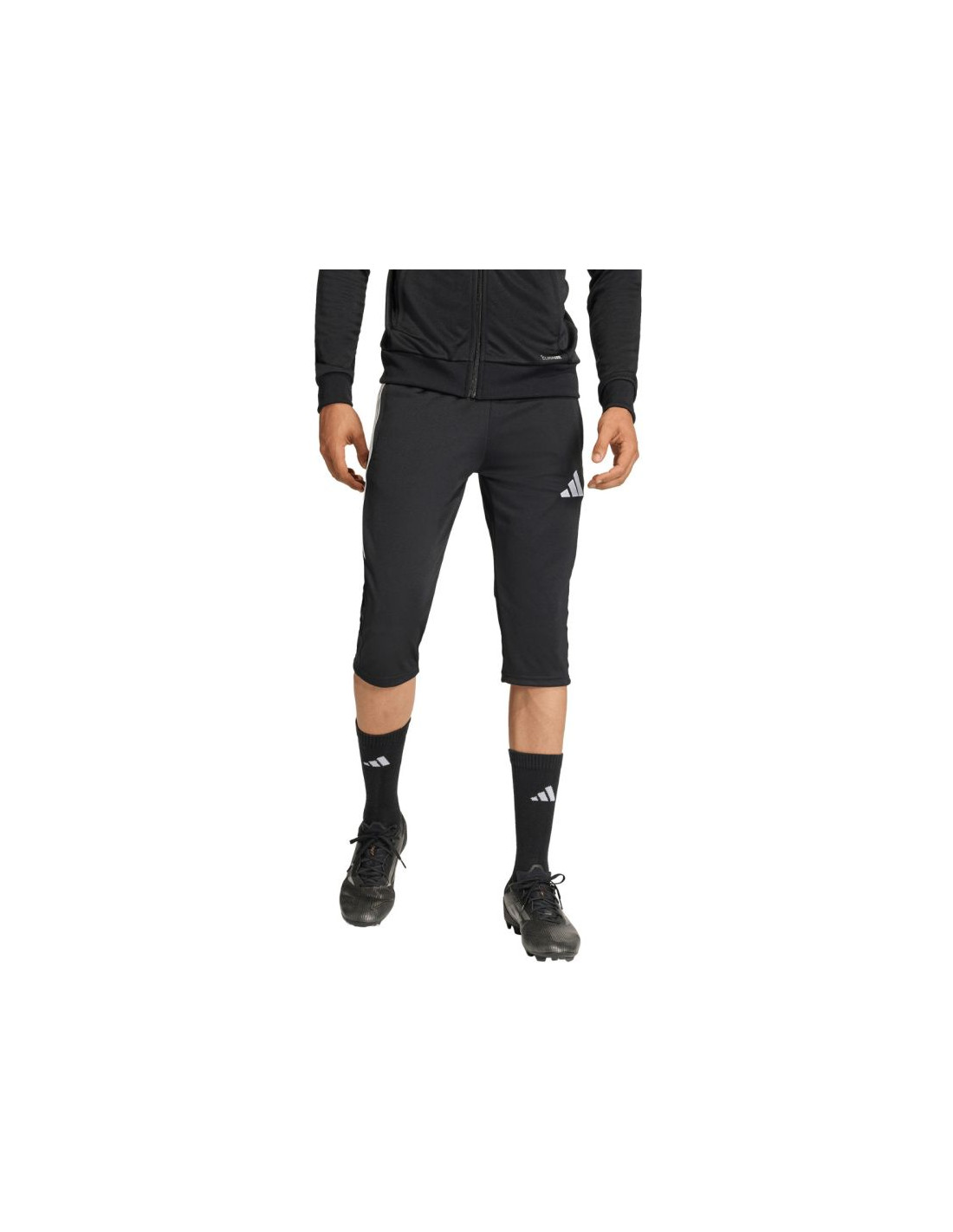 Spodnie męskie adidas Tiro 26 League Training 3/4 czarne KA6342 Spodnie męskie adidas sprawdzą się podczas treningów. Poliestrowy materiał zyskał technologię Climacool, która skutecznie odprowadza i rozprasza wilgoć. Dopasowany krój 3/4. Elastyczny pas. Boczne zamykane na zamek kieszenie. Materiał powstał z pozyskanego w procesie recyklingu. Materiał: 100% poliester pochodzący z recyklingu