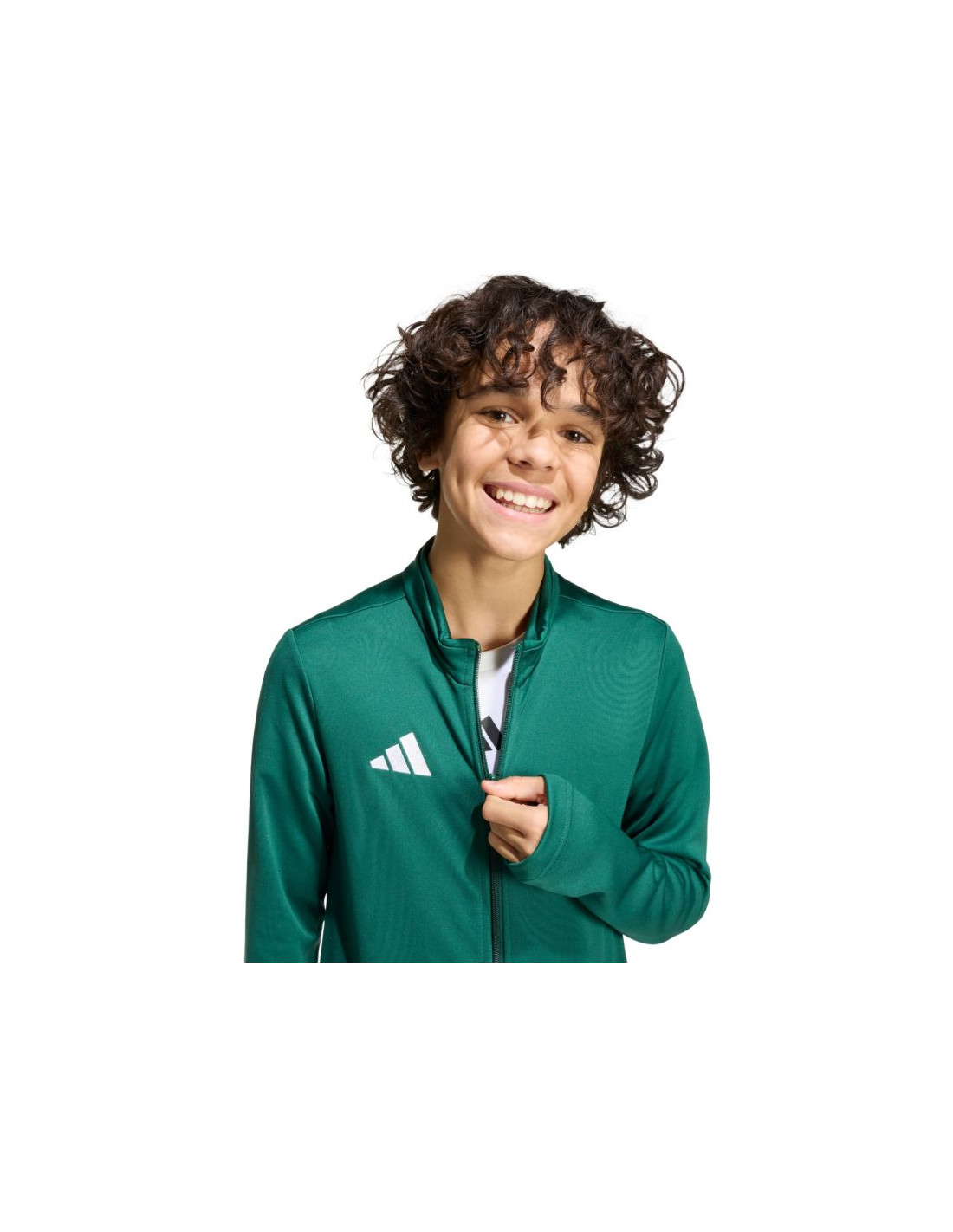 Bluza dla dzieci adidas Entrada 26 Track zielona KE9837 Dziecięca bluza adidas powinna znaleźć się w garderobie każdego, najmłodszego piłkarza, który chce w pełni skupić się na doskonaleniu umiejętności w podczas plenerowego treningu. Konstrukcja wykonana z poliestrowych włókien zyskała wykończenie w postaci technologii Climacool dbającej o uczucie chłodu i suchości oraz skupienie na grze. Zamek na całej długości ułatwia ubieranie. Otwarte kieszenie boczne na drobiazgi. Stójka. Niewielkie, wyszywane logo. Materiał: 100% poliester pochodzący z recyklingu