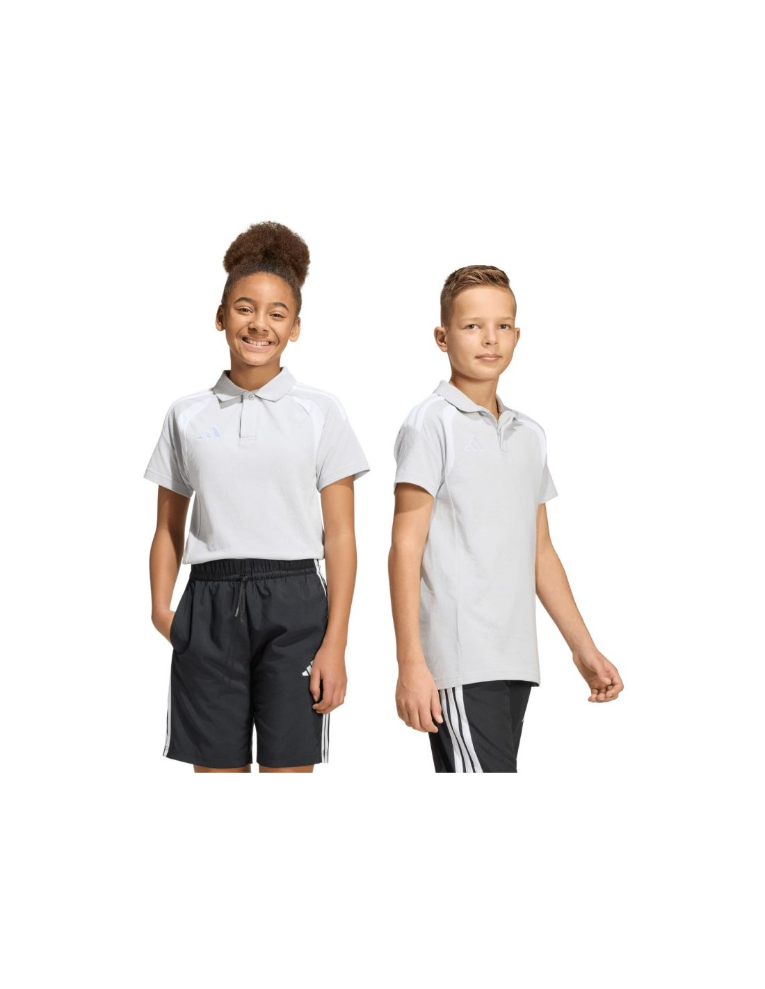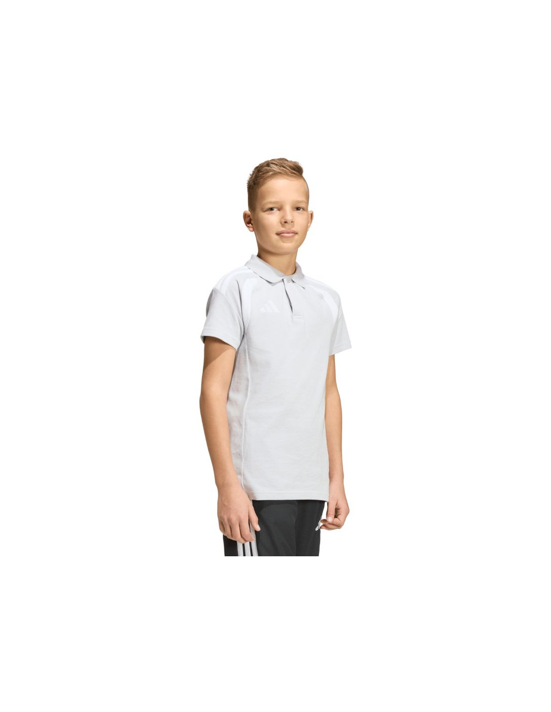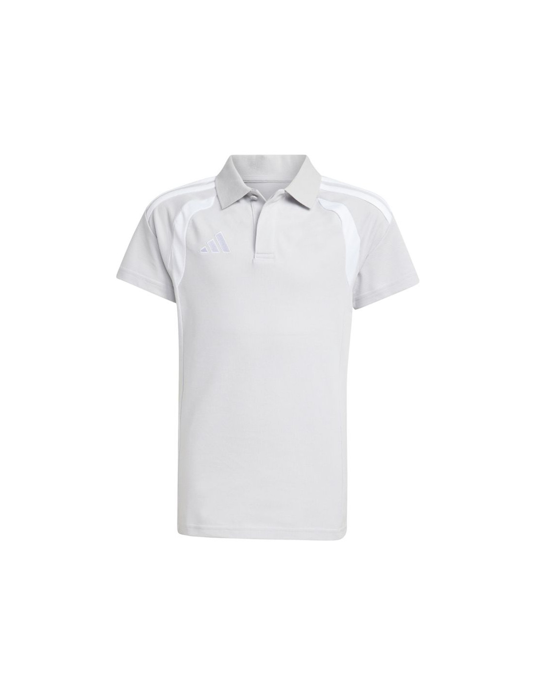 Koszulka dla dzieci adidas Tiro 26 League Polo szara KF3405 Koszulka dla dzieci adidas sprawdzi się podczas kibicowania poza linią boczną boiska i podróżowania z drużyną na mecze. Pochodzi z kolekcji Tiro. Kołnierzyk i listwa na guziki. Regularny krój. Wyszywane logo. Dzianina typu pique. Materiał: 70% bawełna, 30% poliester z recyklingu