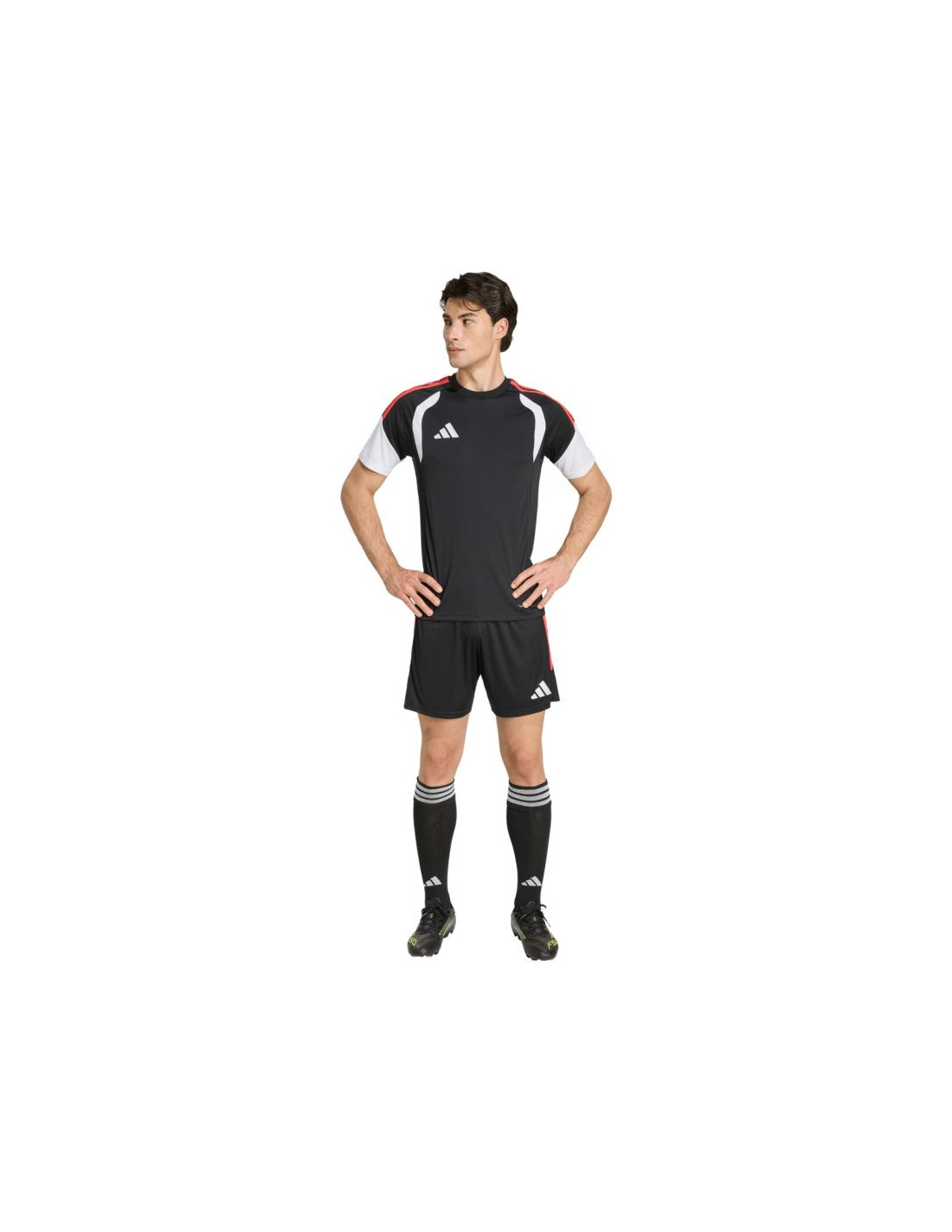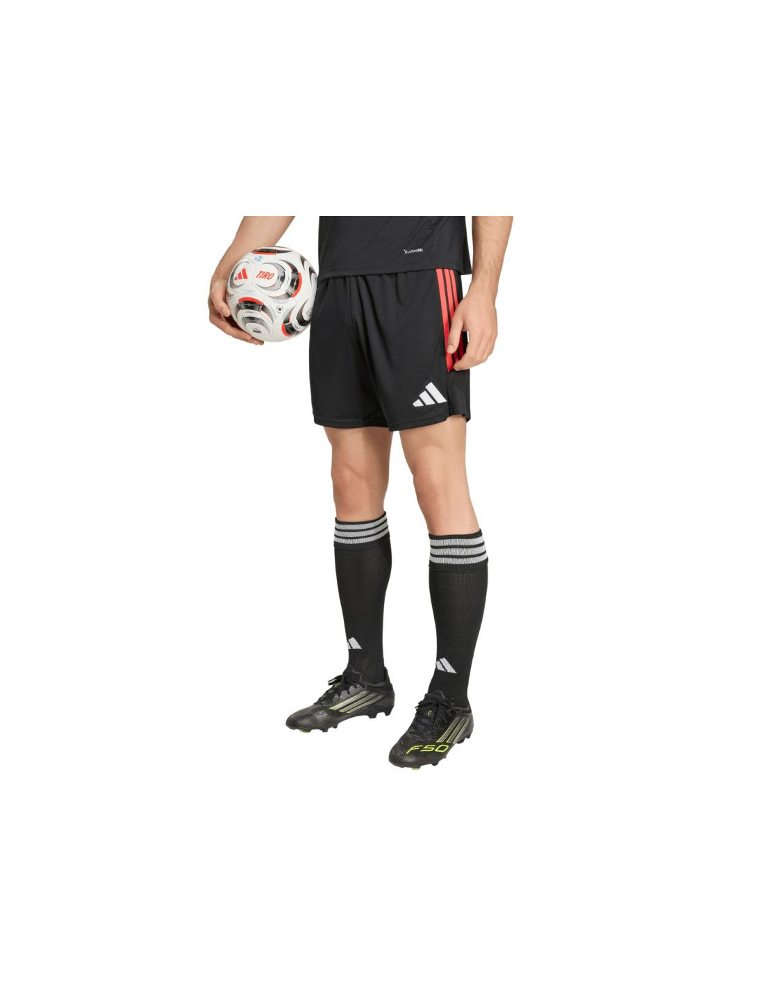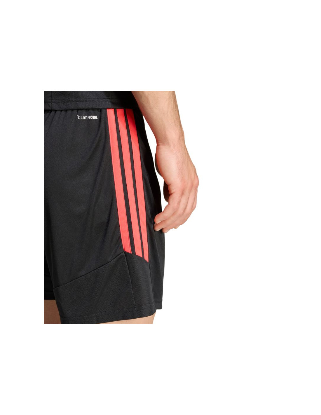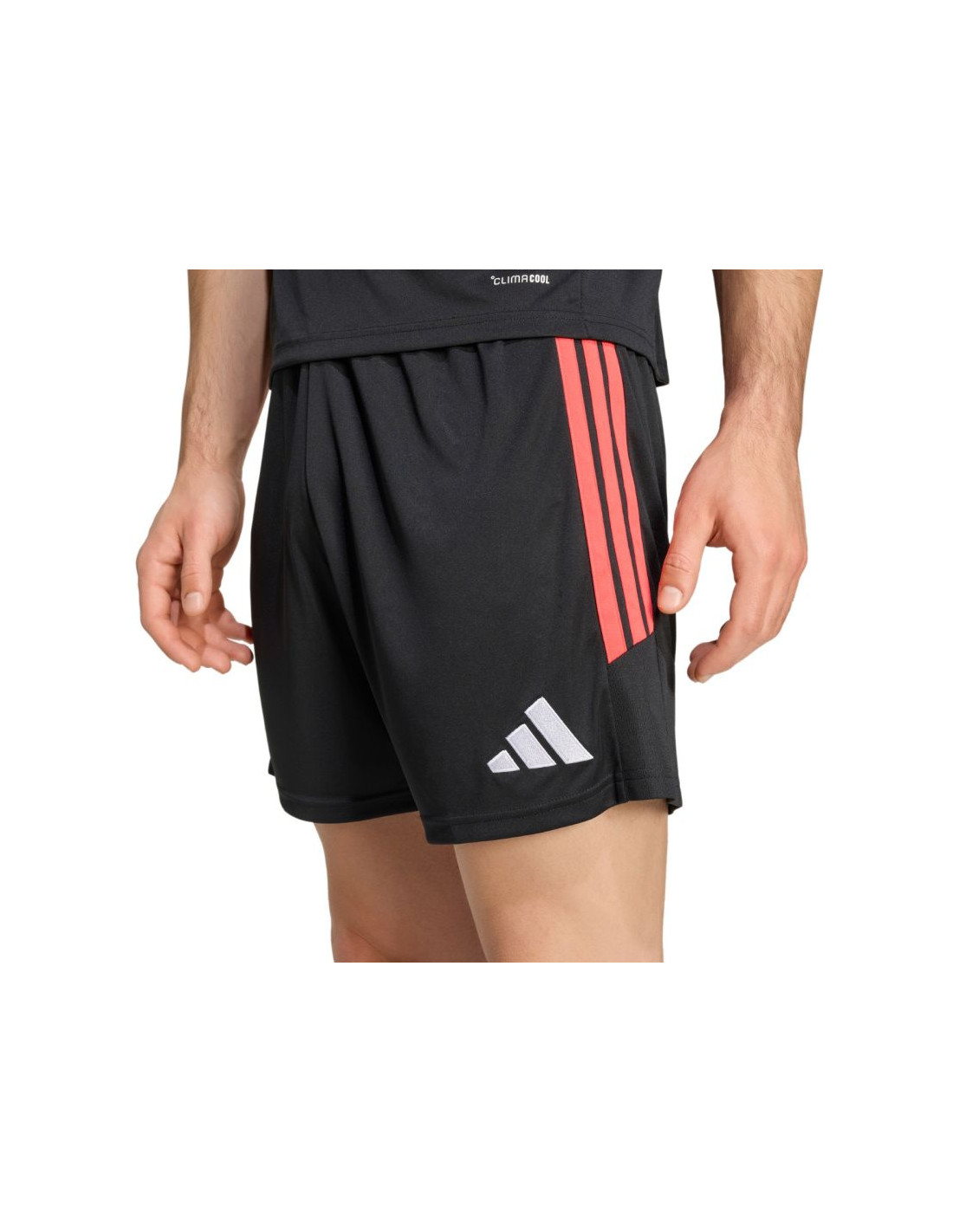 Spodenki męskie adidas Tiro 26 League czarno-czerwone KA8776 Męskie spodenki adidas sprawdzą się podczas rozgrywek. Model pochodzi z linii Tiro. Standardowy krój. Elastyczna talia regulowana wewnętrznym sznurkiem. Technologia Climacool. Paski po bokach. Niewielkie, wyszywane logo. Materiał: 100% poliester pochodzący z recyklingu