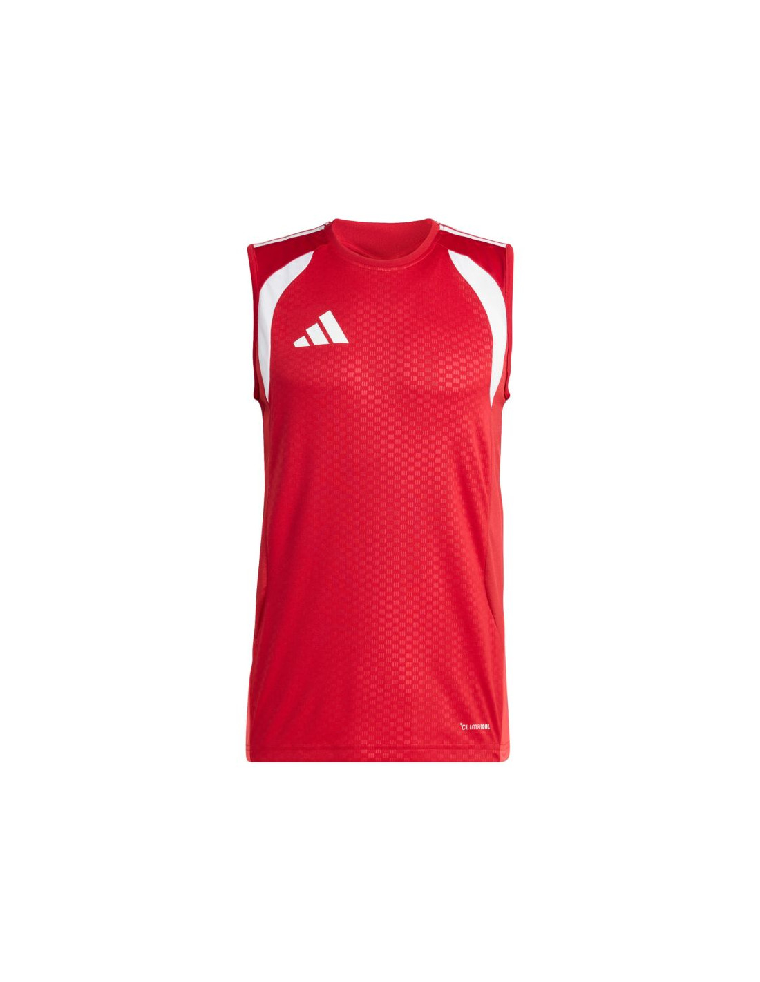 Koszulka męska adidas Tiro 26 Competition Sleeveless Jersey czerwona KA7610 Koszulka dla mężczyzn adidas sprawdzi się podczas decydujących rozgrywek. Dopasowany krój bez rękawów. Panele z siateczki na klatce piersiowej. Technologia Climacool odprowadza i rozprasza pot, zapewniając chłód i suchość. Włókna powstały w procesie recyklingu. Materiał: 100% poliester z recyklingu