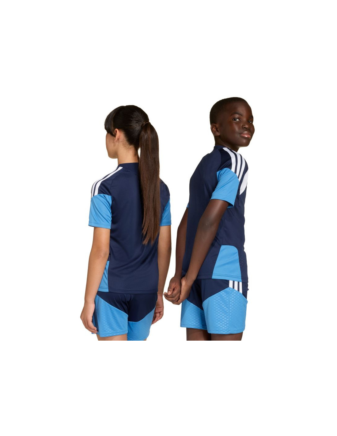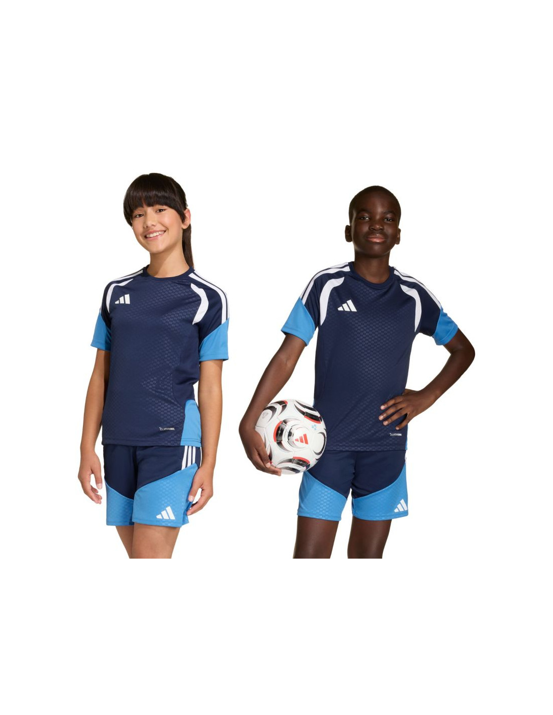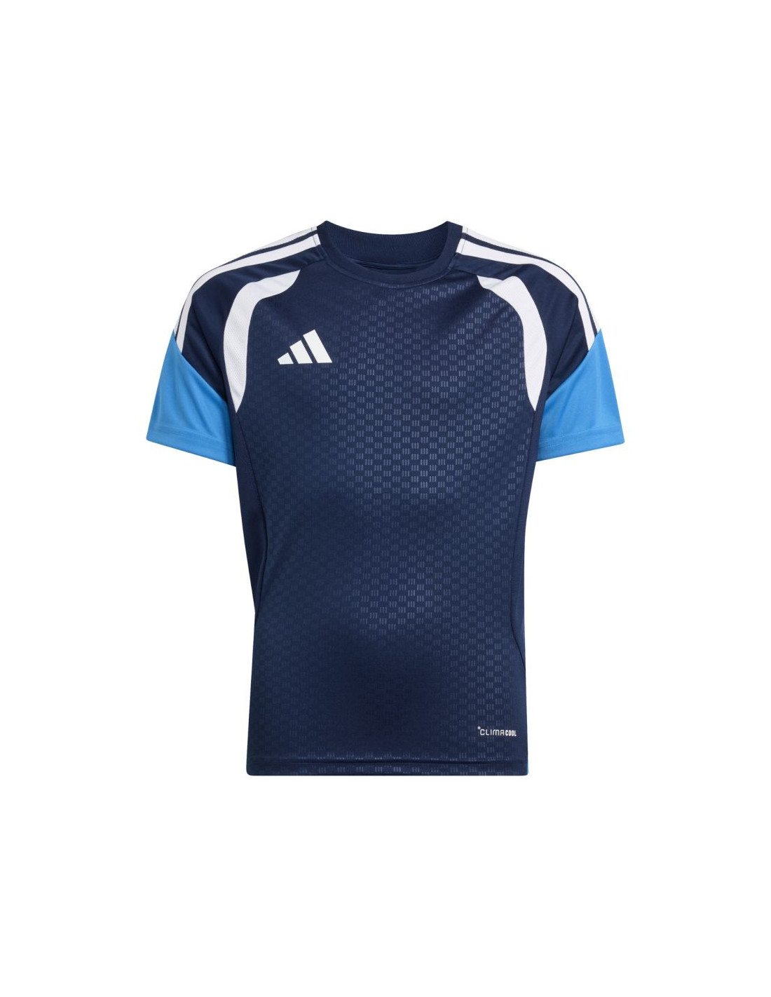 Koszulka dla dzieci adidas Tiro 26 Competition Training granatowo-błękitna JM1446 Koszulka dla dzieci adidas sprawdzi się podczas treningów i decydujących rozgrywek. Regularny krój. Wstawki z siateczki na klatce piersiowej. Technologia Climacool pochłania i odprowadza pot. Włókna powstały w procesie recyklingu. Subtelne logo. Paski na rękawach. Materiał: 100% poliester z recyklingu